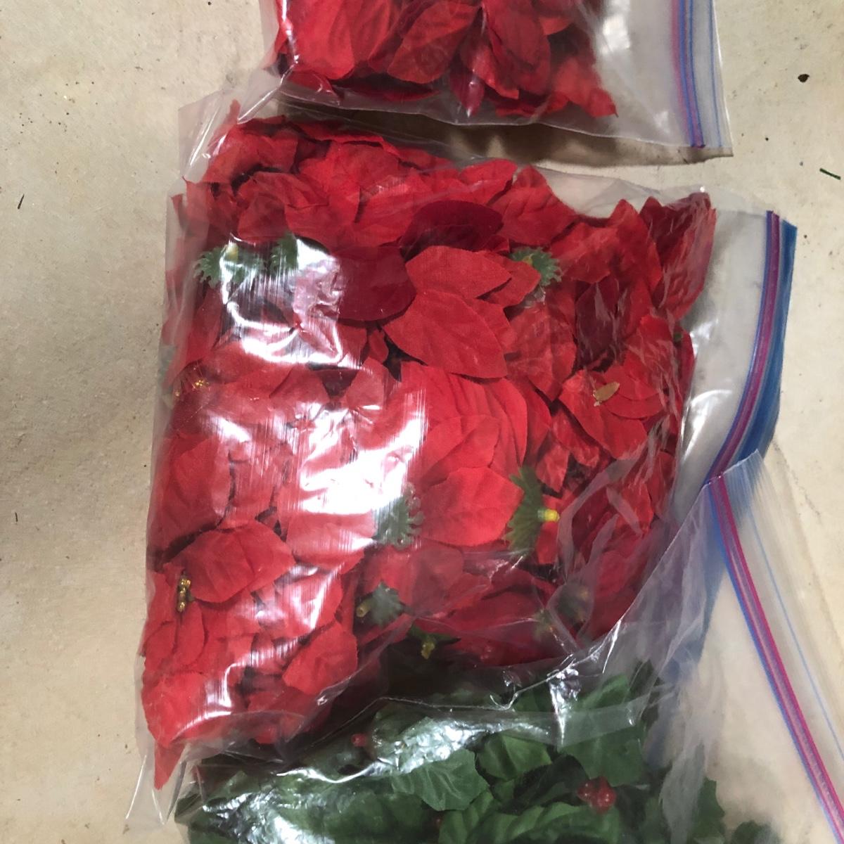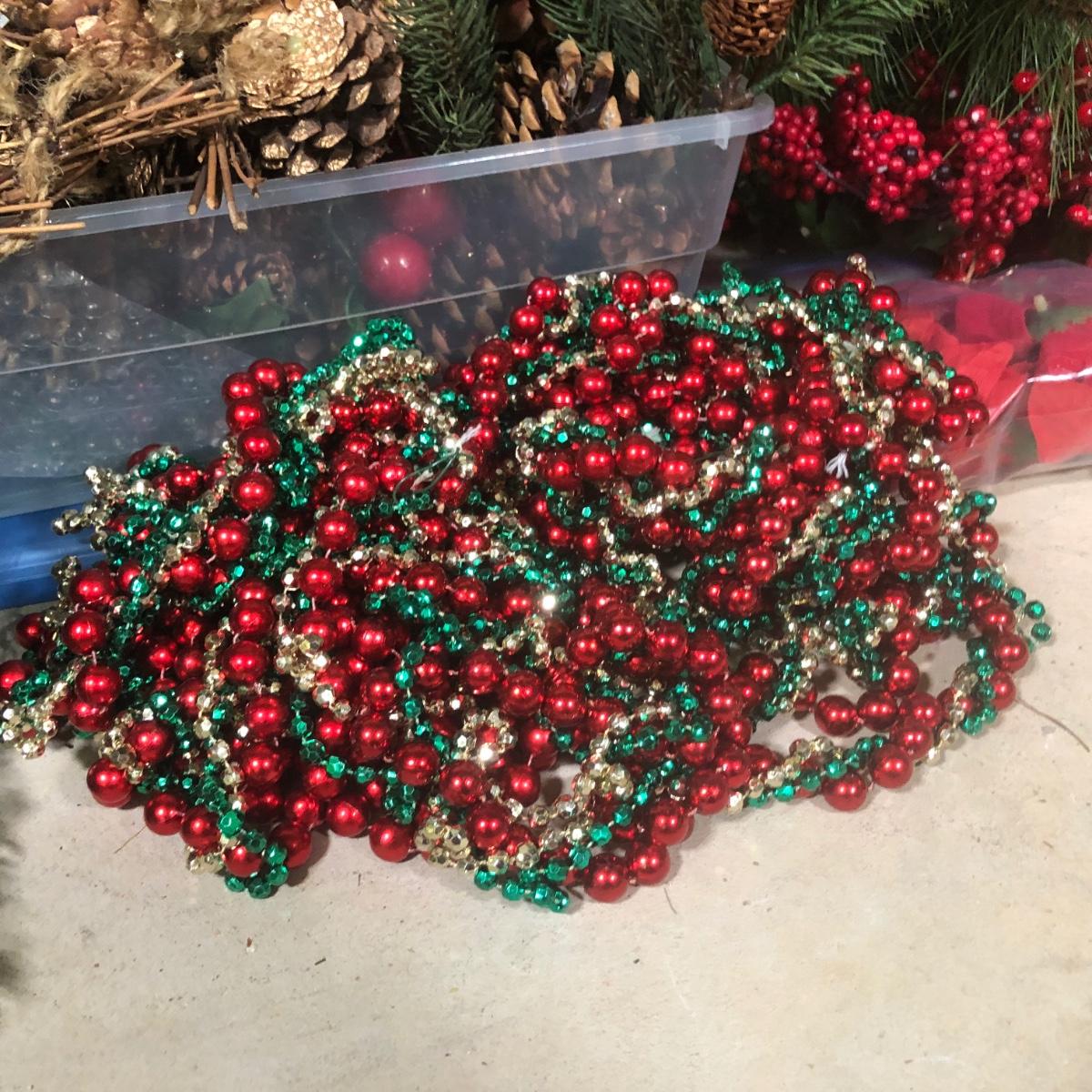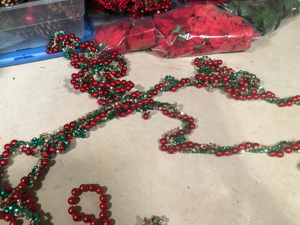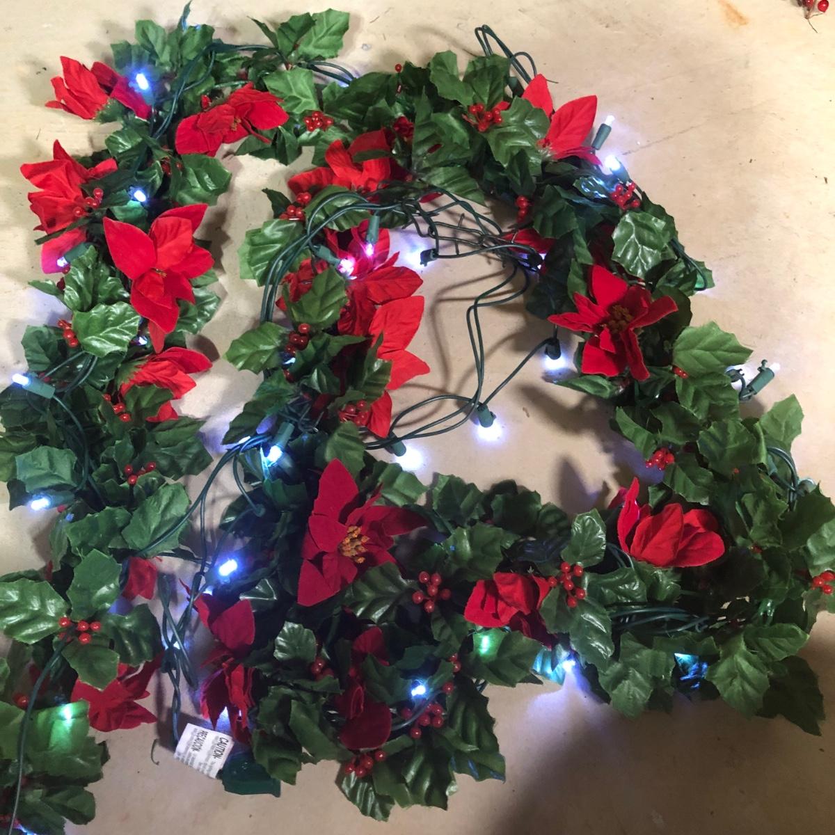 LOT 31X: Christmas Decor - White Birch Tree, Garland, Faux Flowers & Pinecones