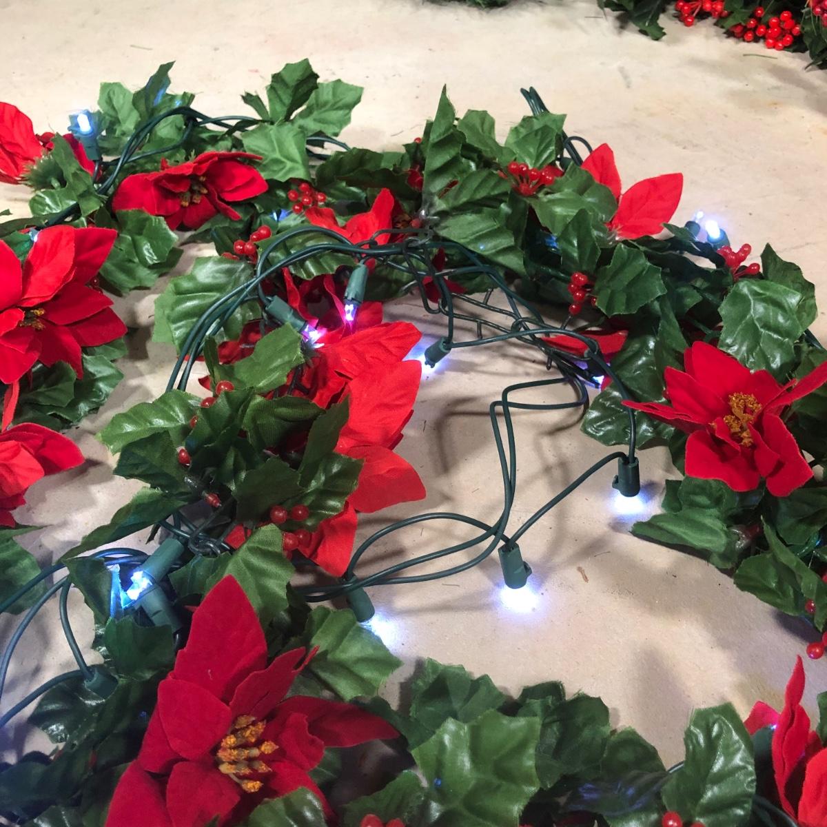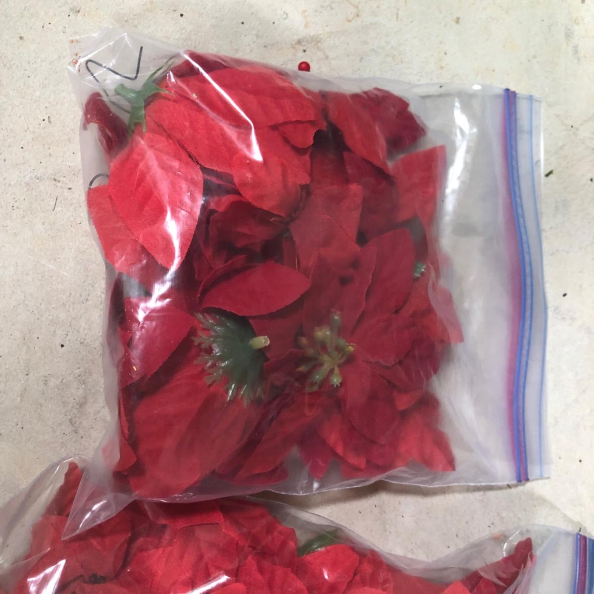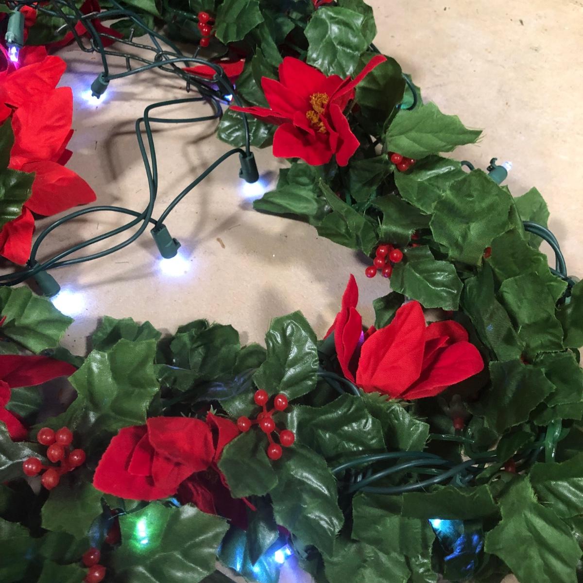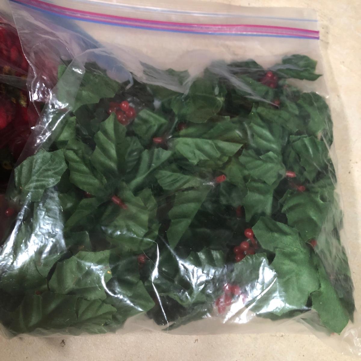 LOT 31X: Christmas Decor - White Birch Tree, Garland, Faux Flowers & Pinecones