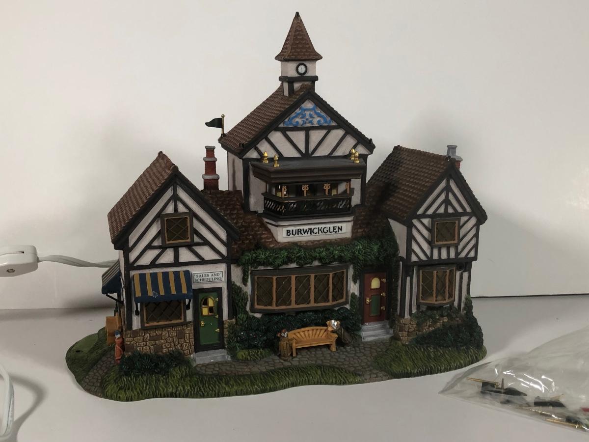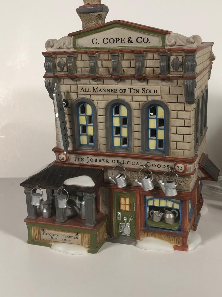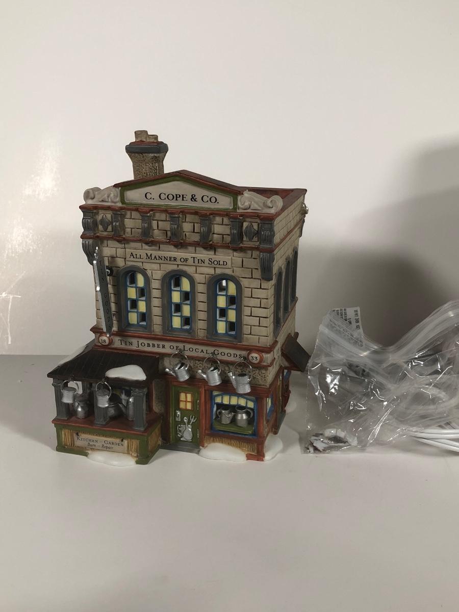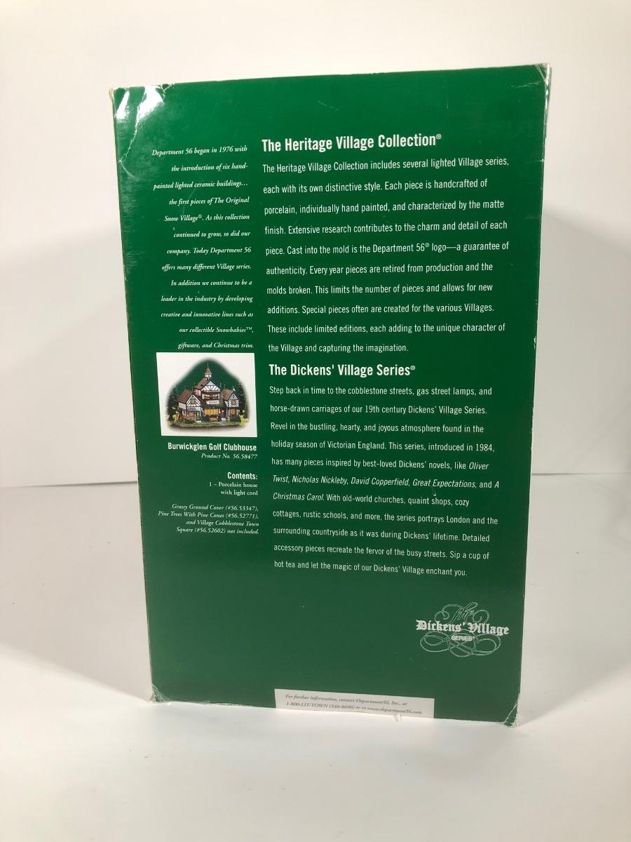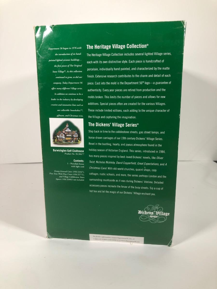 LOT 42X: Dept 56 w/ Boxes: Dicken's Village Burwickglen Golf Clubhouse, New England Village C Cope & Co Tin Jobber & Christmas in the City Police Car