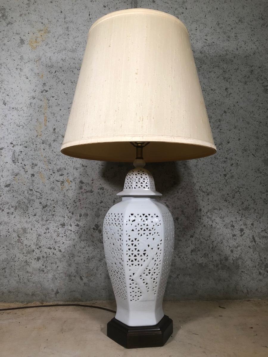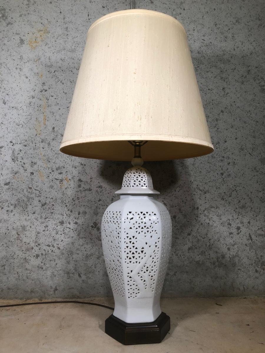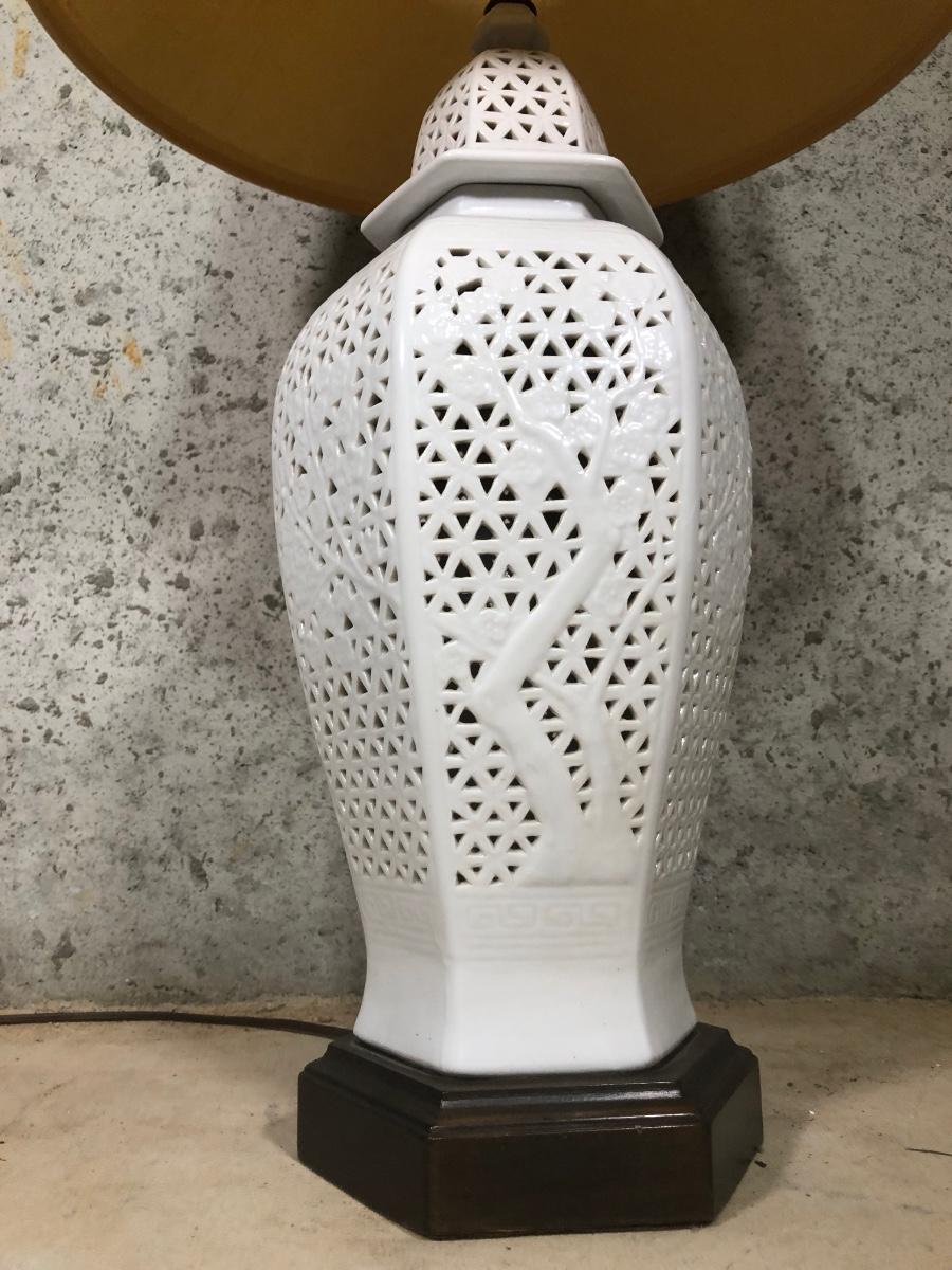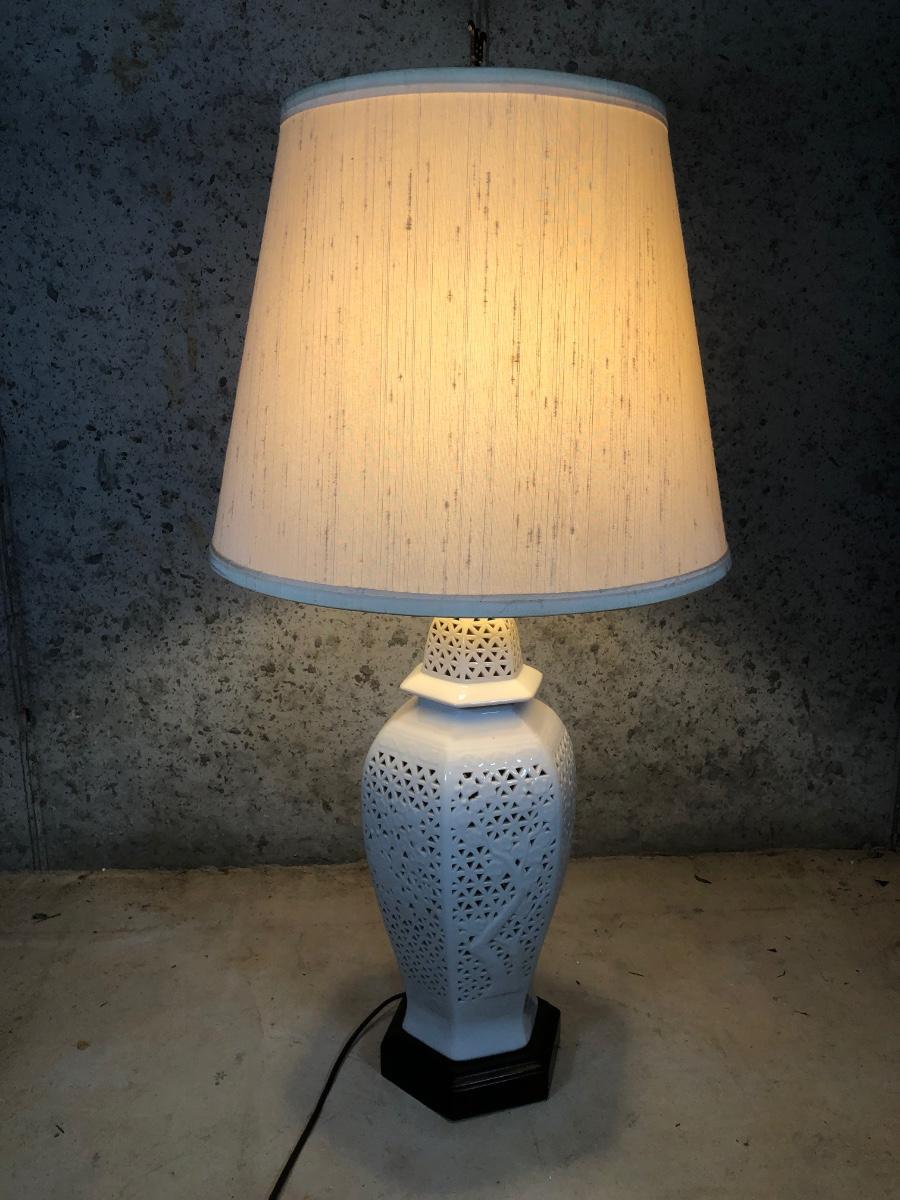 LOT 55X: Vintage / MCM Chinese Reticulated Porcelain Table Lamp (37")
