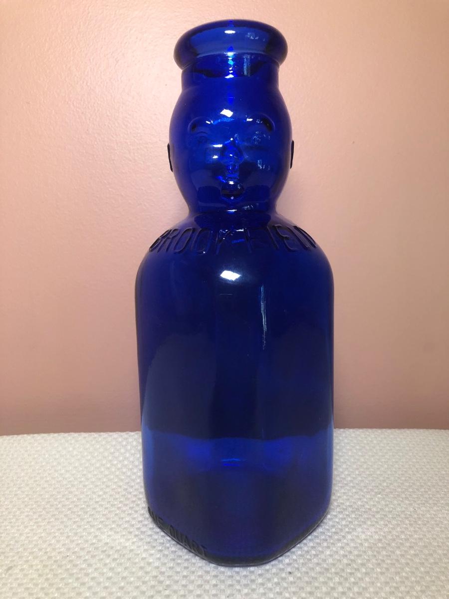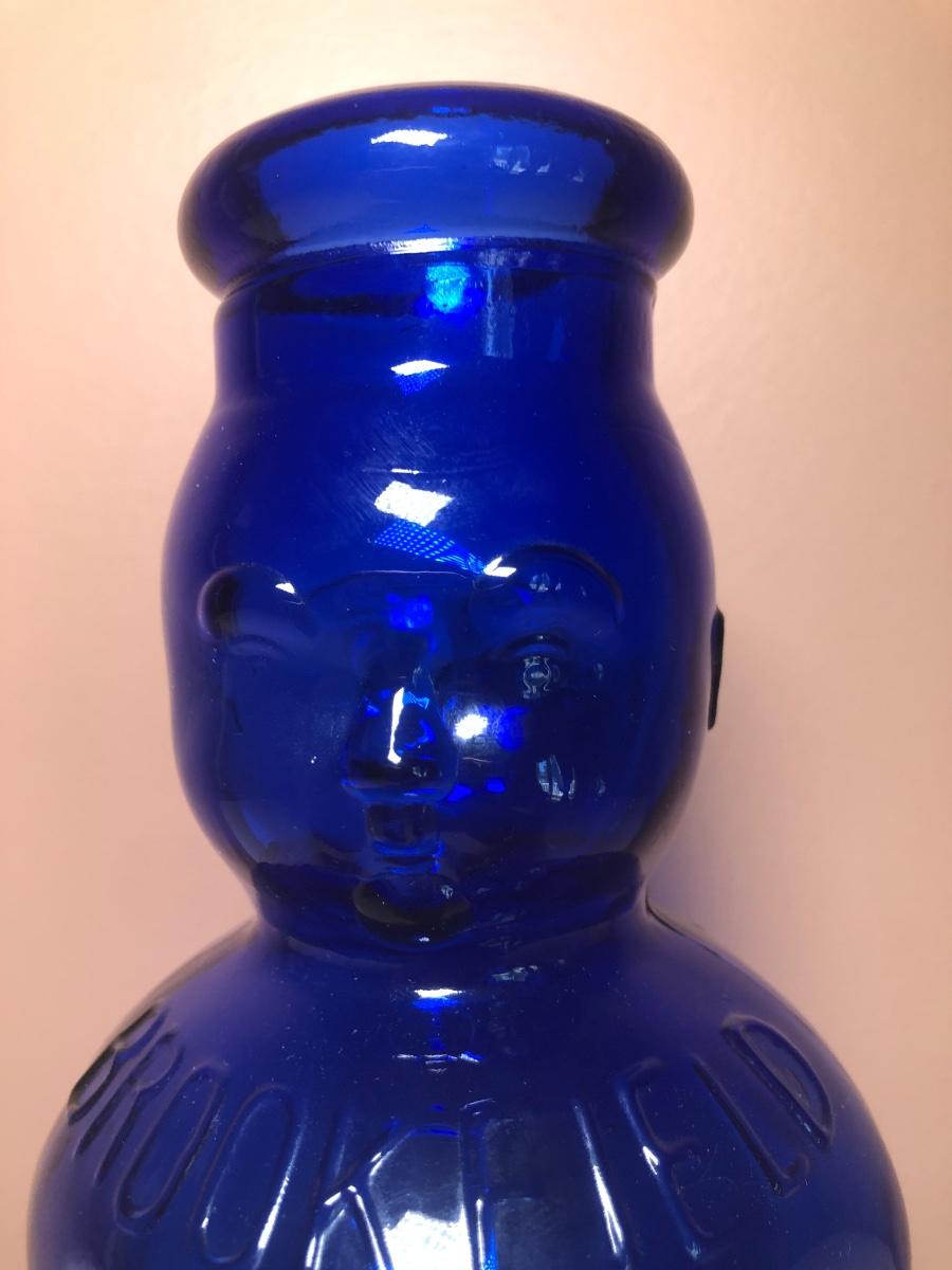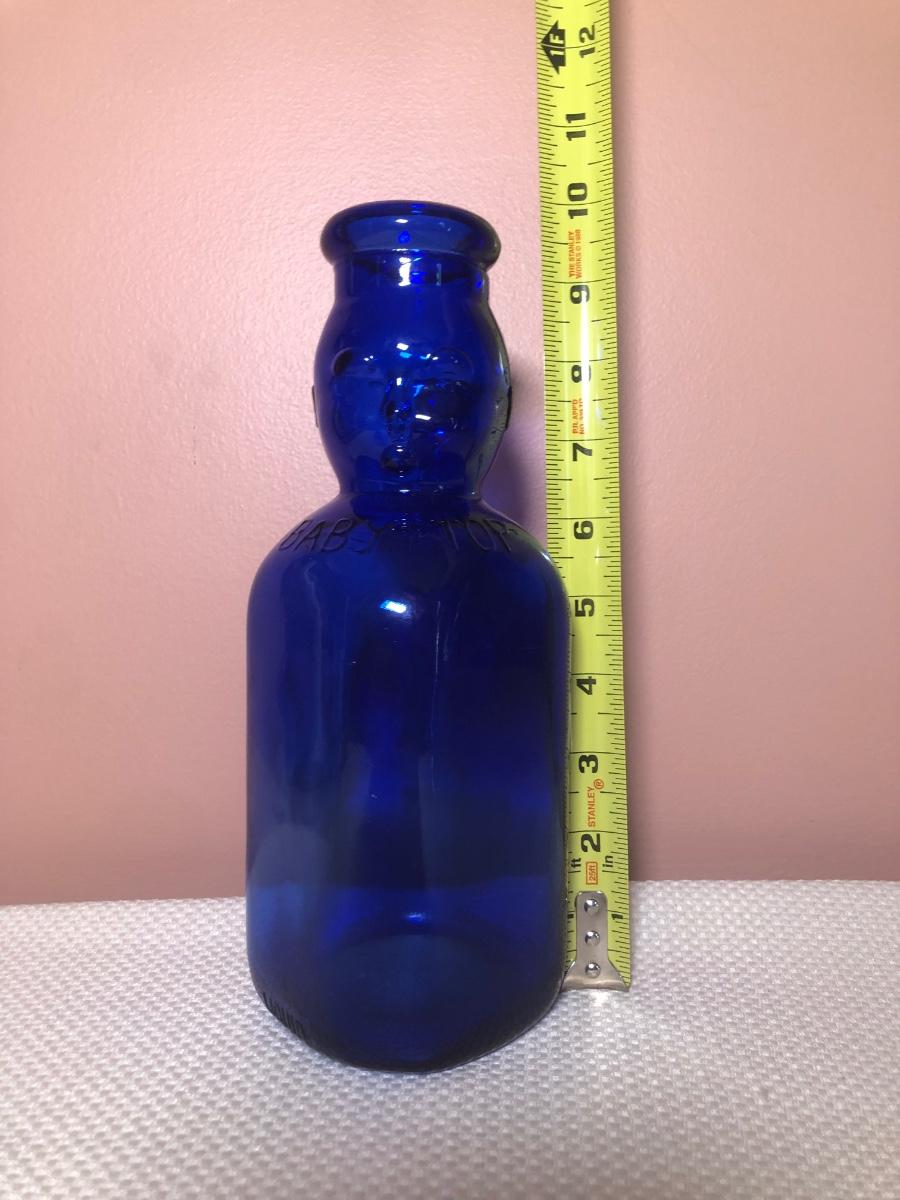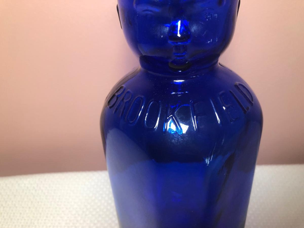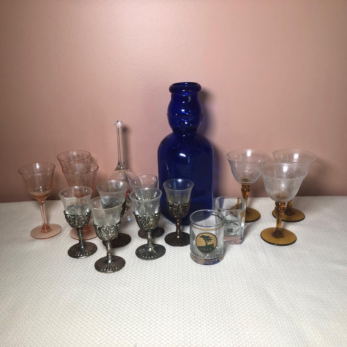 LOT 68D: Blue Brookfield Baby Top Glass Bottle, Souvenir Shot Glasses & Small Stemmed Glasses
