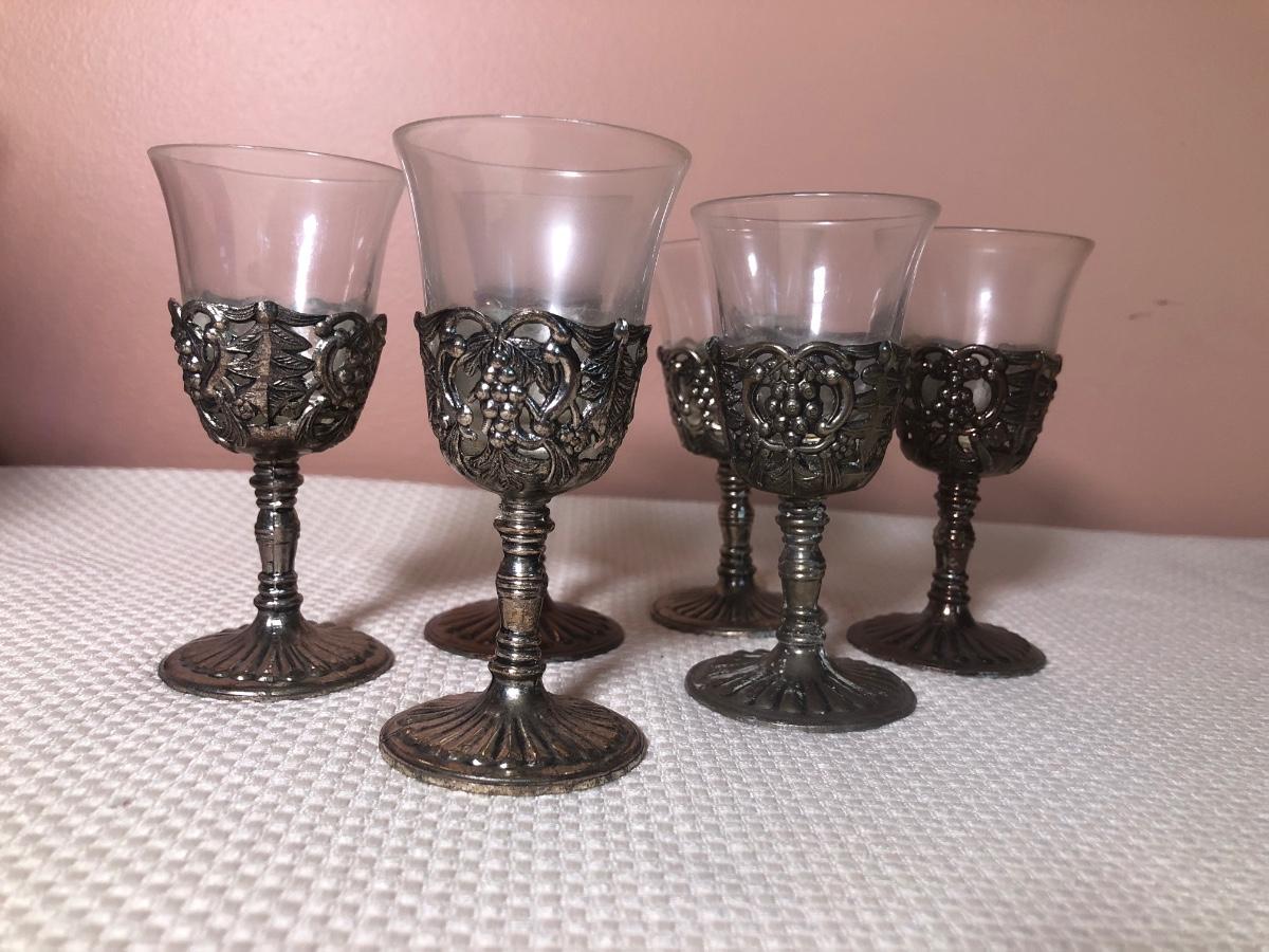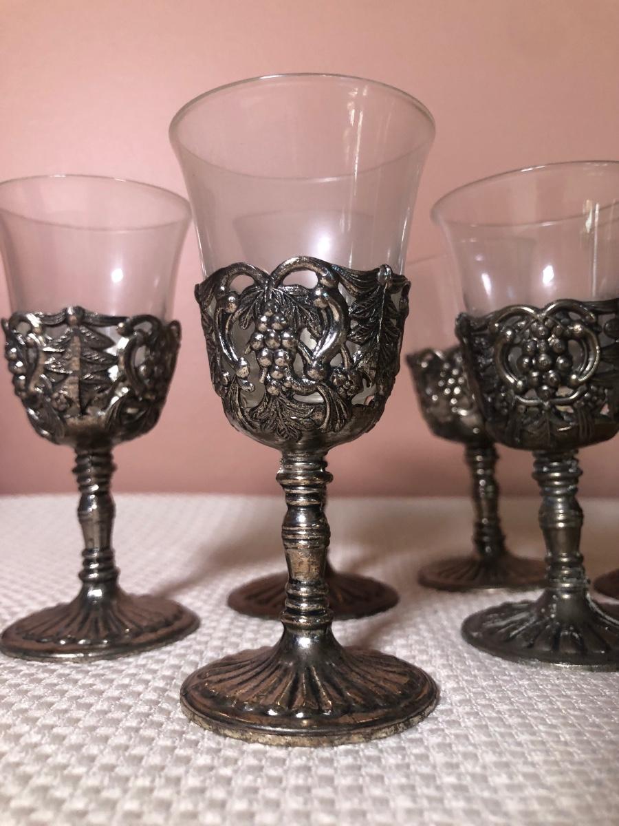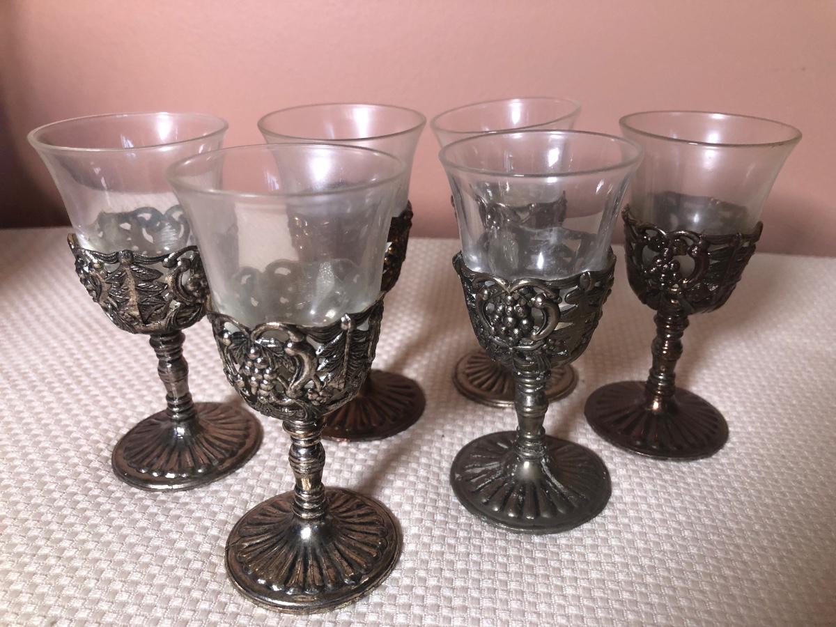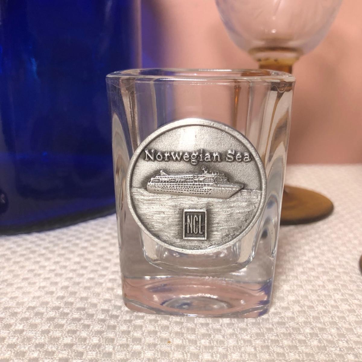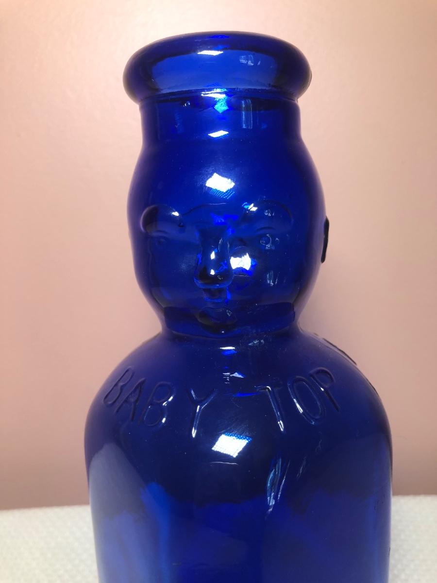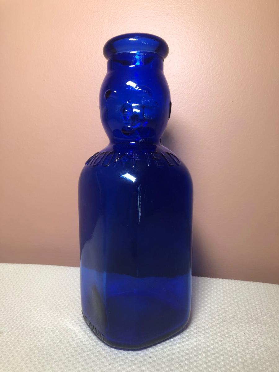 LOT 68D: Blue Brookfield Baby Top Glass Bottle, Souvenir Shot Glasses & Small Stemmed Glasses