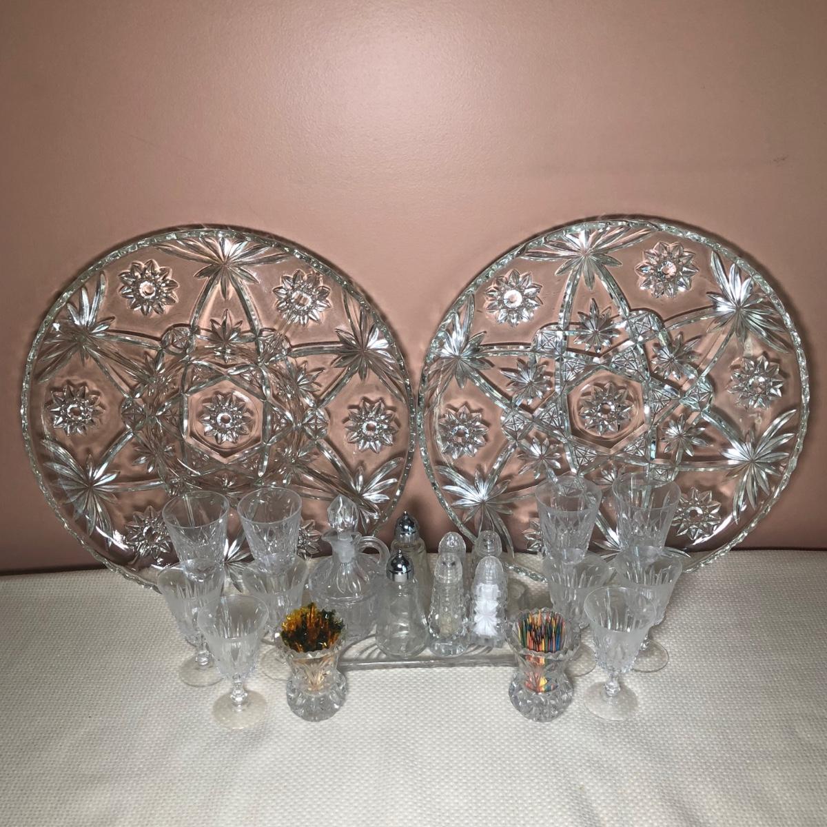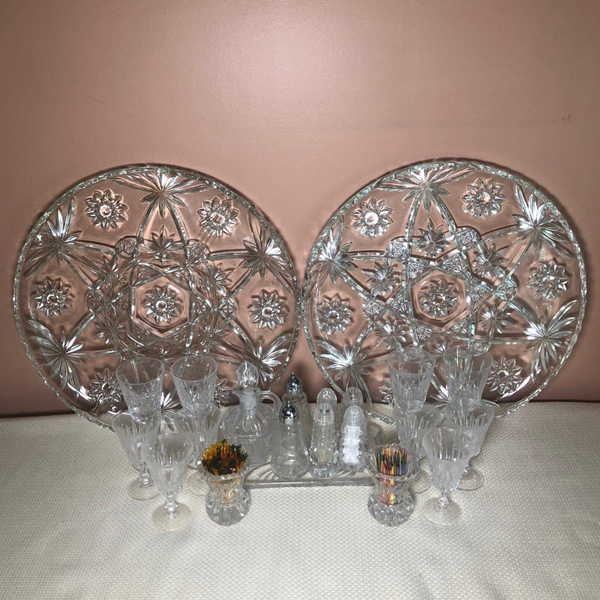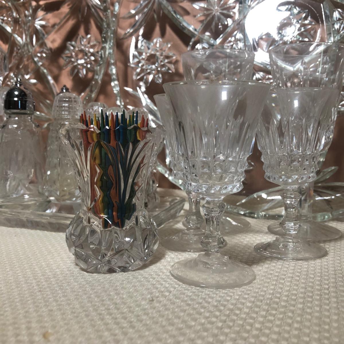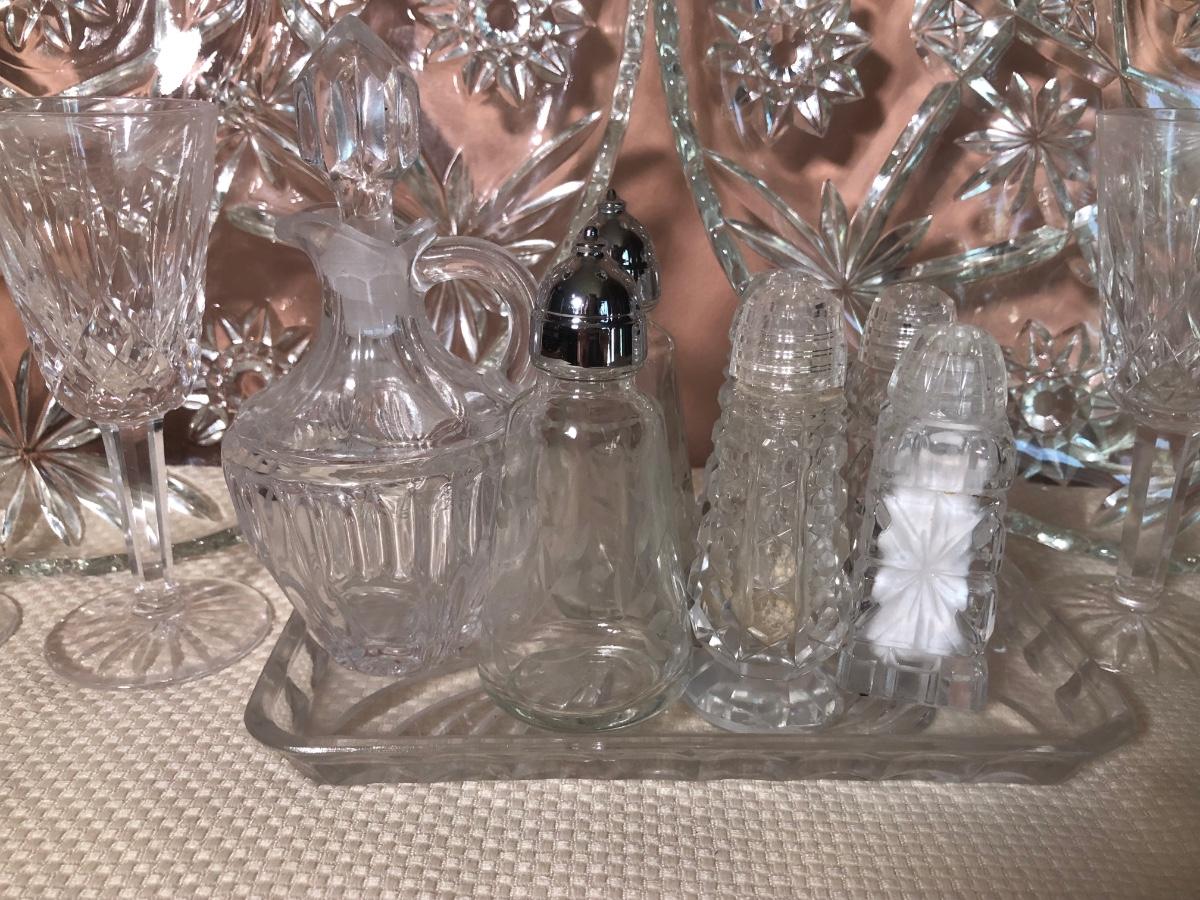 LOT 69D: Crystal Kitchen Collection - Serving Dishes, S&P, Cruet, Toothpick Holders & Small Glasses