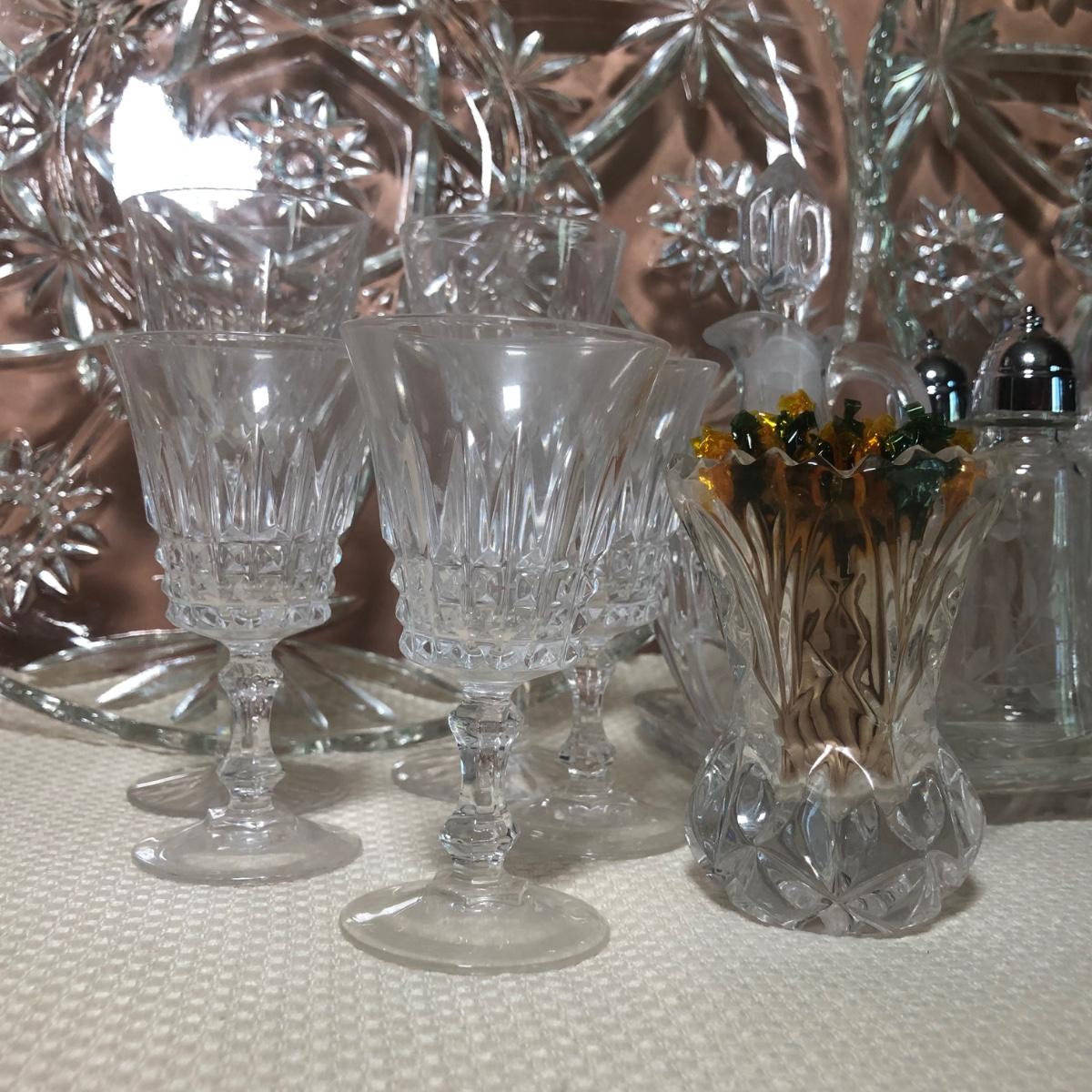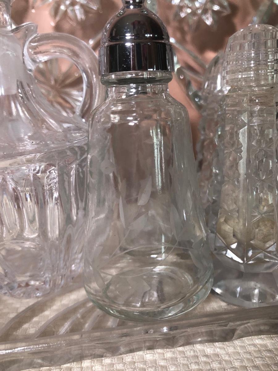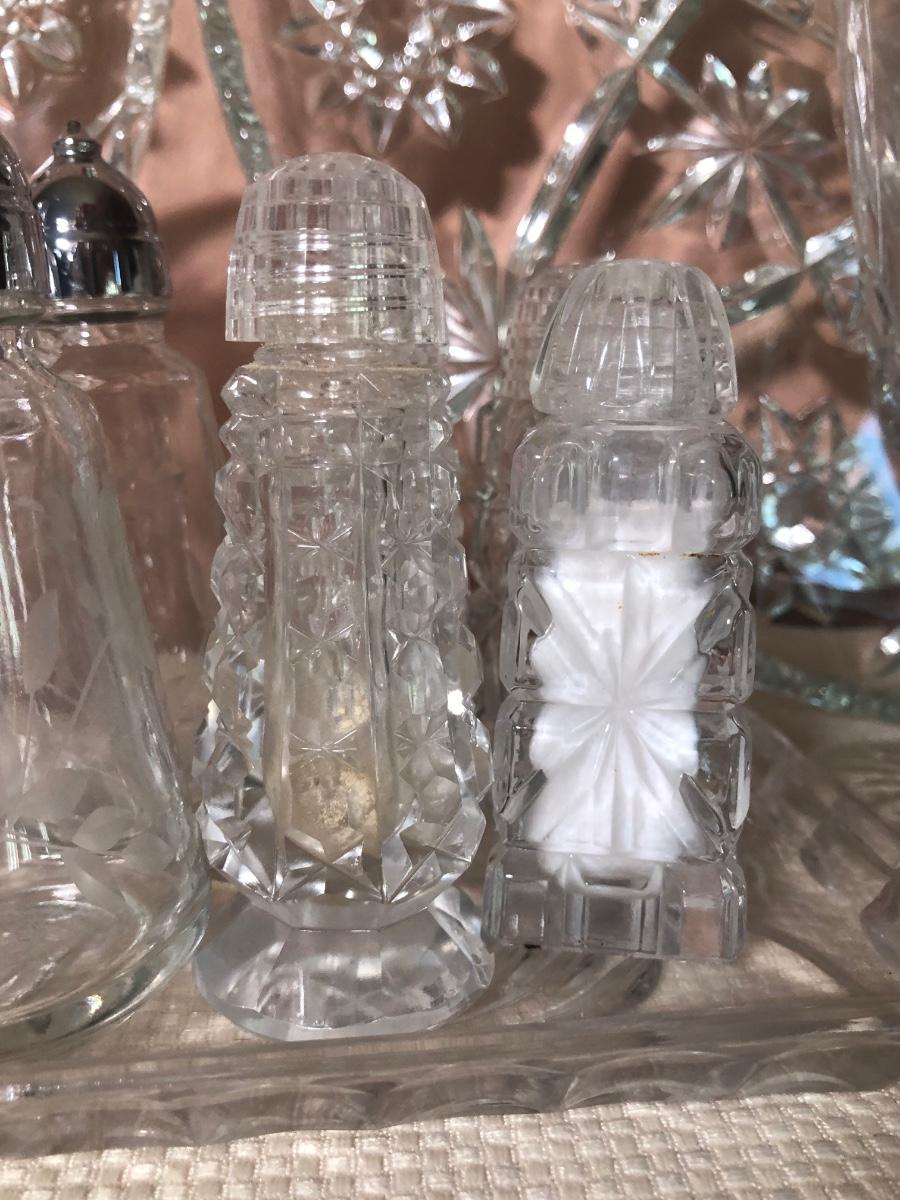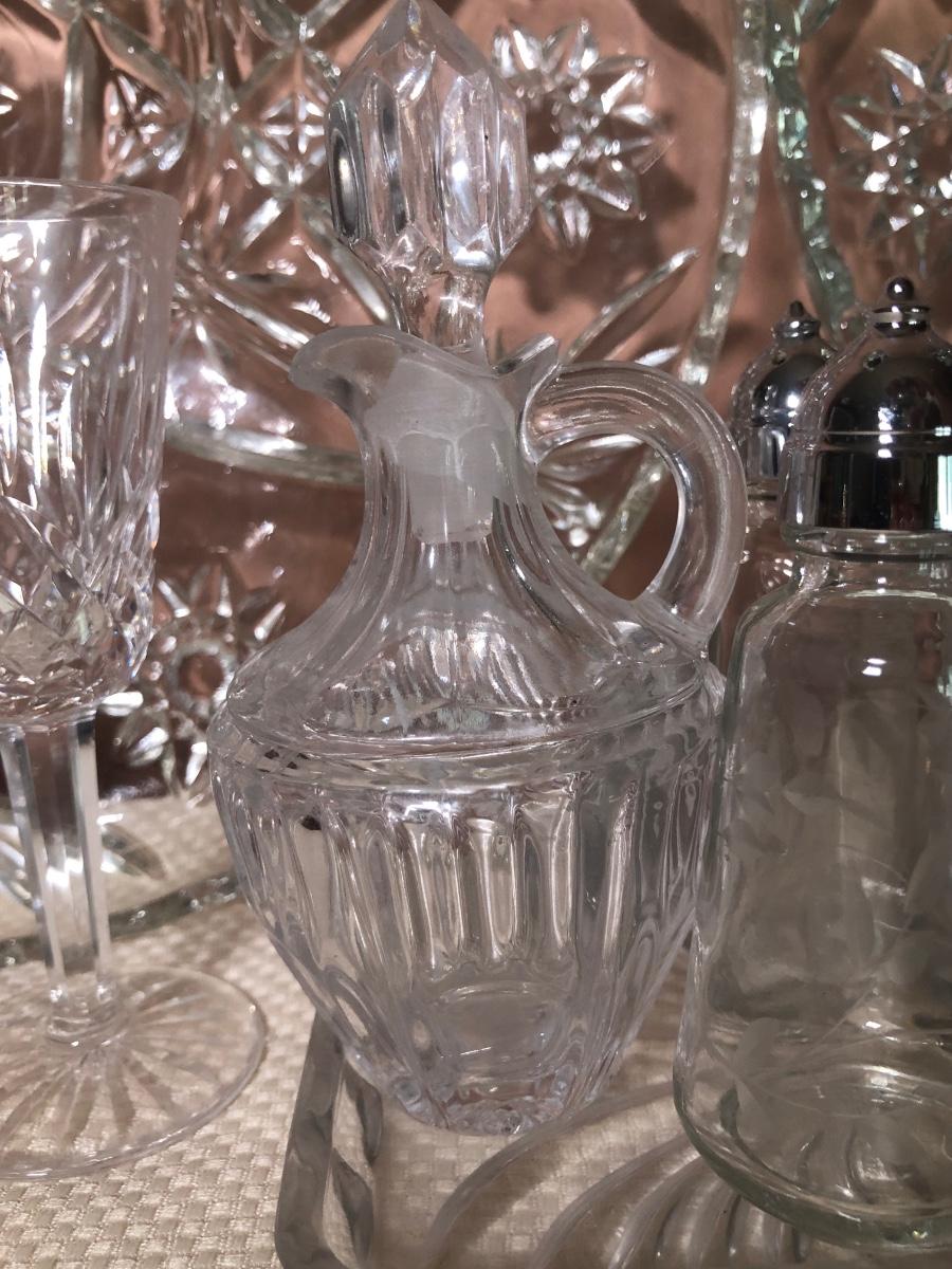 LOT 69D: Crystal Kitchen Collection - Serving Dishes, S&P, Cruet, Toothpick Holders & Small Glasses