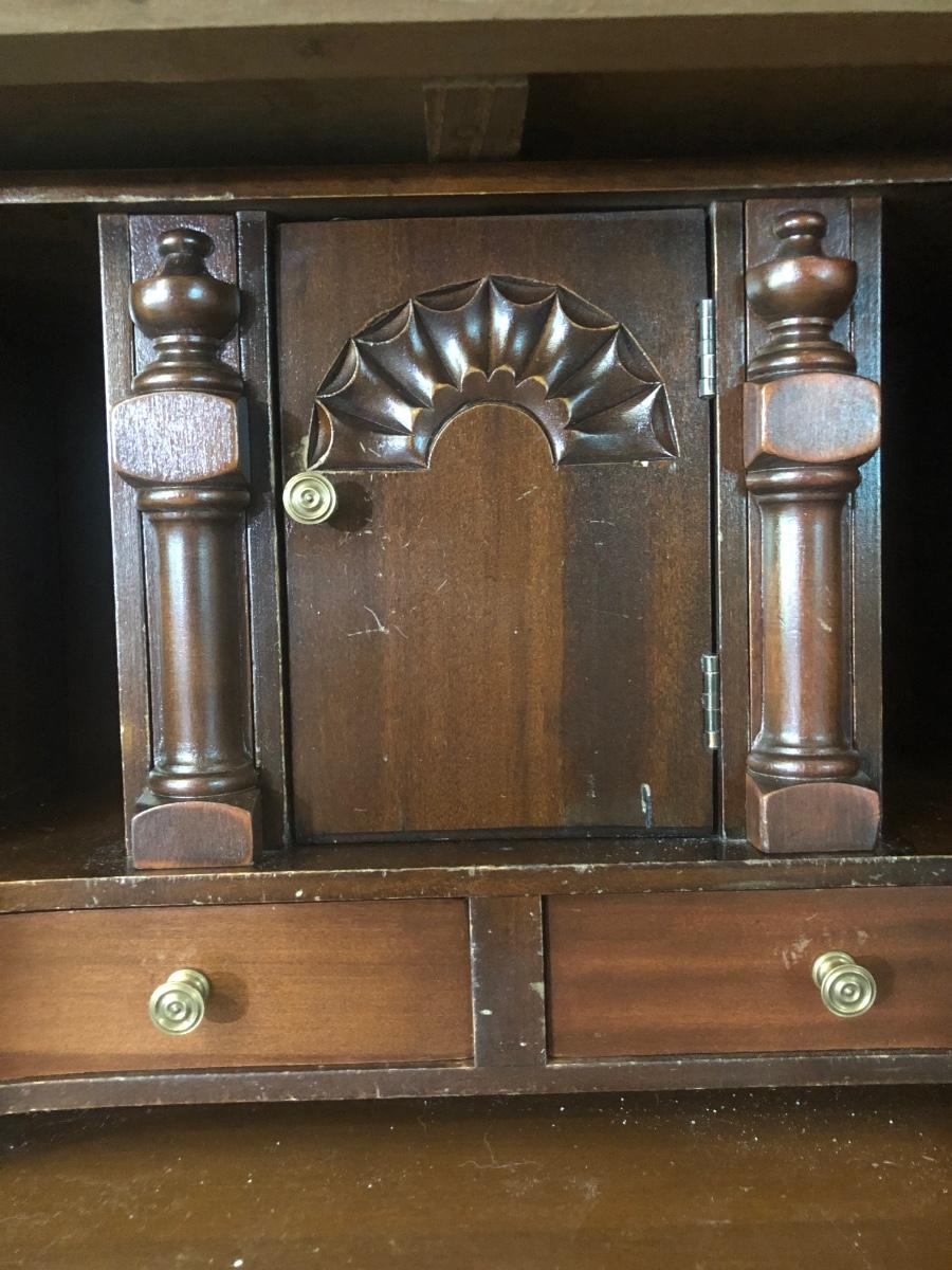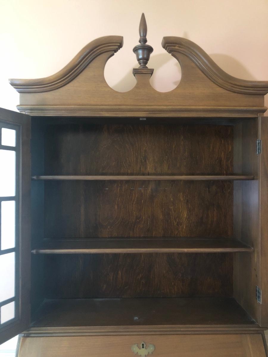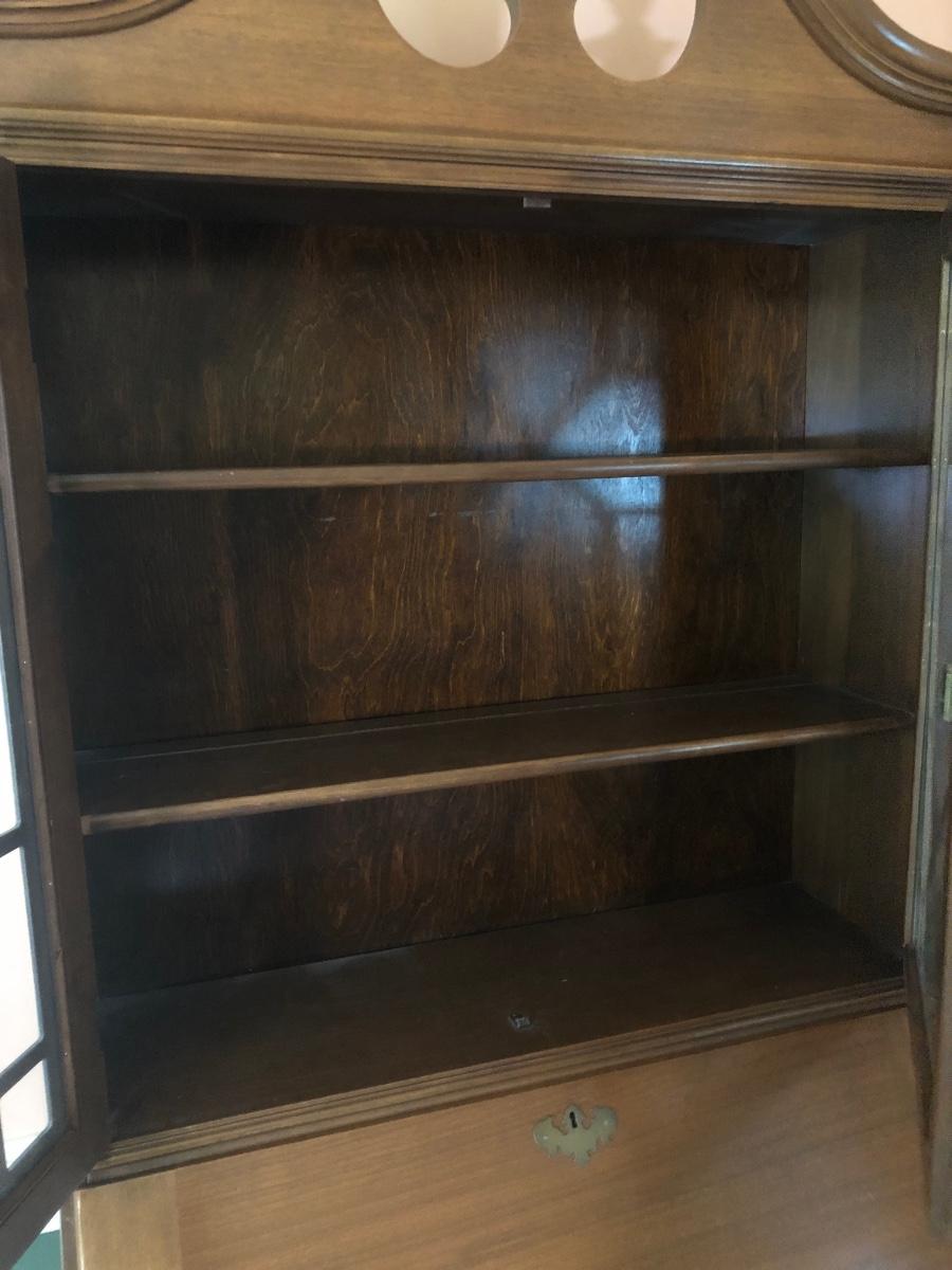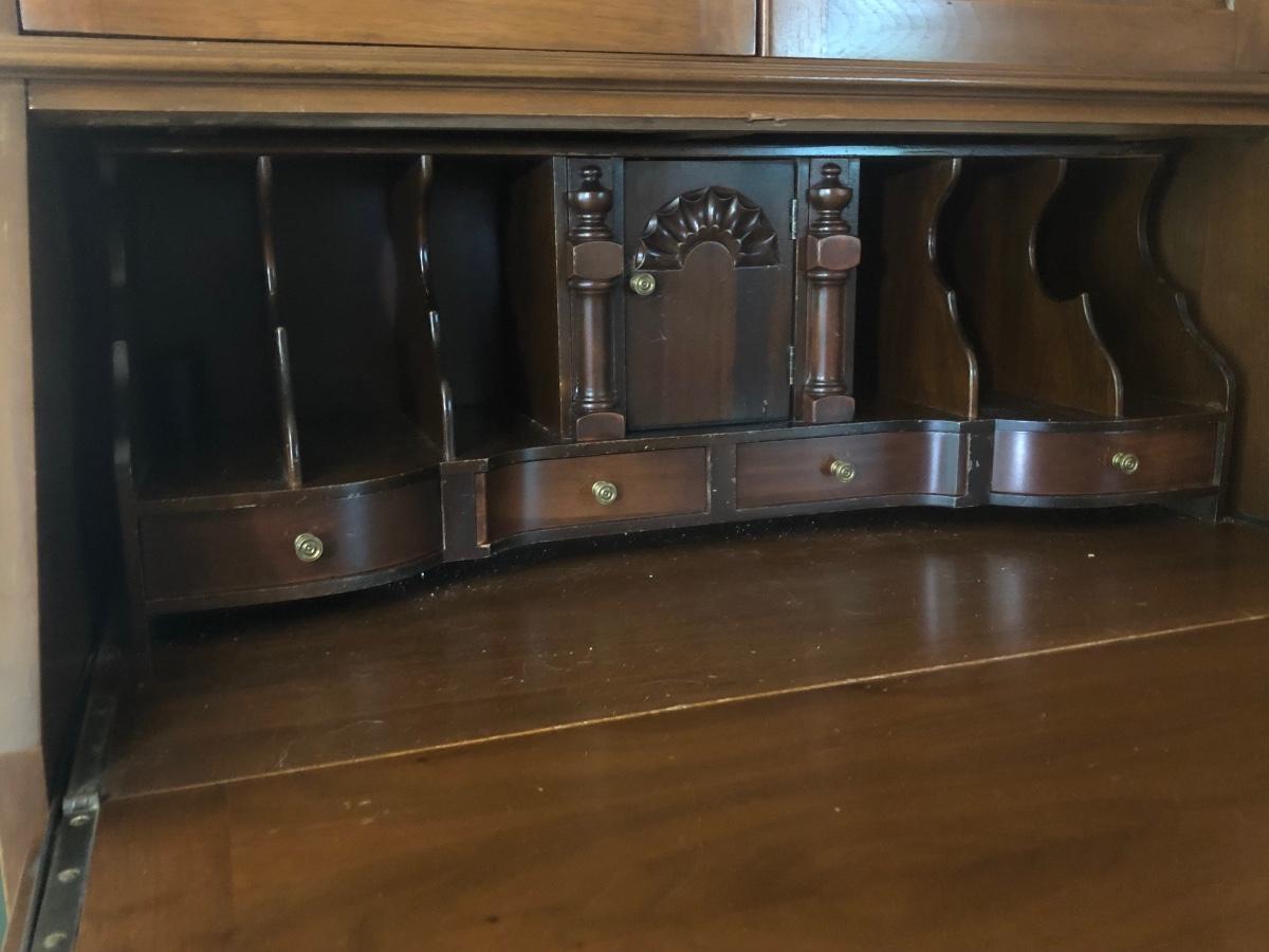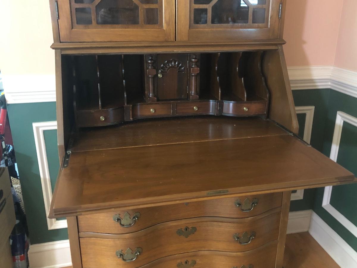 LOT 71D: Vintage Clawfoot Drop Front Desk w/ Glass Front Cabinet & Key