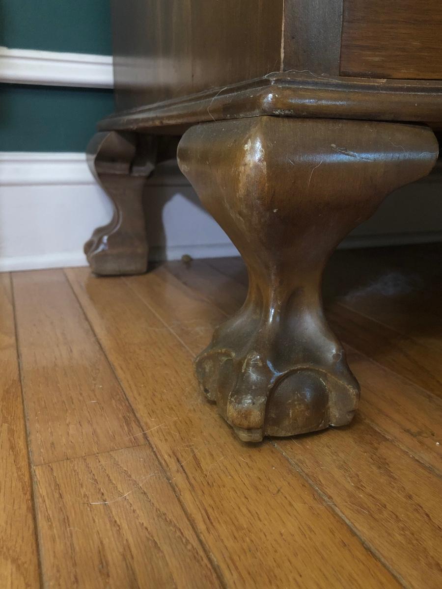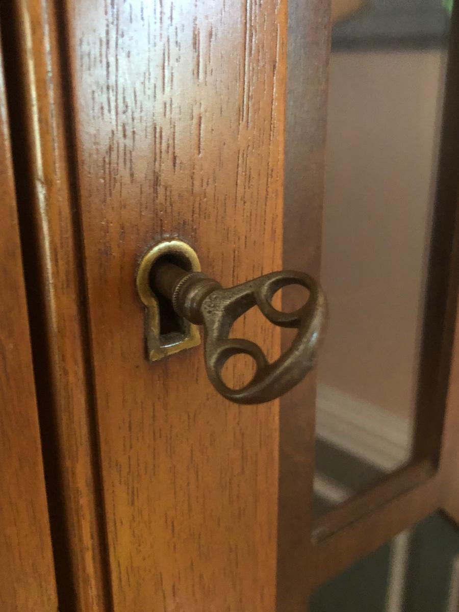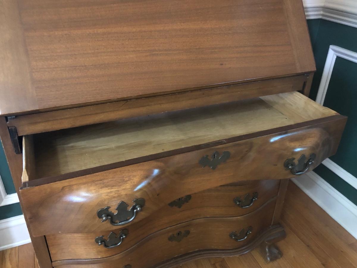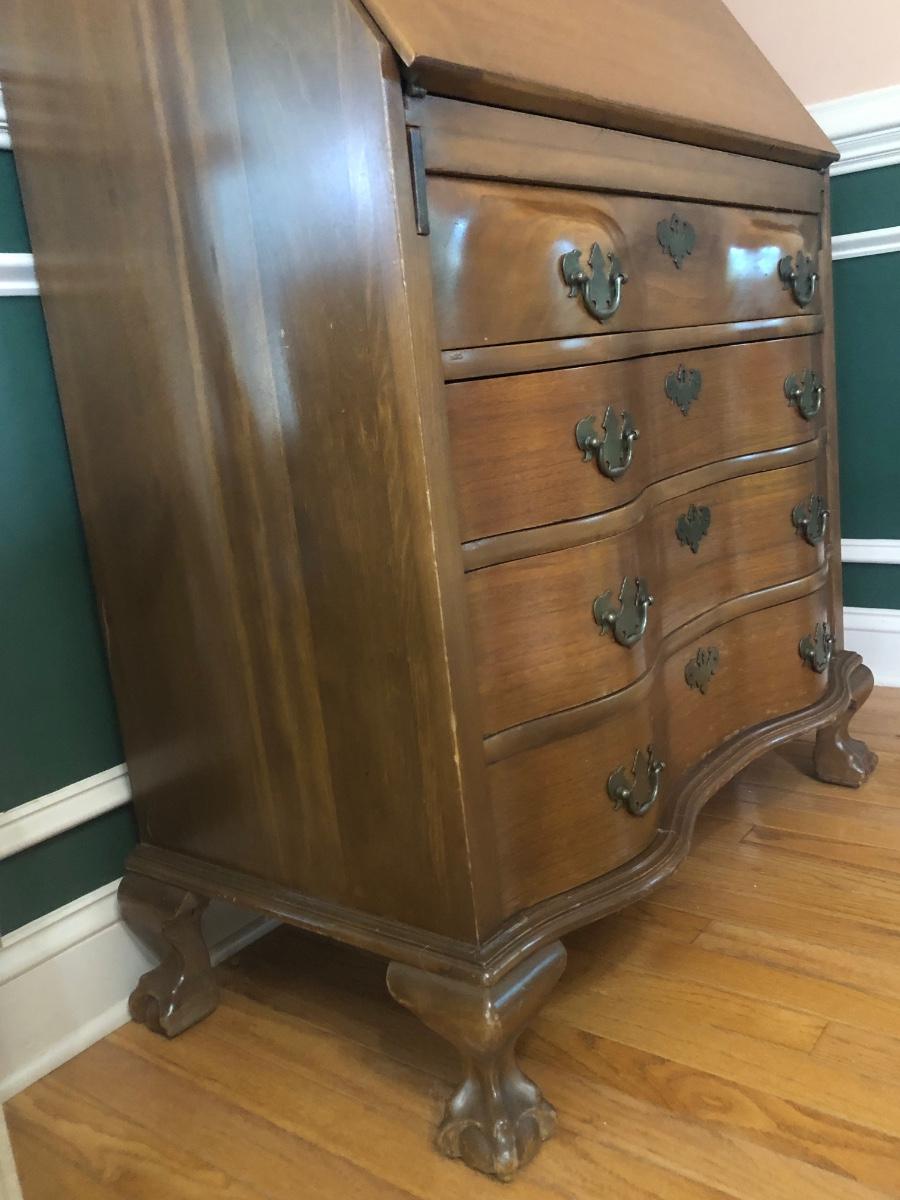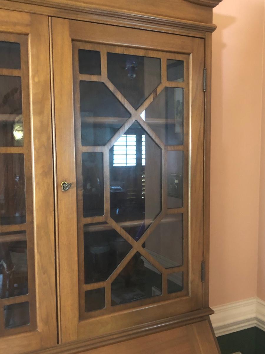 LOT 71D: Vintage Clawfoot Drop Front Desk w/ Glass Front Cabinet & Key