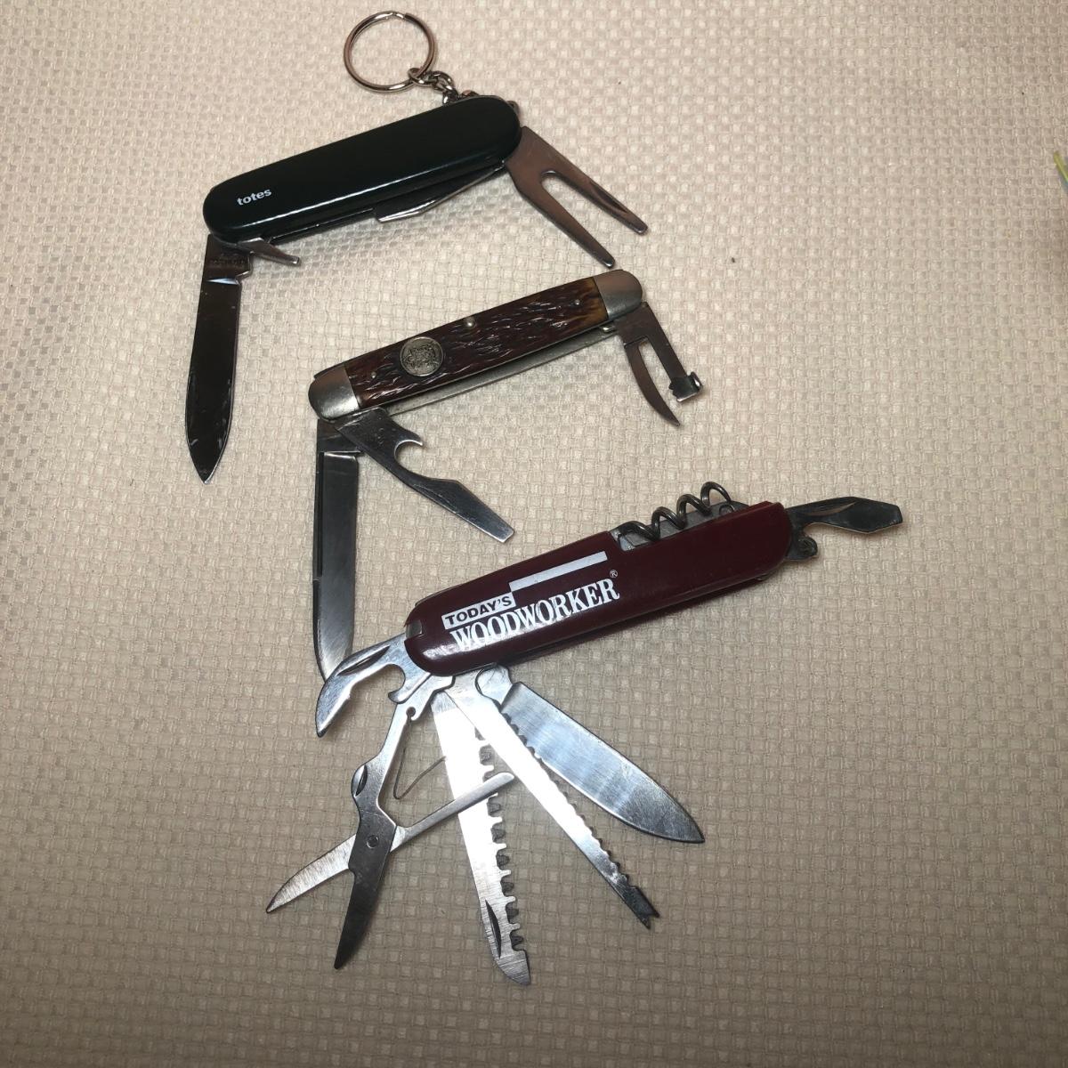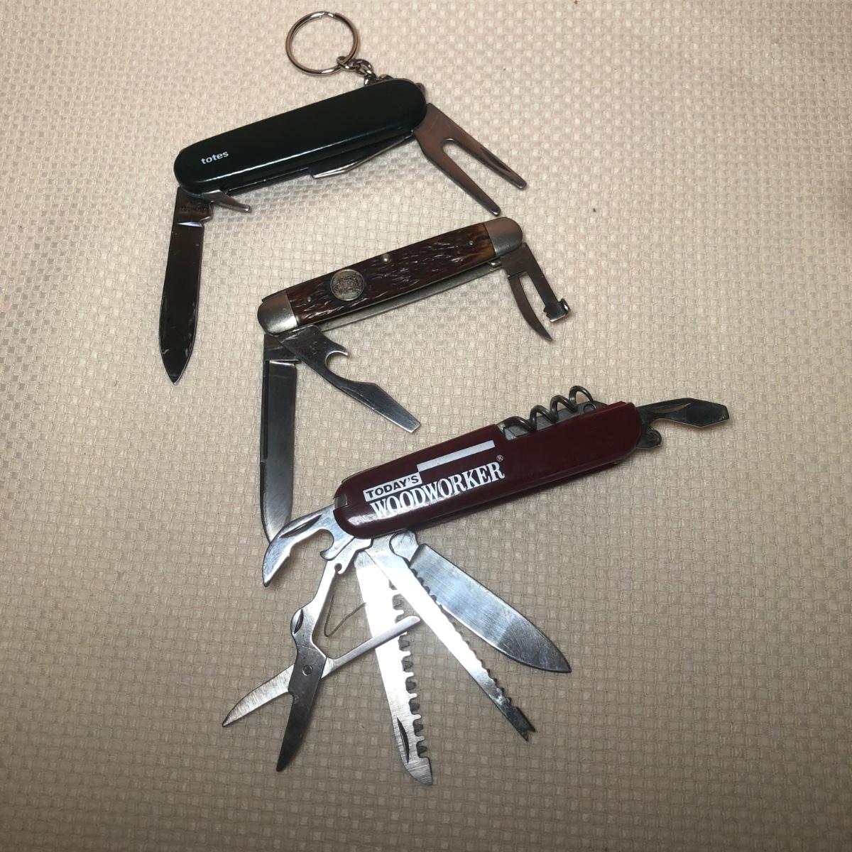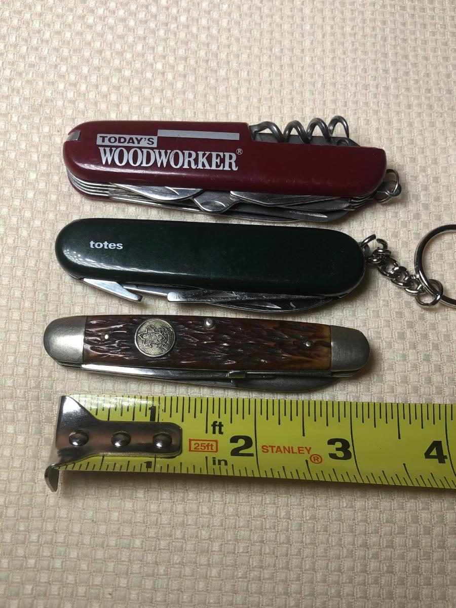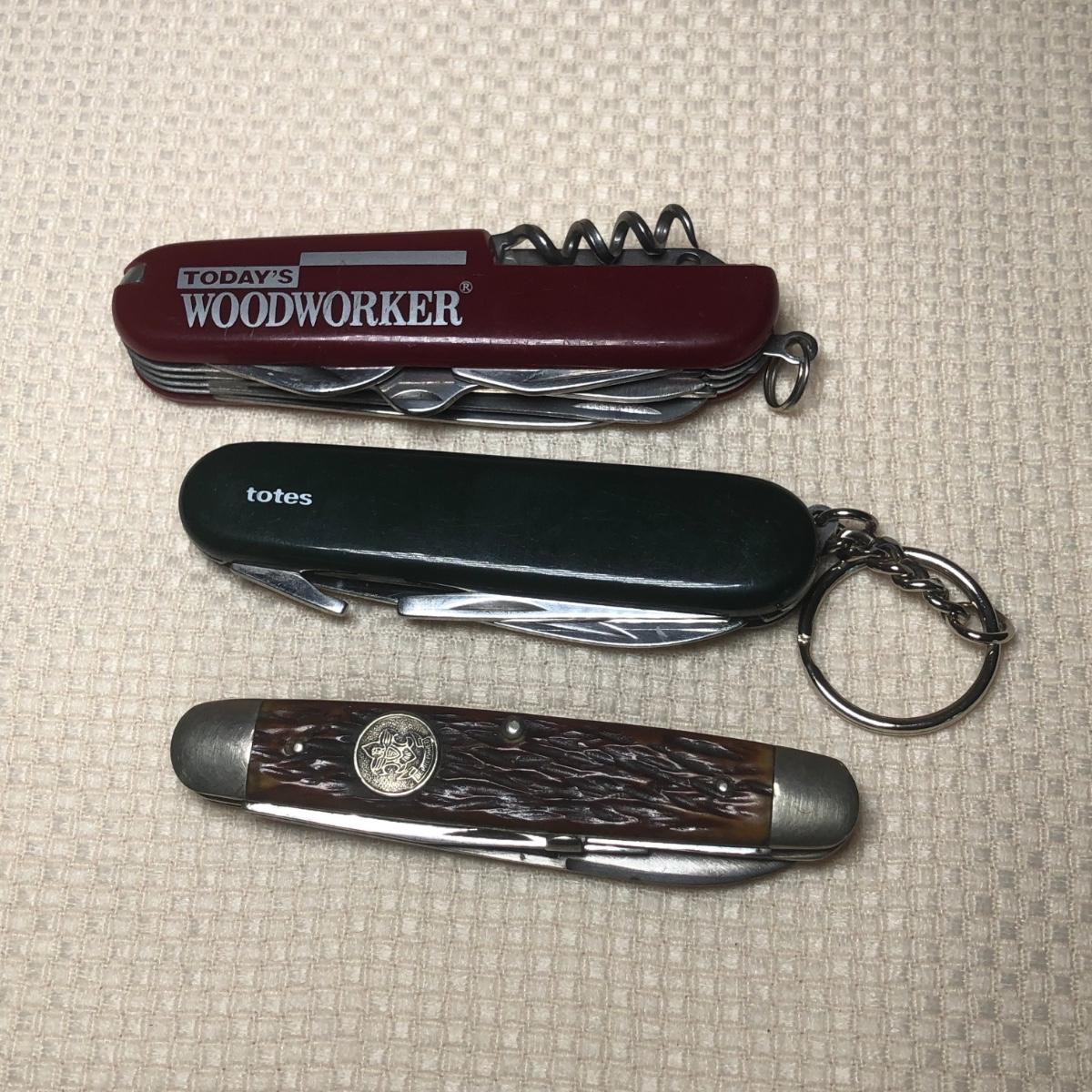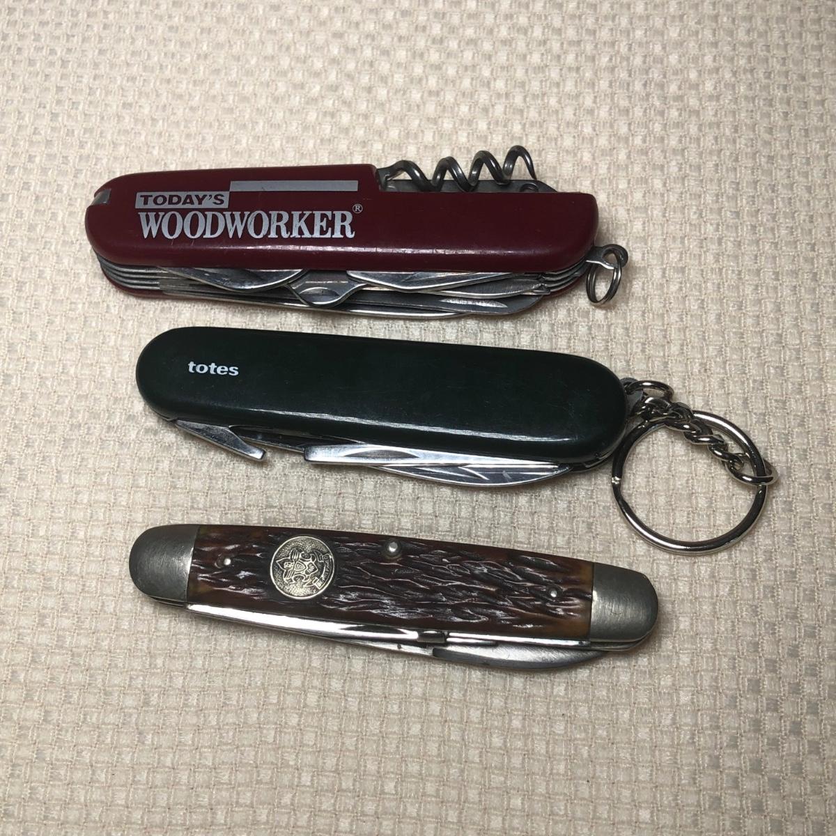 LOT 73D: Three Pocket Knives - Today's Woodworker, "Be Prepared" & Totes