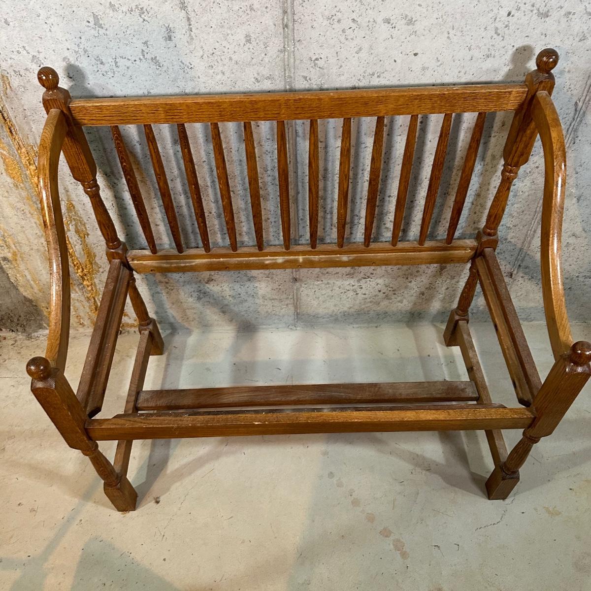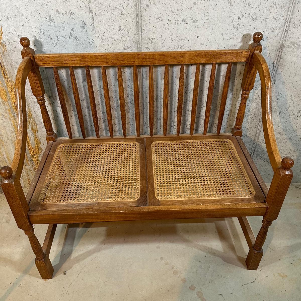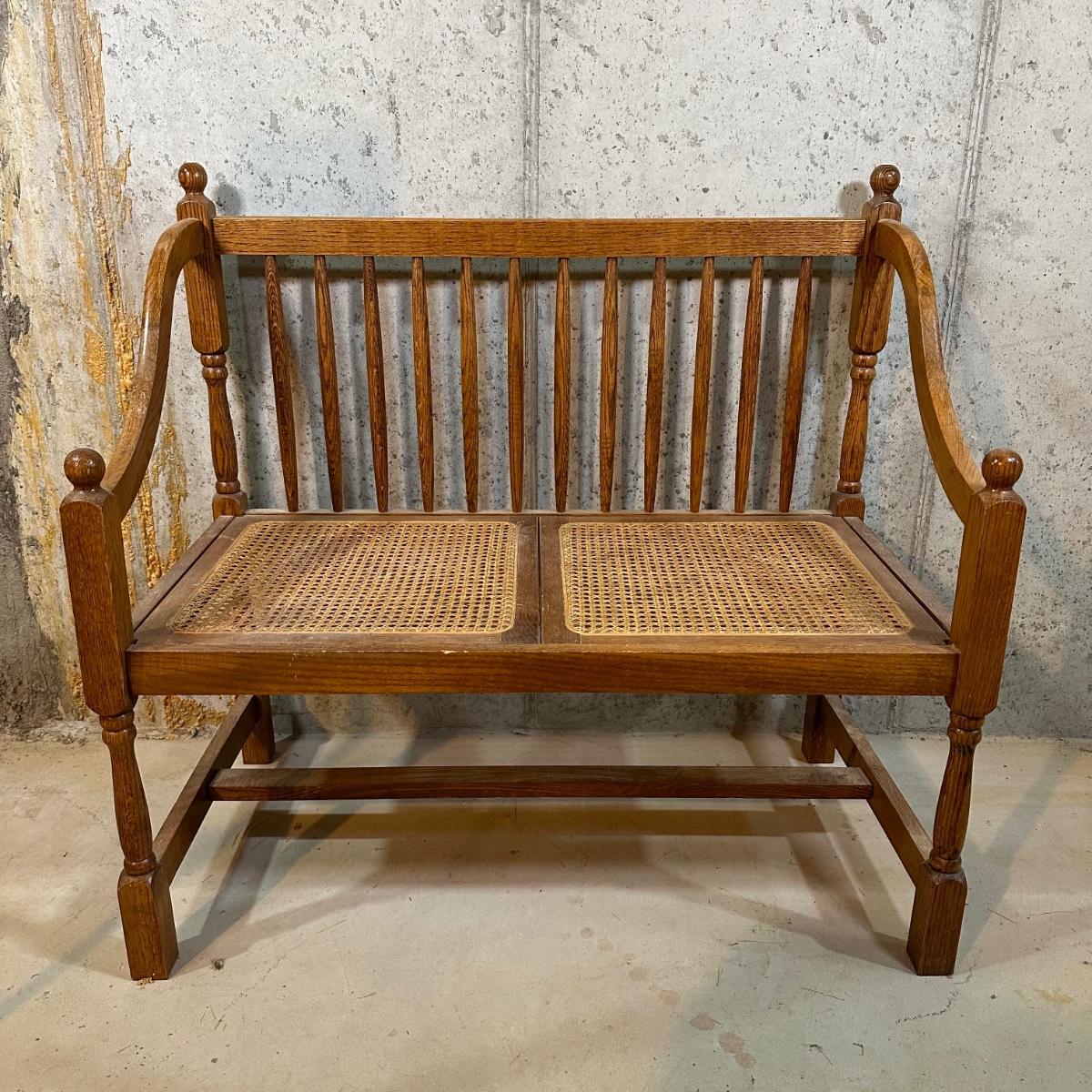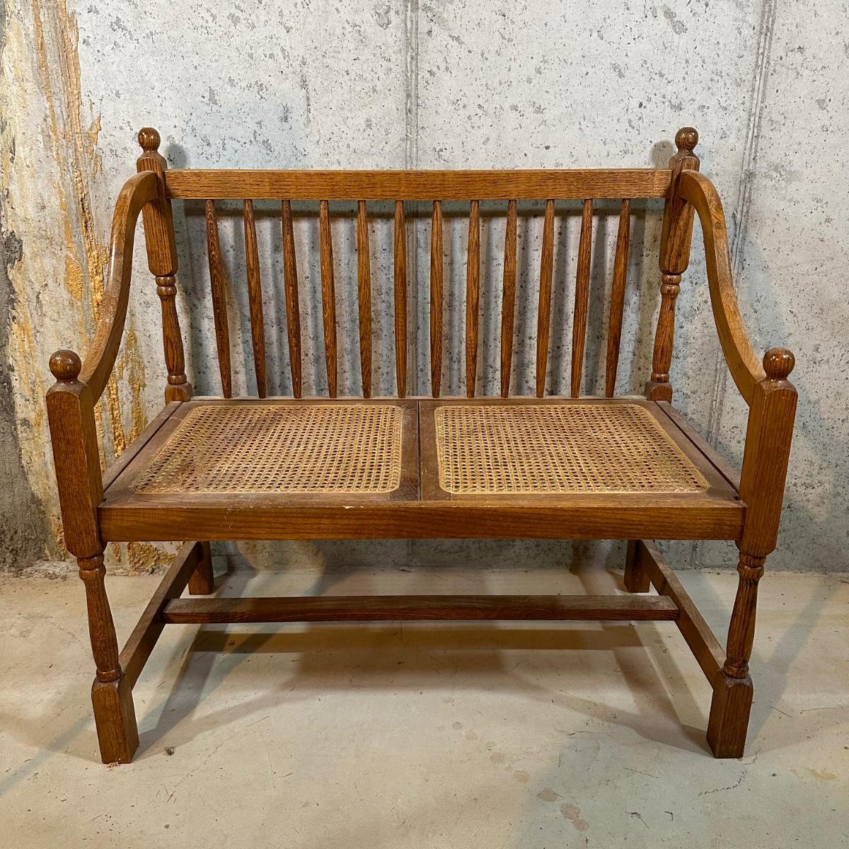 LOT 85Z: Vintage Wooden Bench w/ Woven Cane Seats