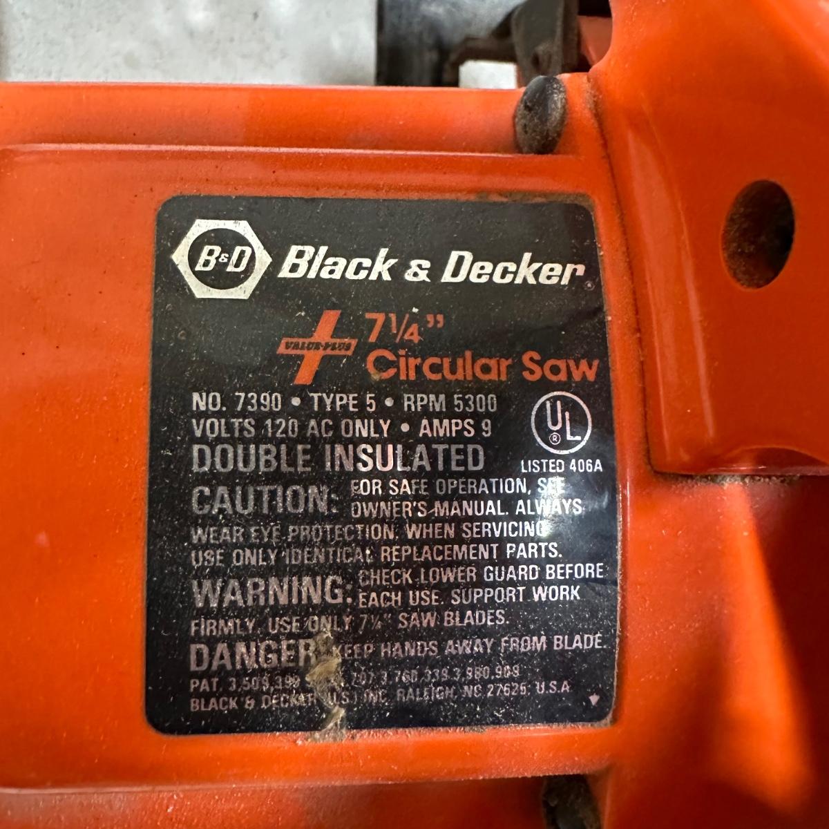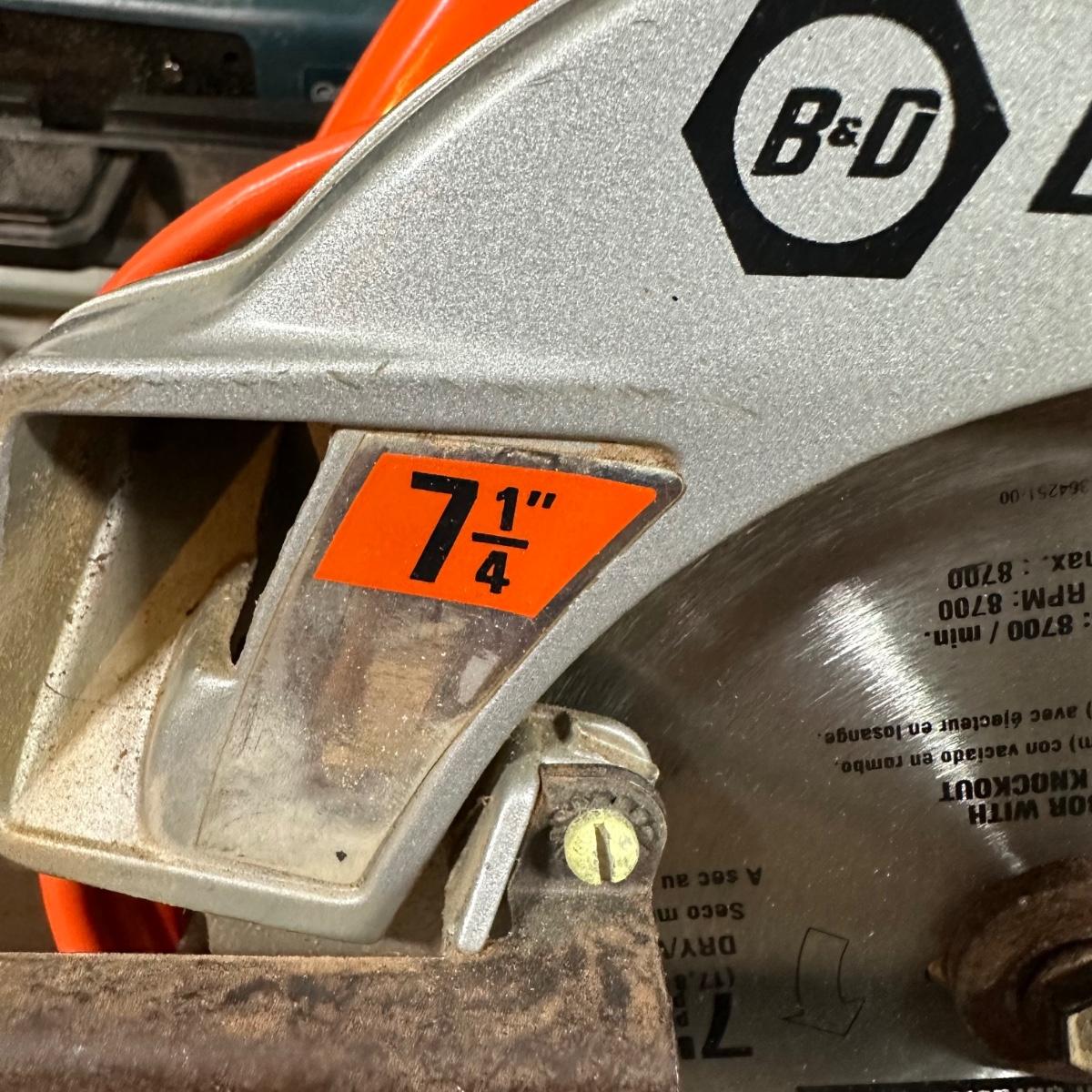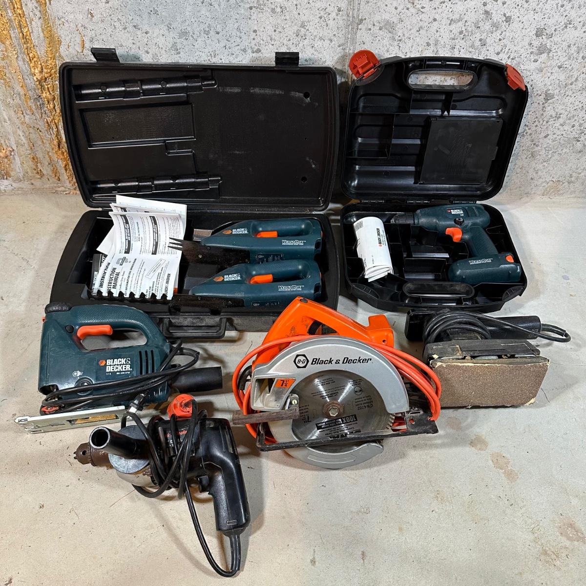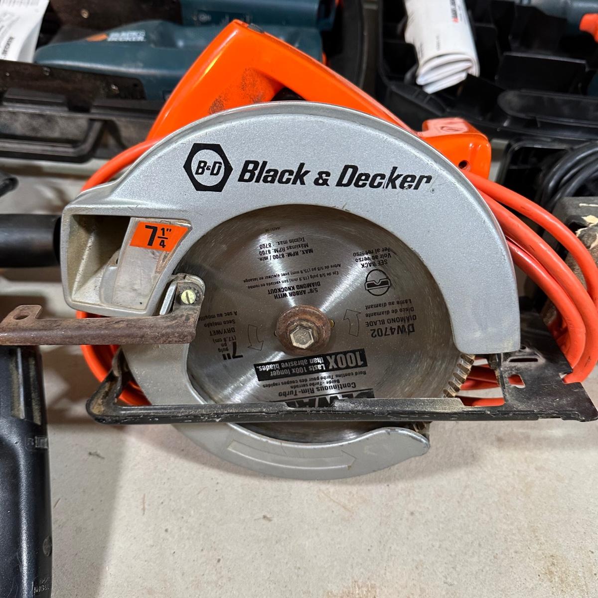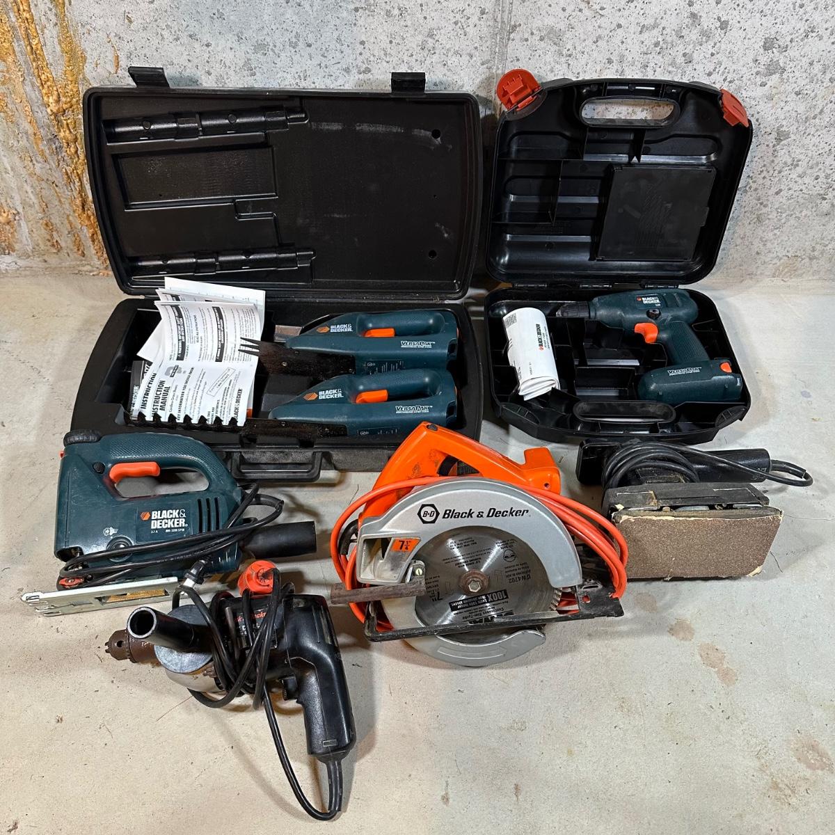 LOT 89Z: Black & Decker Power Tools - Circular Saw, 1/2” Drill, Finishing Sander & More