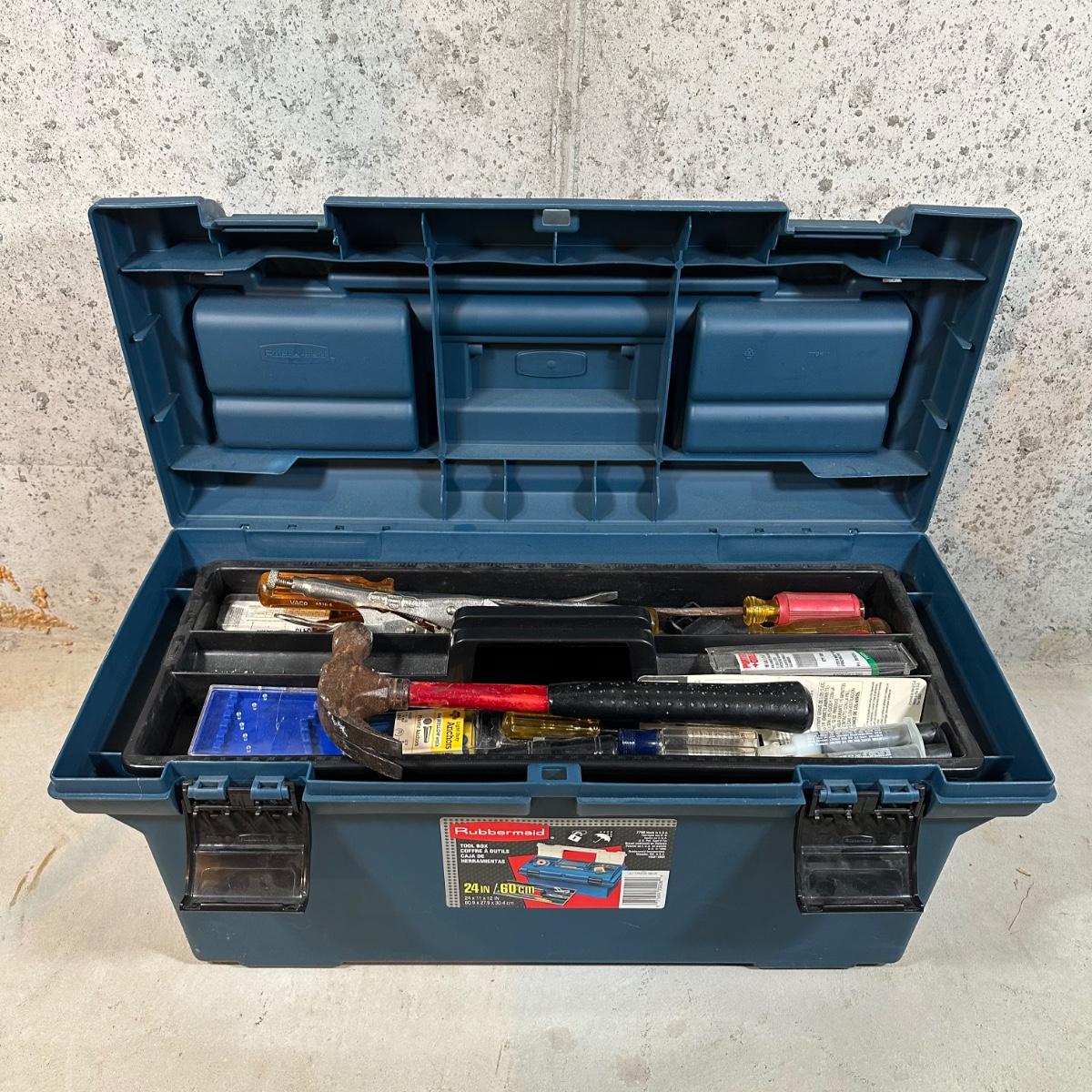 LOT 97Z: Rubbermaid 24” Tool Box 7798 - All Contents Included, Tools & More