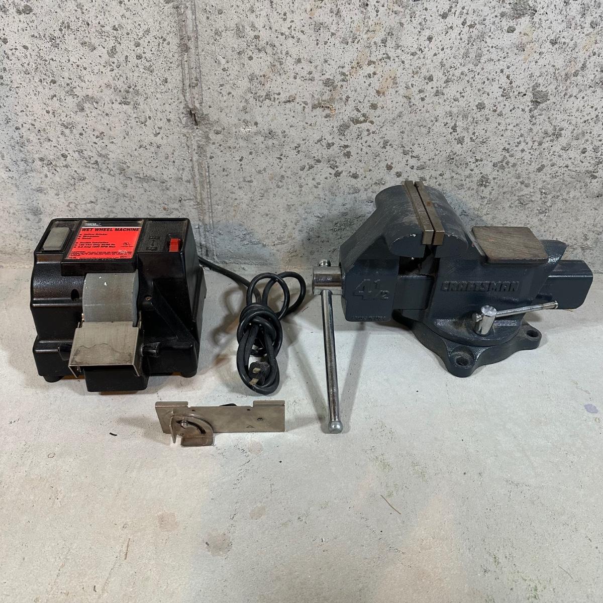 LOT 102Z: Master Mechanic Wet Wheel Machine & Craftsman 4 1/2” Table Vice