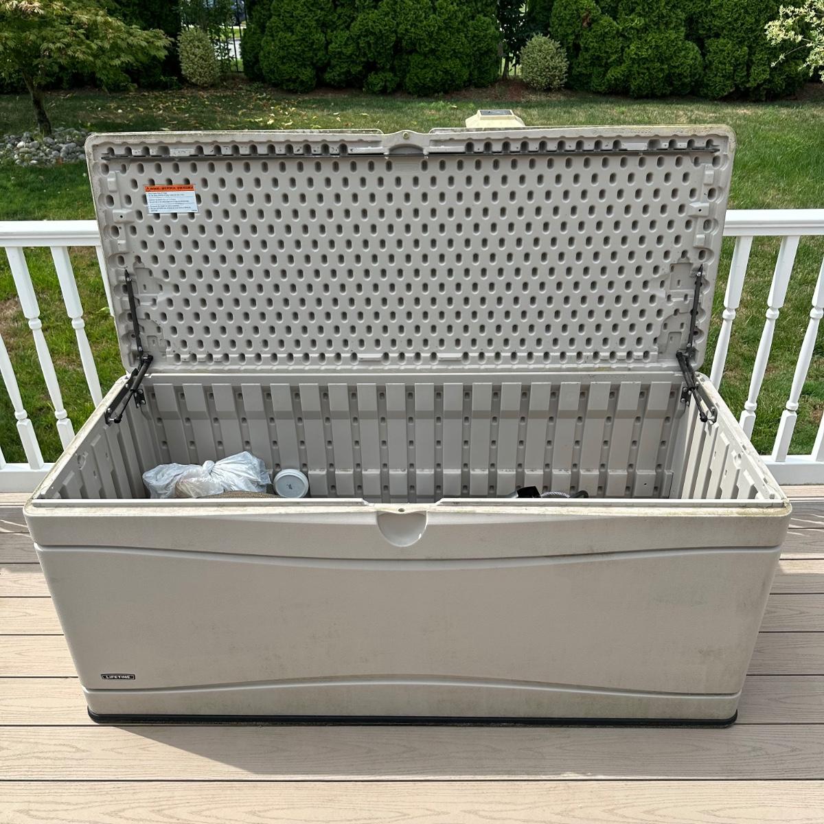 LOT 108O: LIFETIME PRODUCTS 130 Gallon Deck Box w/ All Contents Included!