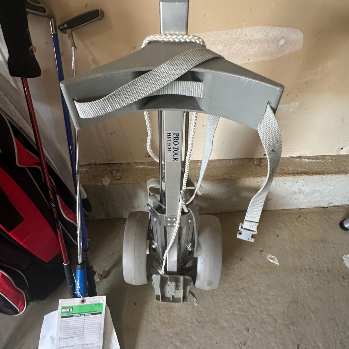 LOT 114G: Golf Essentials! Golf Club Set w/ Datrek bag, Pro Tour Hi Tech Cart & More