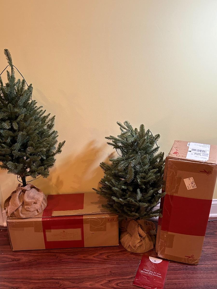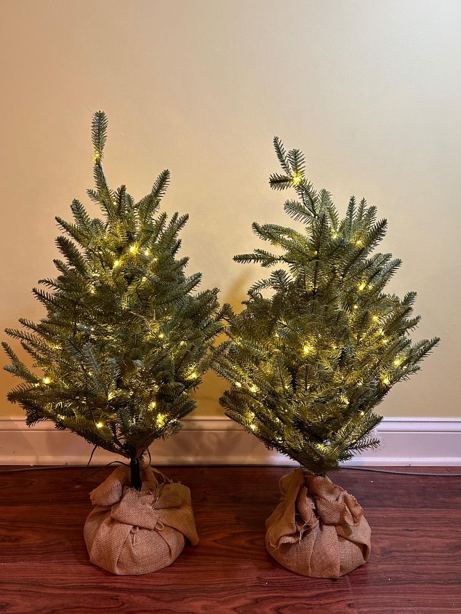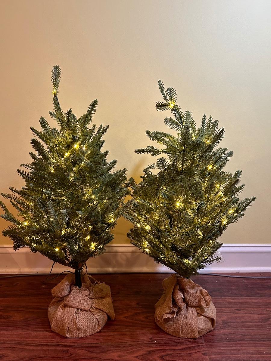 LOT 129B: Pair of Balsam Hill 30" Table Top Trees with LED Clear Fairly Lights