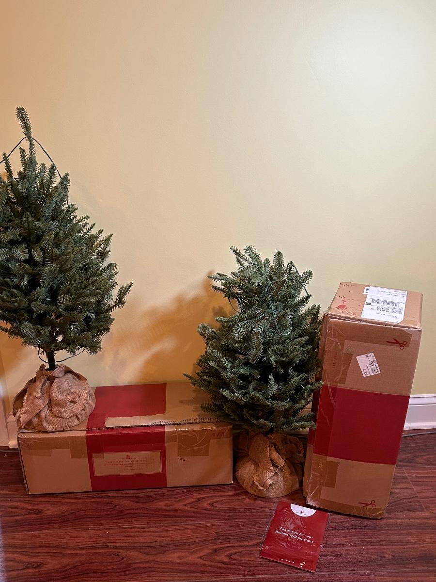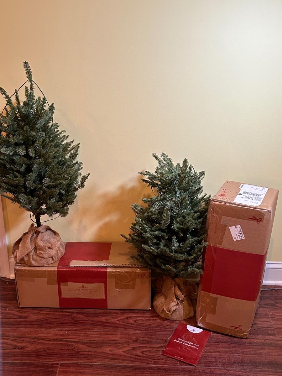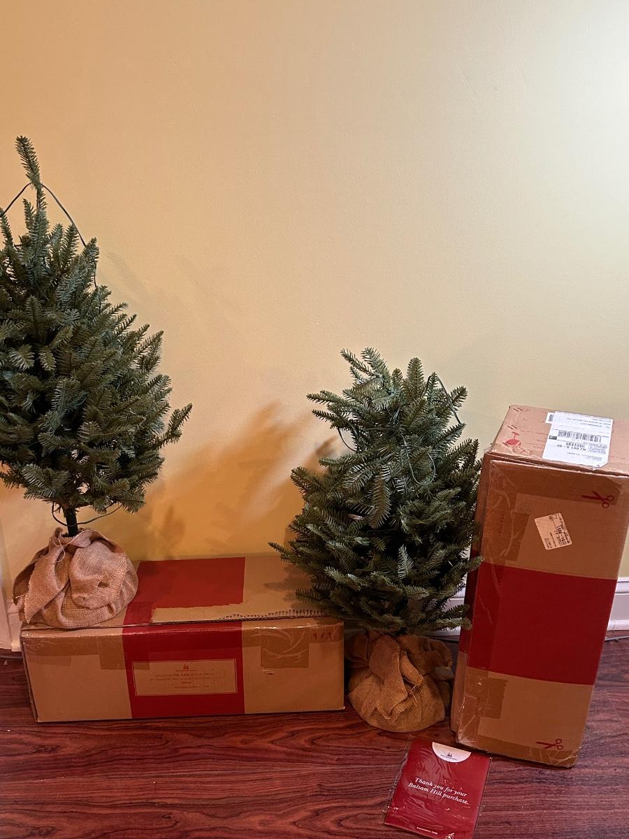 LOT 129B: Pair of Balsam Hill 30" Table Top Trees with LED Clear Fairly Lights