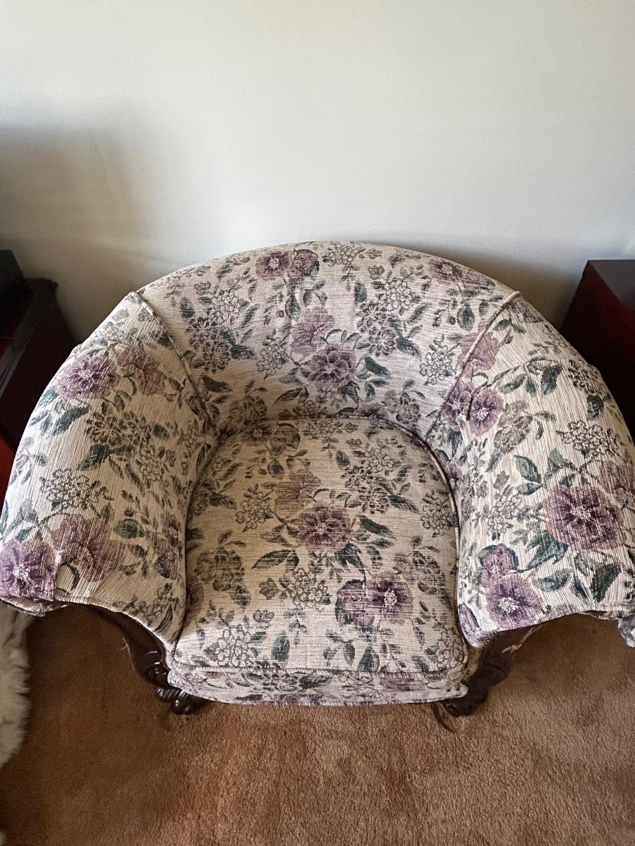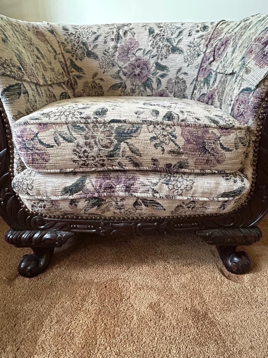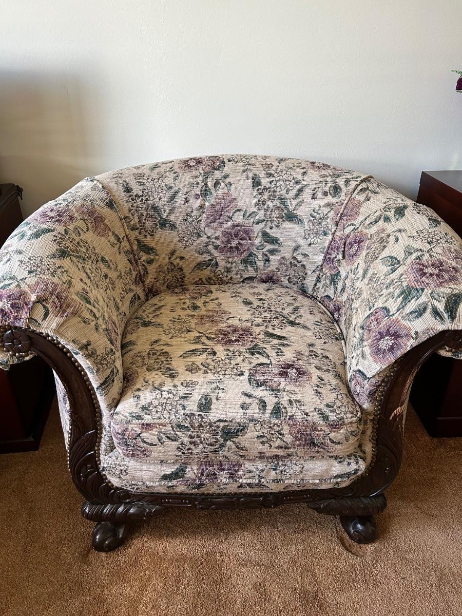 LOT 139O : Floral Couch & Accent Chair- Couch 69"x30"x36" Chair 40'x29'x34'