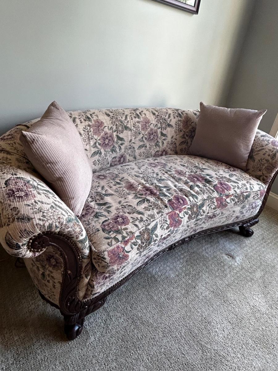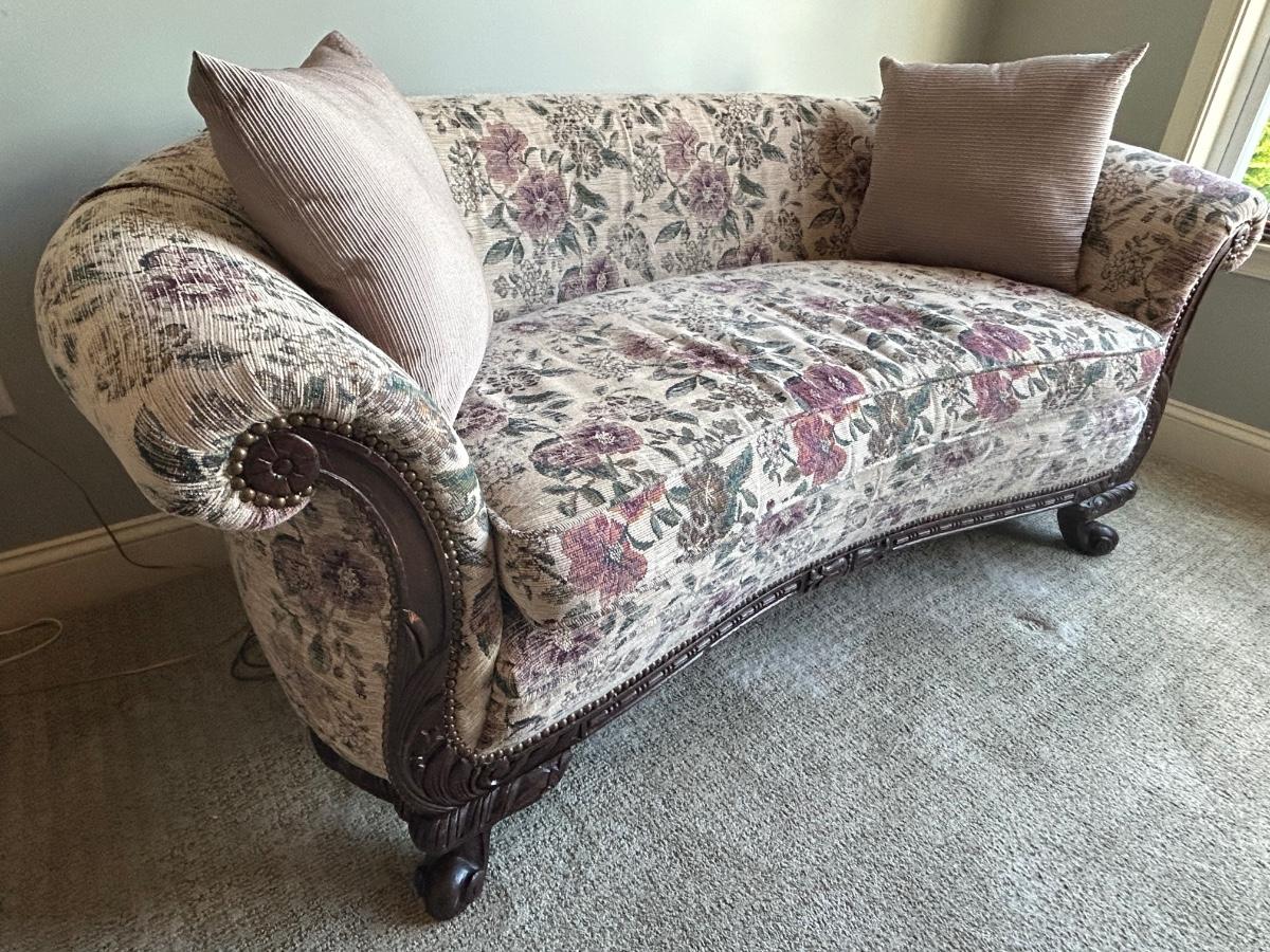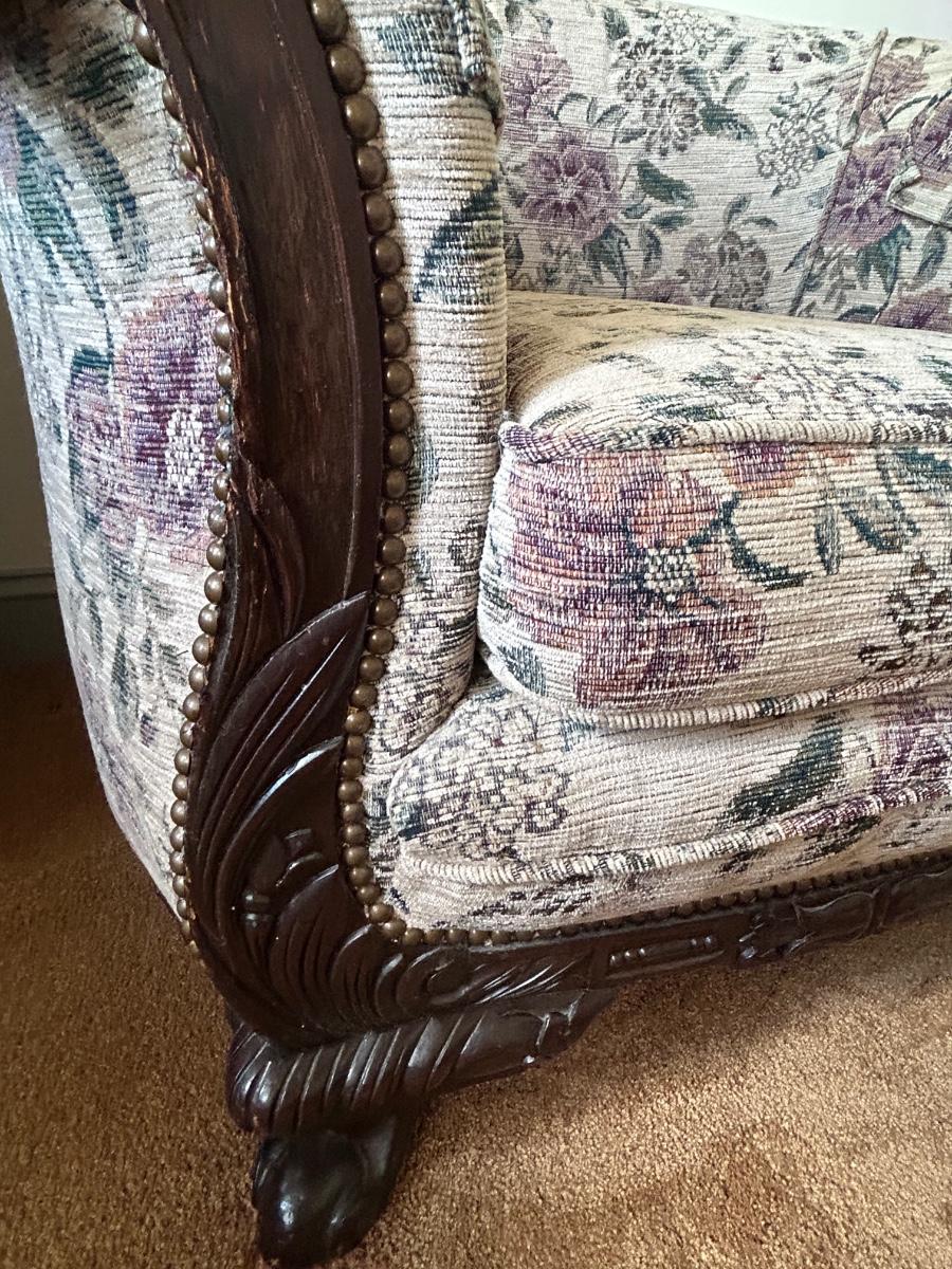 LOT 139O : Floral Couch & Accent Chair- Couch 69"x30"x36" Chair 40'x29'x34'