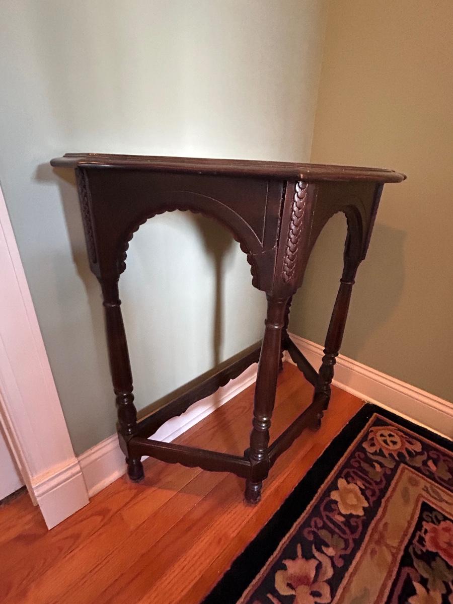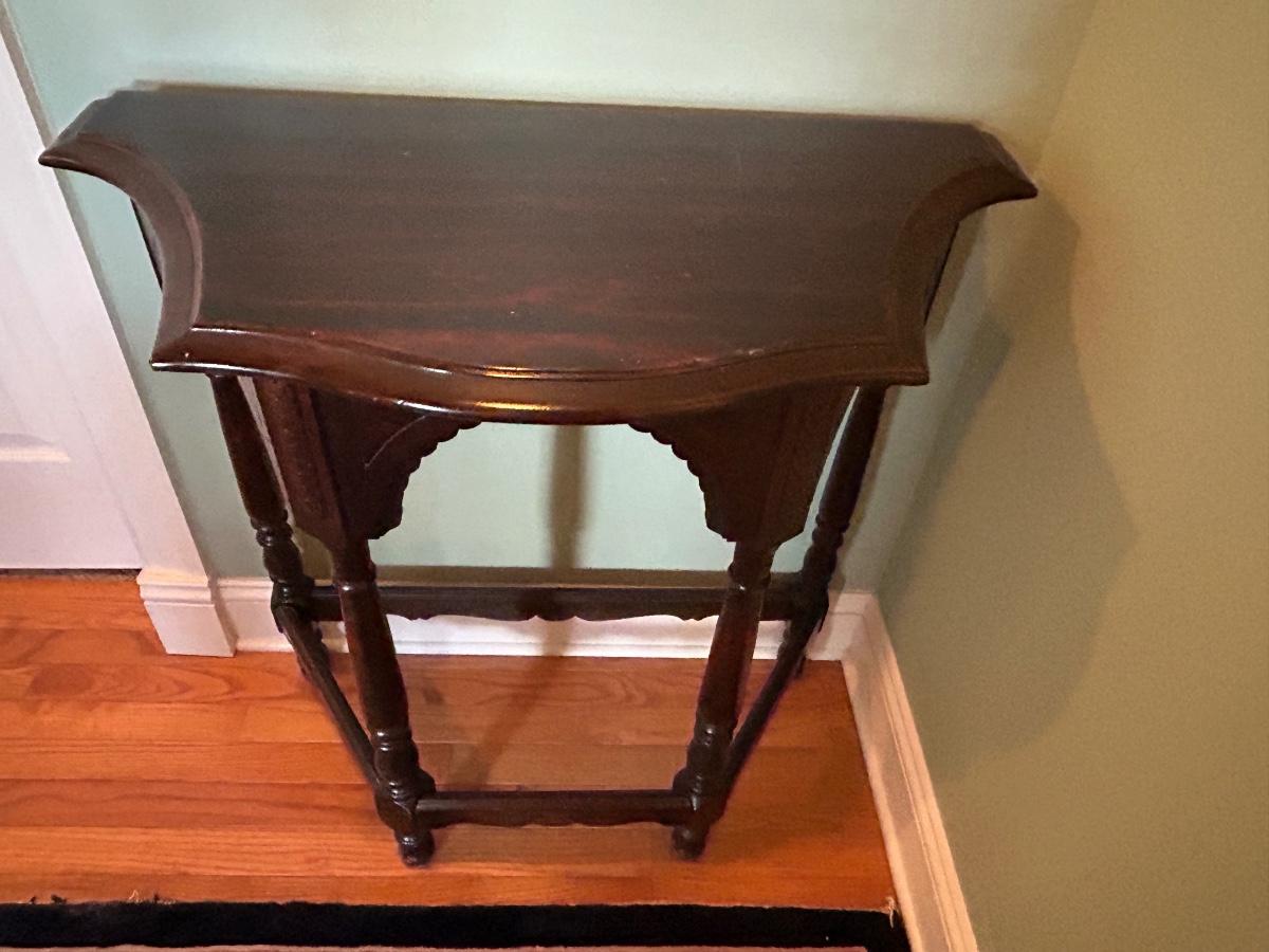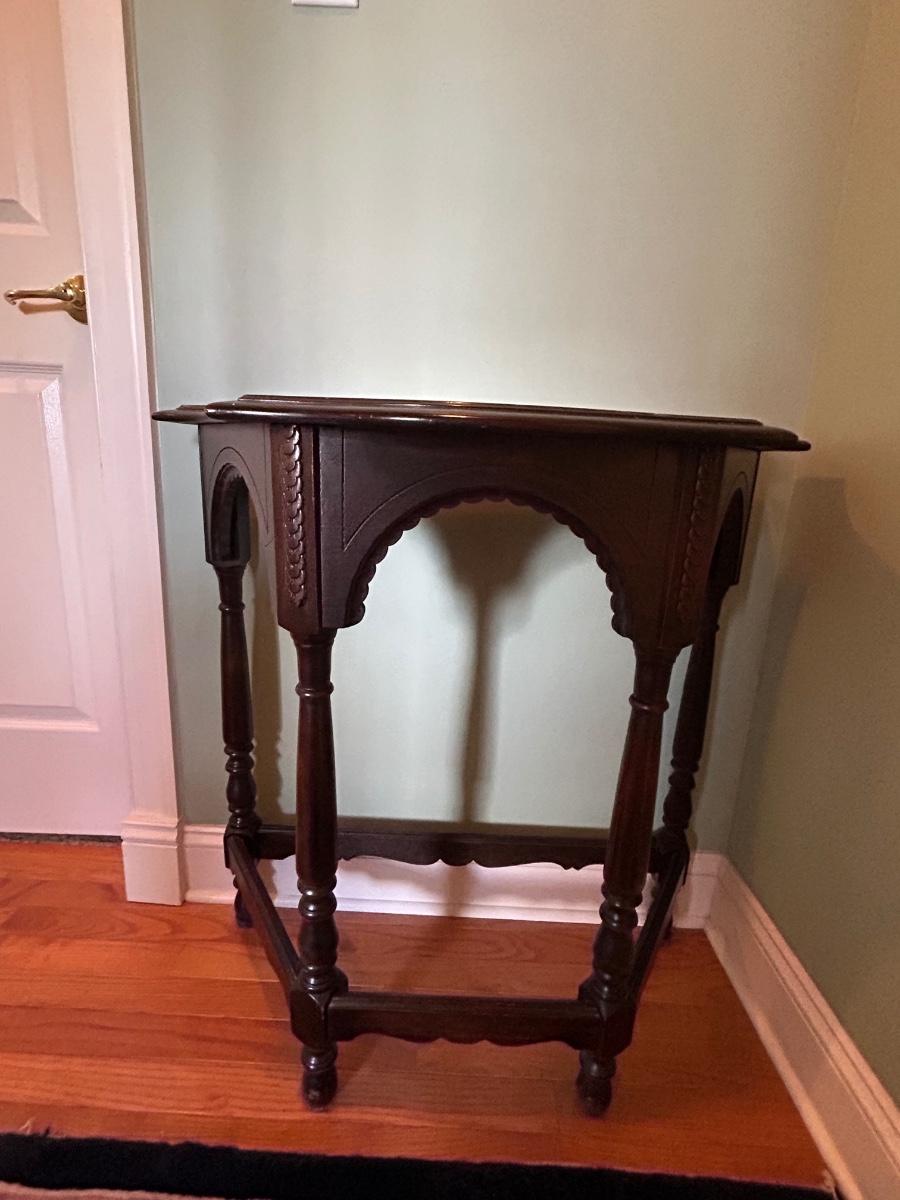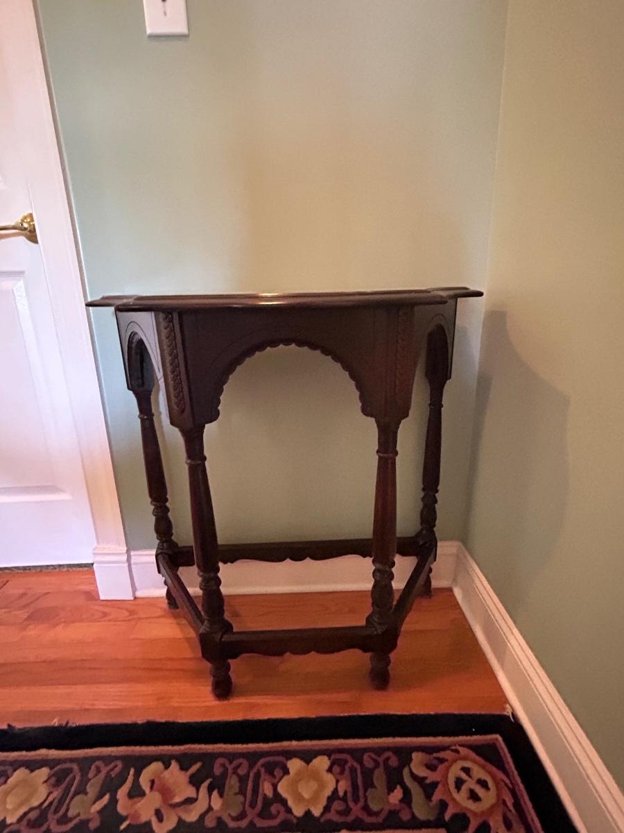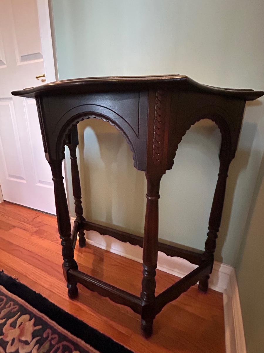 LOT 140H: Wood Side Table With Ornate Details 29"x30"x15'