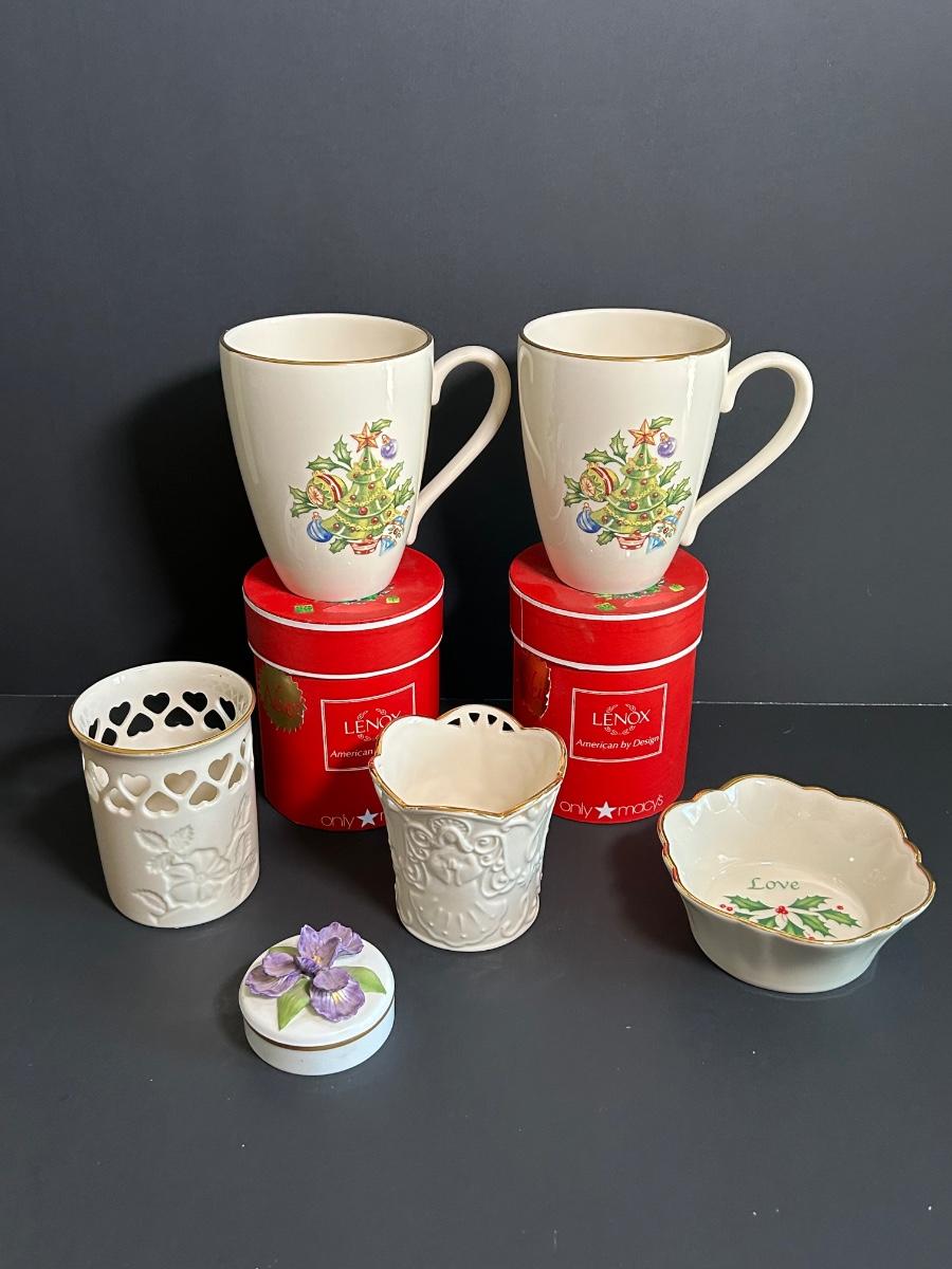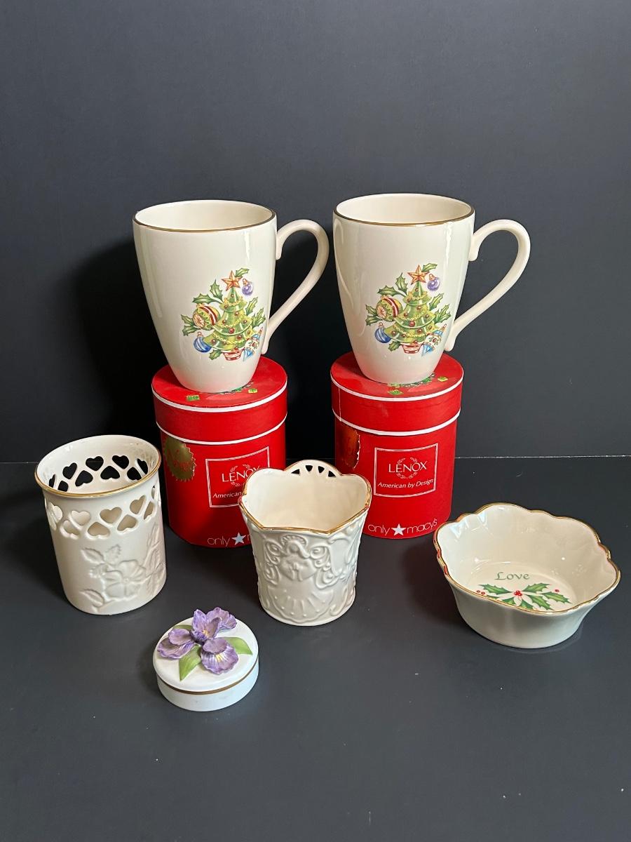 LOT 146D: Lenox Collection - Serving Knife, Mugs, Trinket Box and more