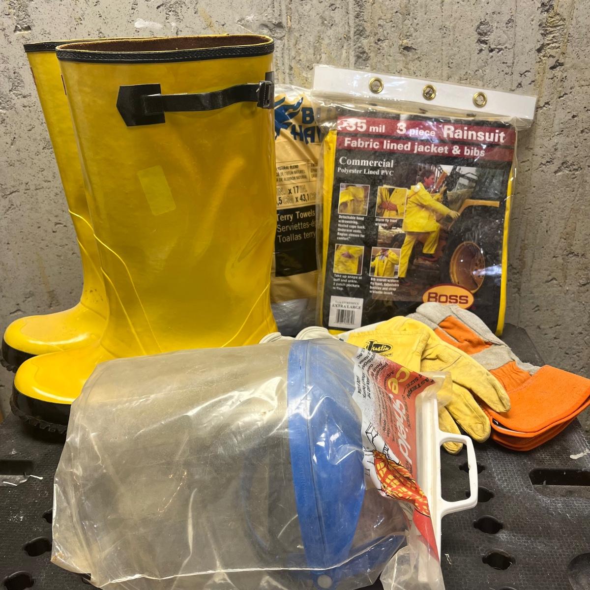 LOT 169Y: Rain Gear, Boots, Gloves and More