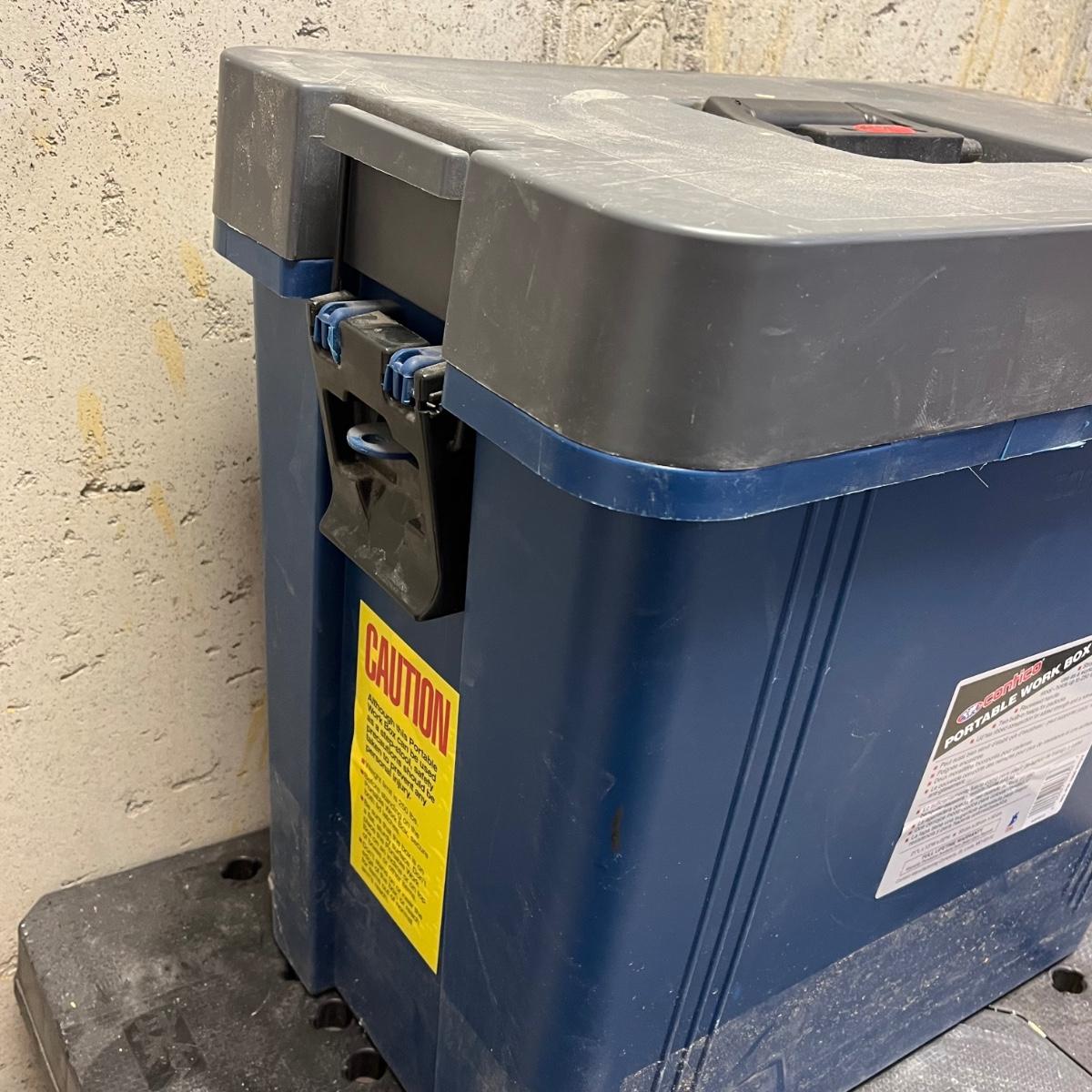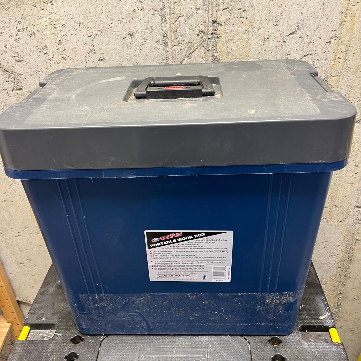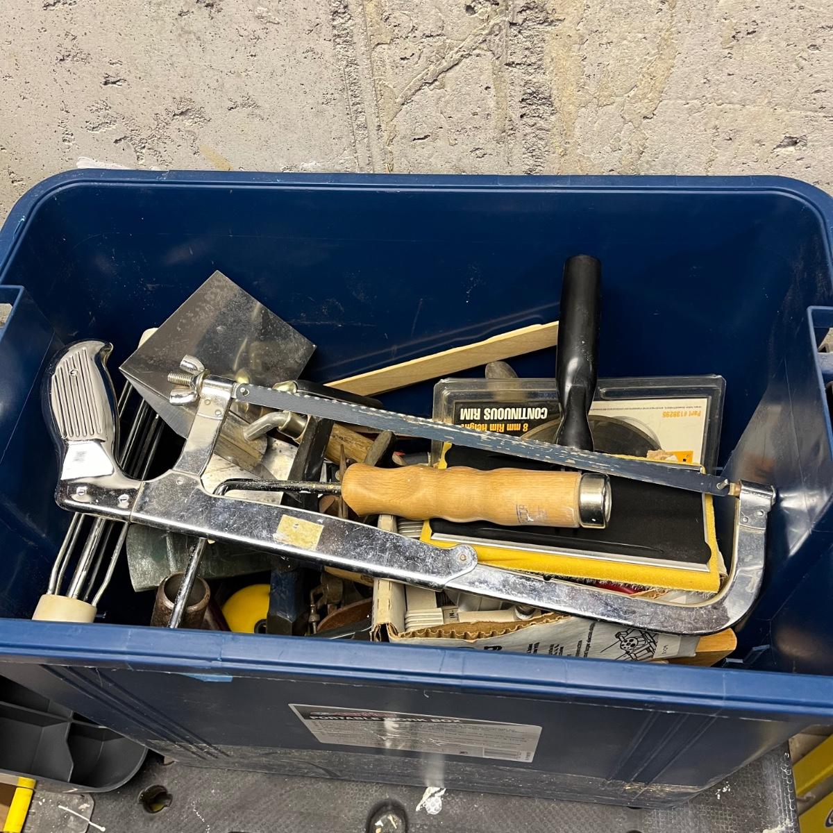 LOT 181Y: Heavy Duty Storage Bin Full of Tools
