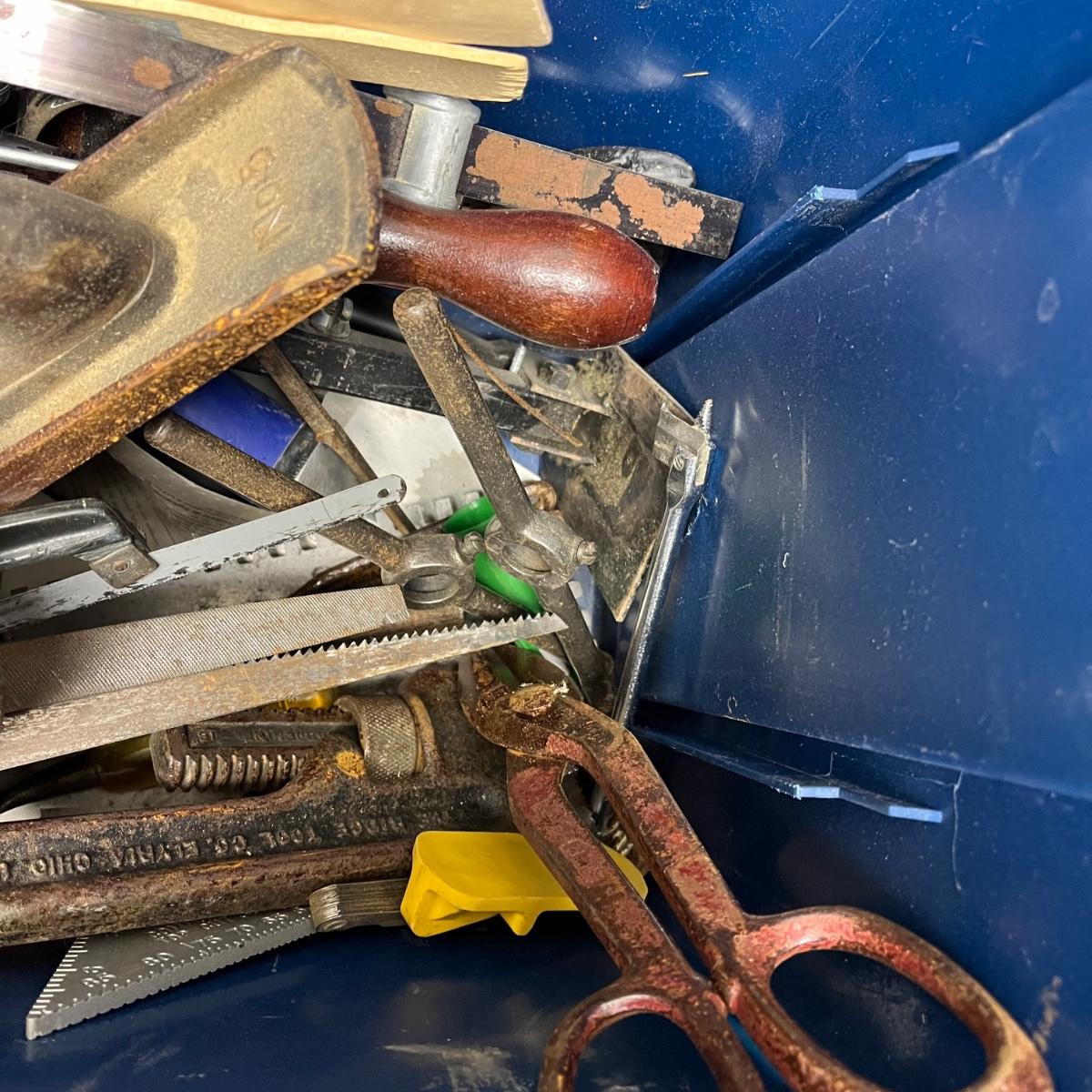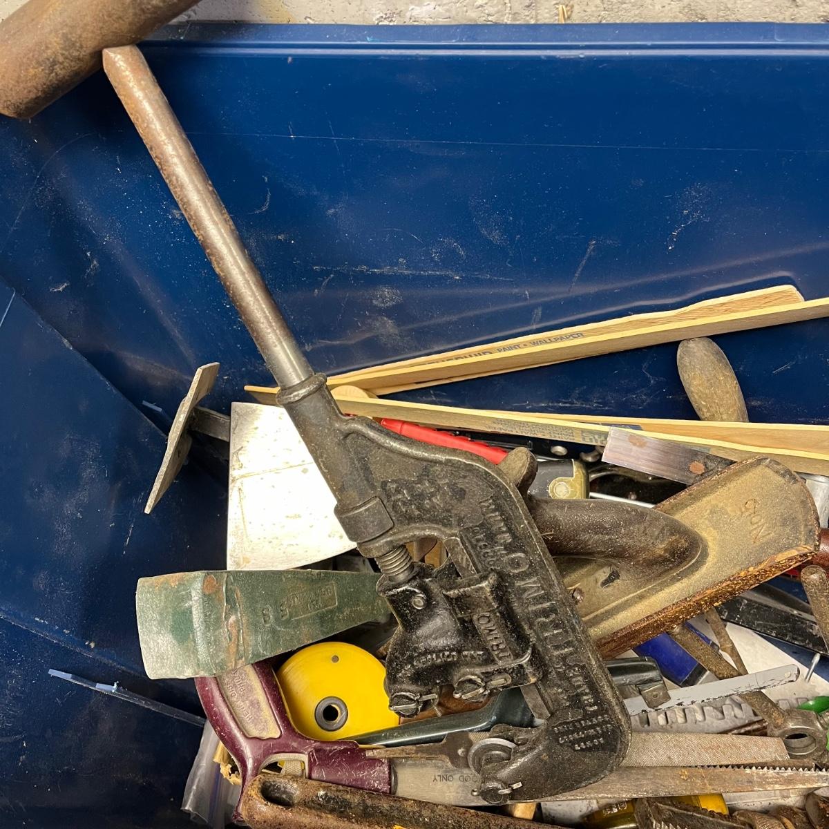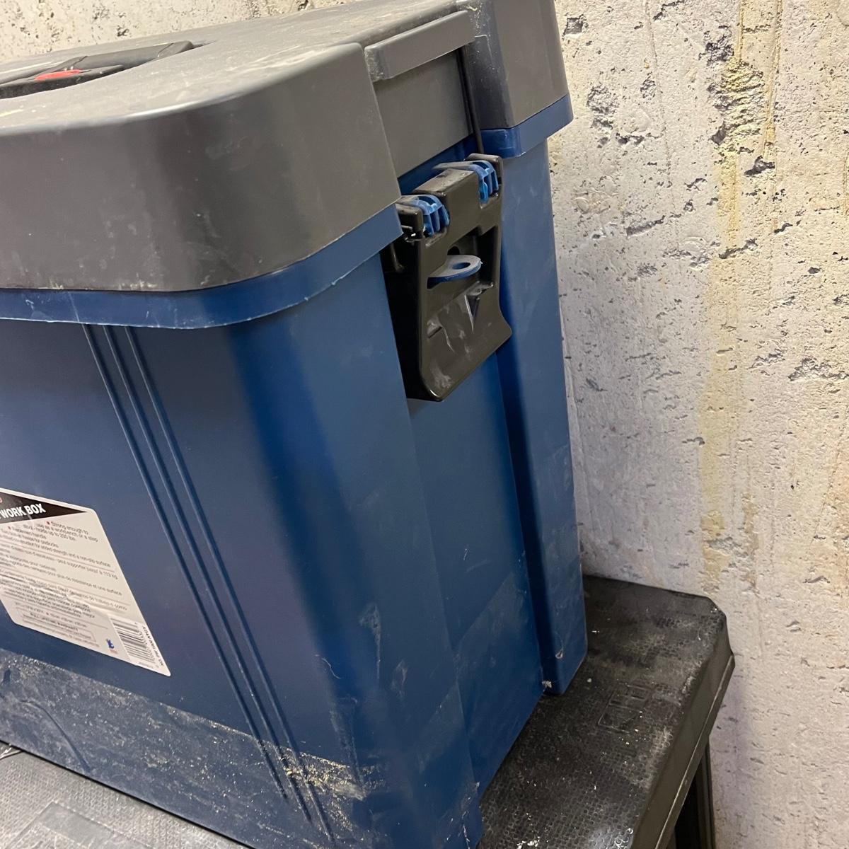 LOT 181Y: Heavy Duty Storage Bin Full of Tools