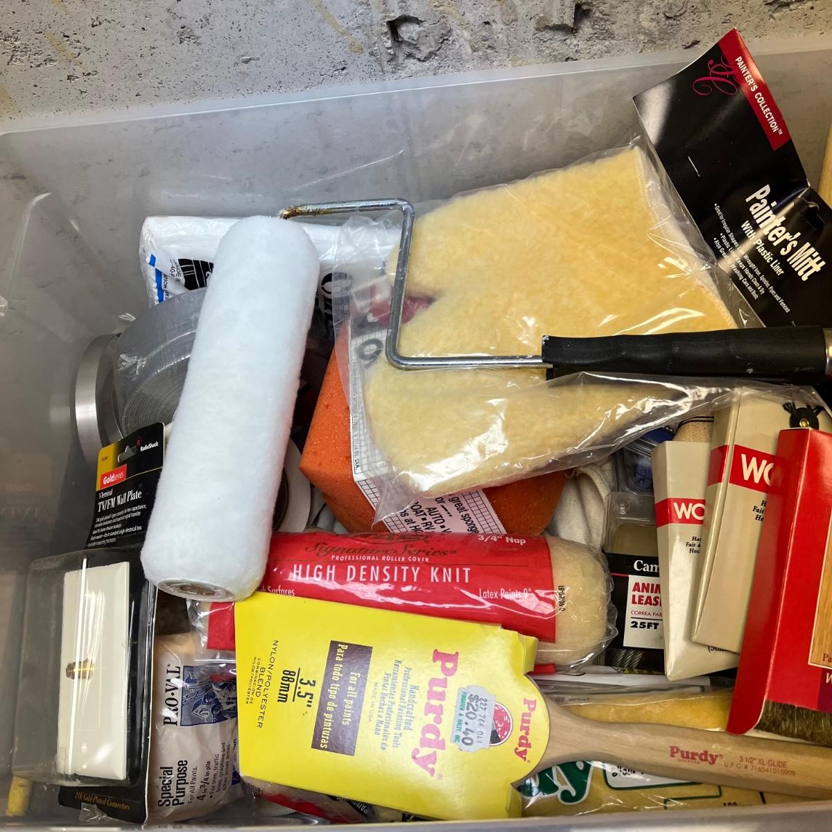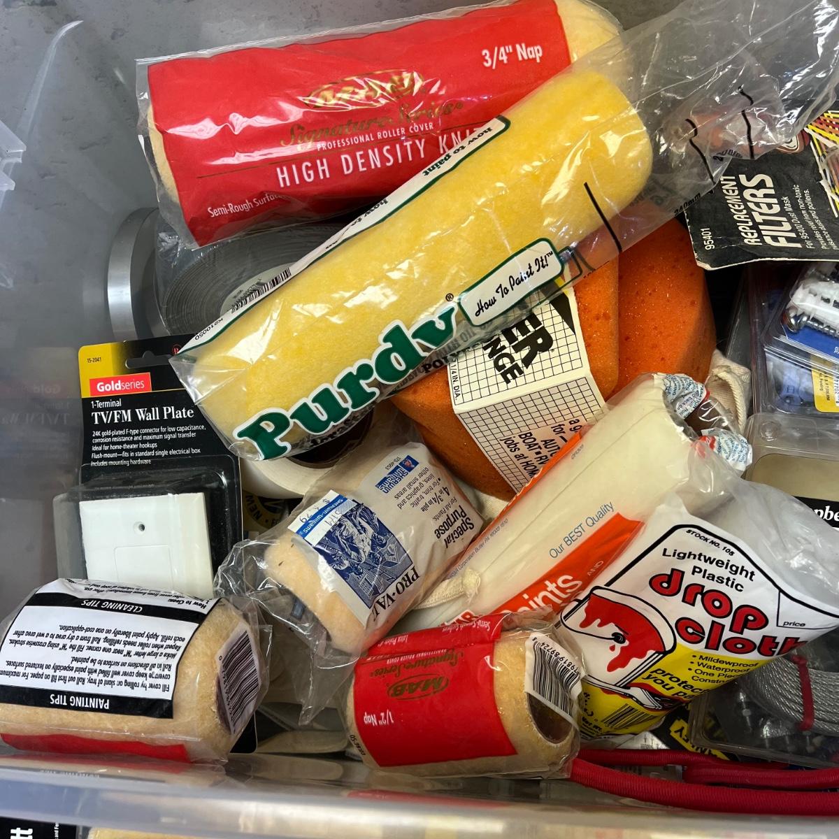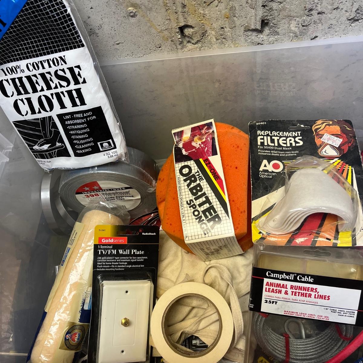 LOT 183Y: Bin of Tools and Household Necessities - Many New in Package