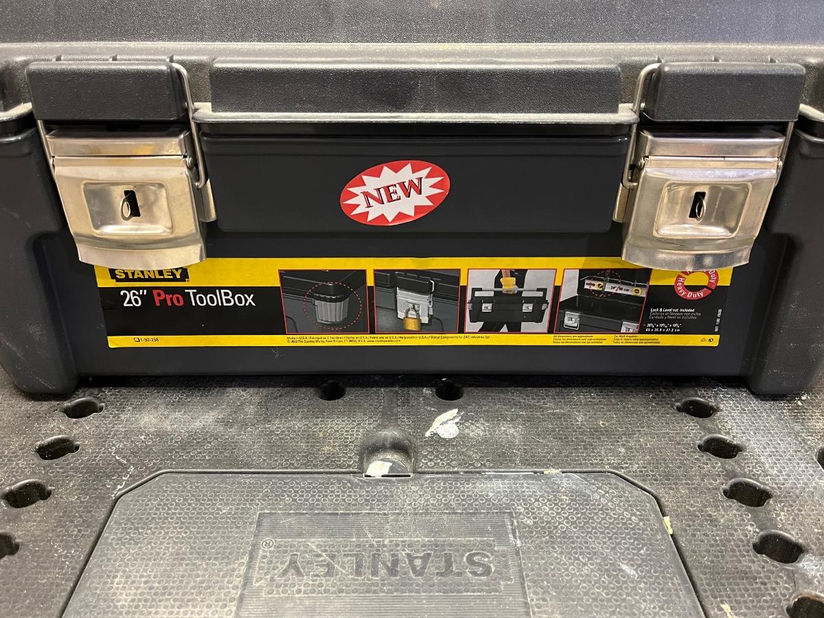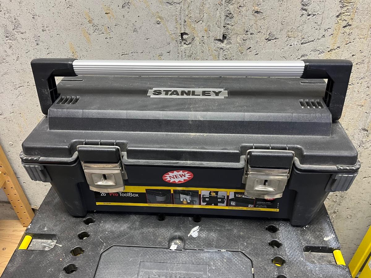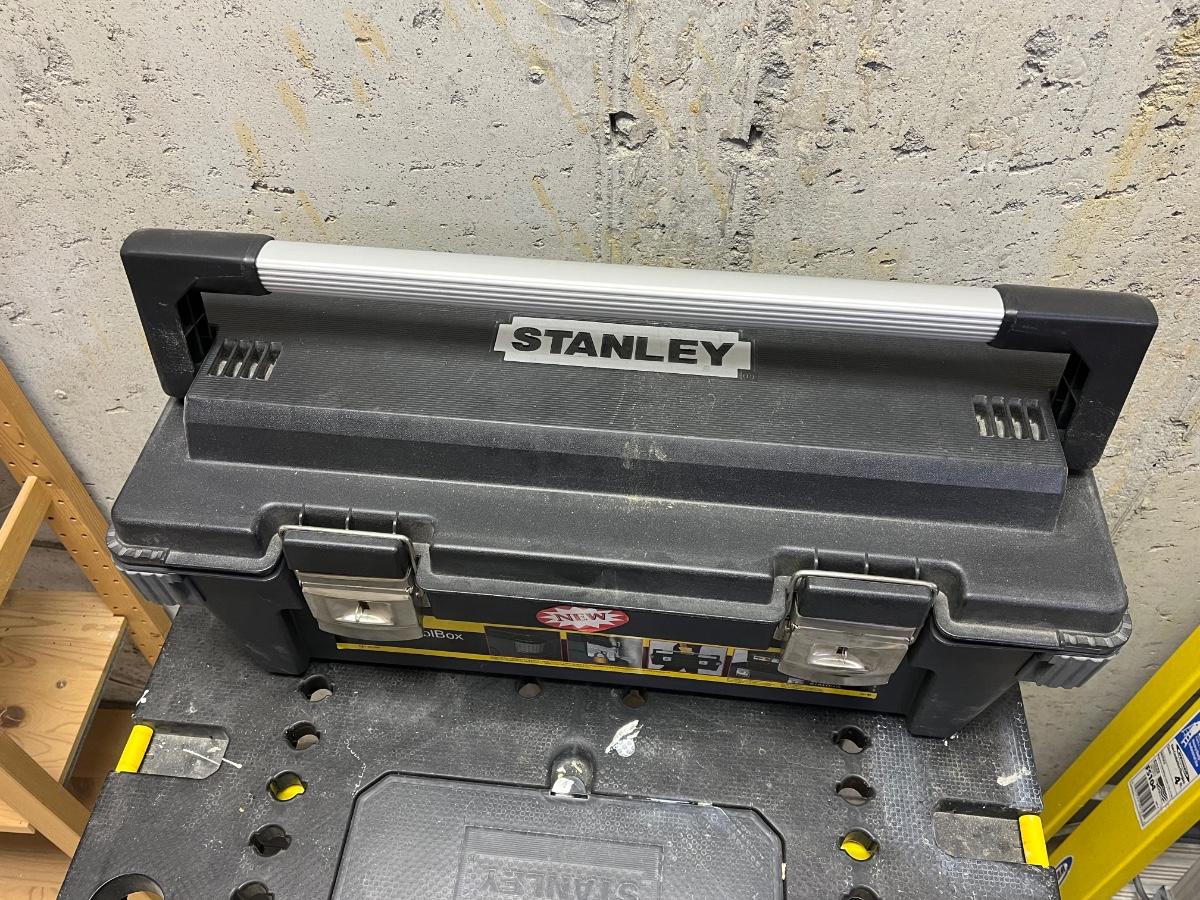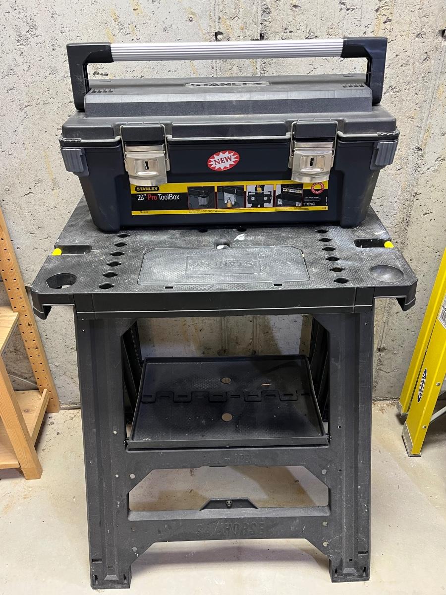 LOT 184Y: Stanley Tool Box with Tools and Portable Tool Bench