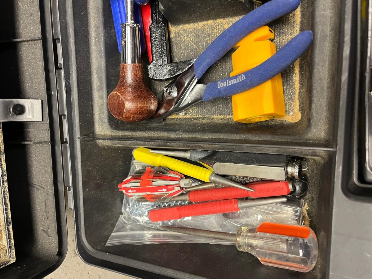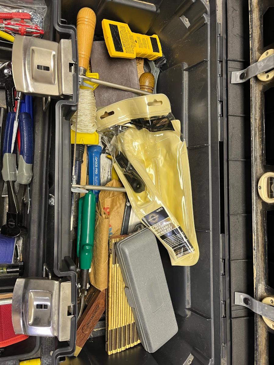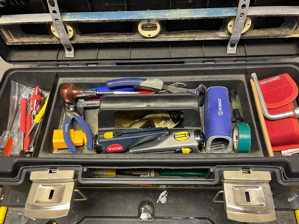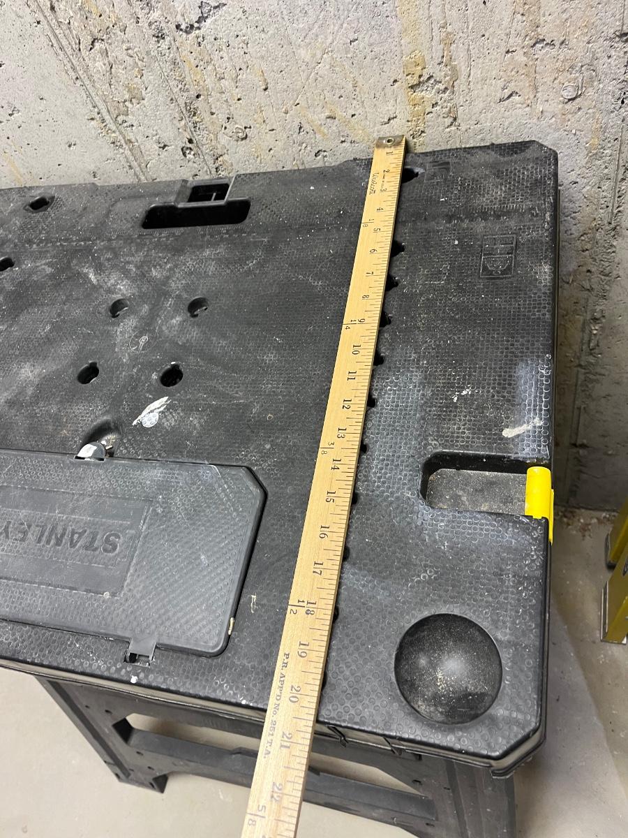 LOT 184Y: Stanley Tool Box with Tools and Portable Tool Bench