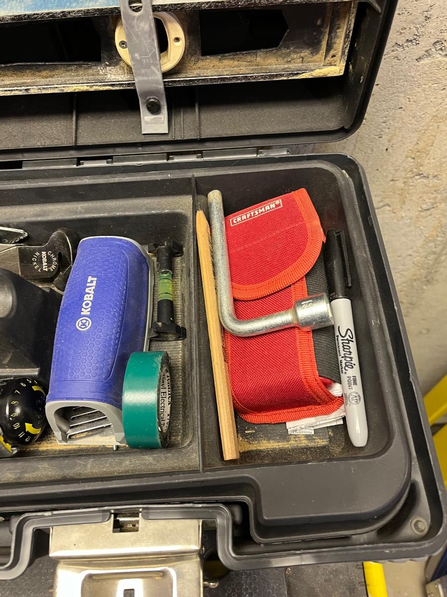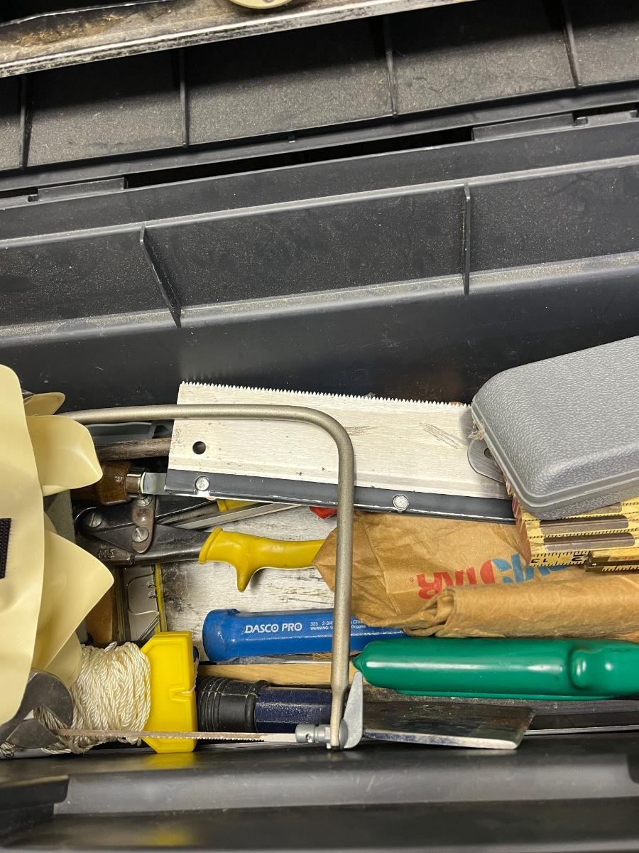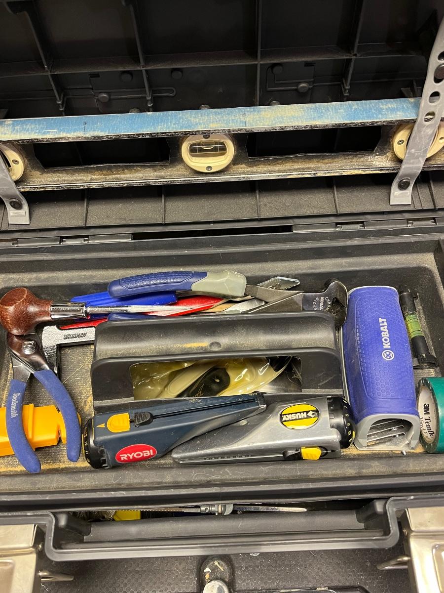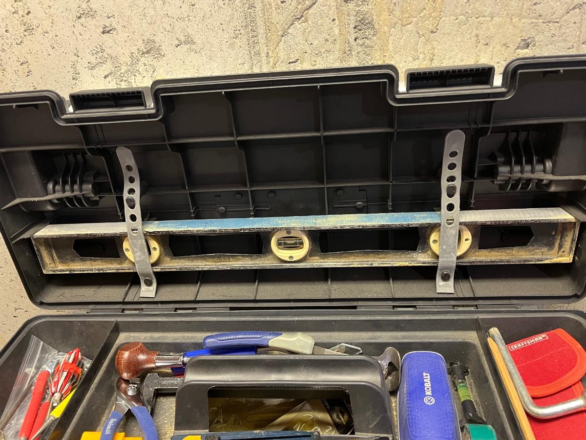 LOT 184Y: Stanley Tool Box with Tools and Portable Tool Bench