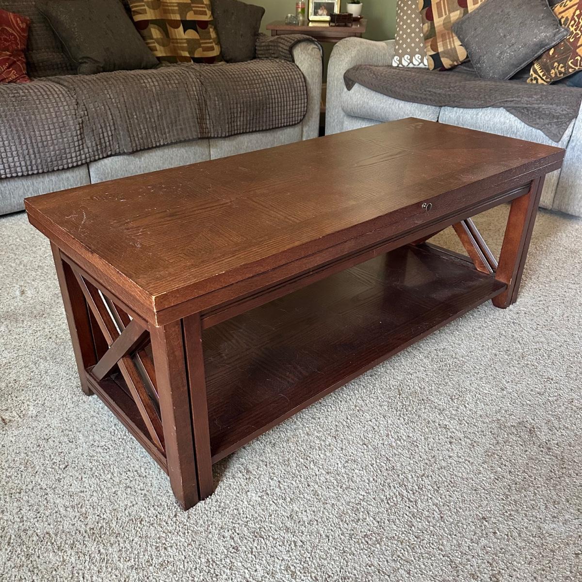 LOT 202L: Matching Set - Fold Out Top Coffee Table + 2 End Tables