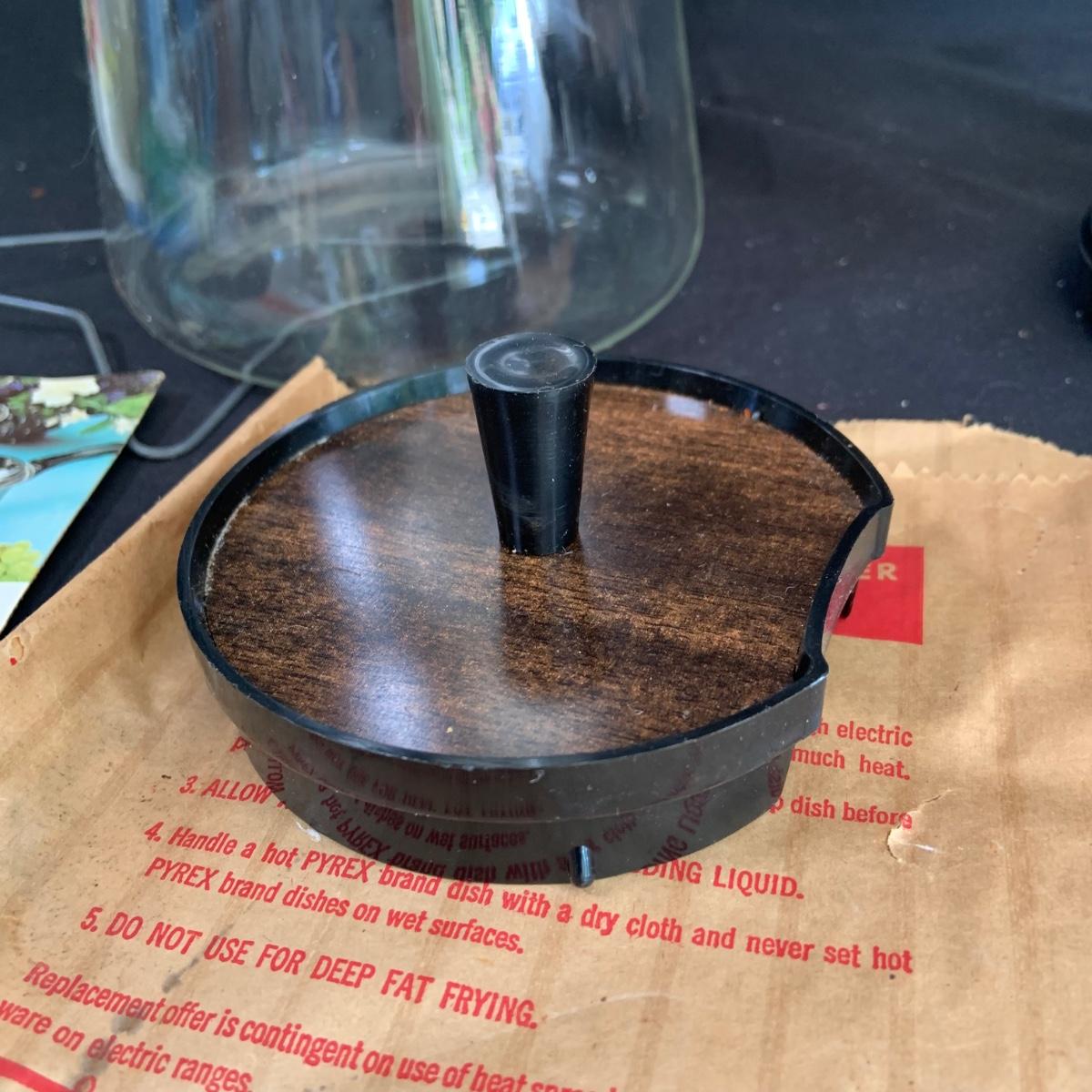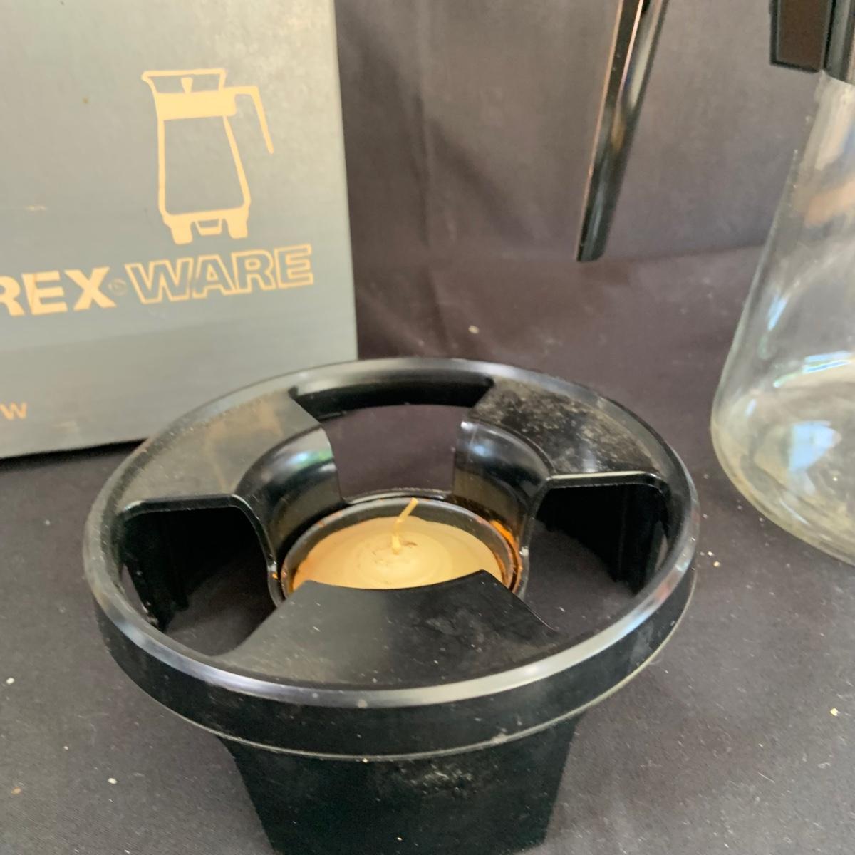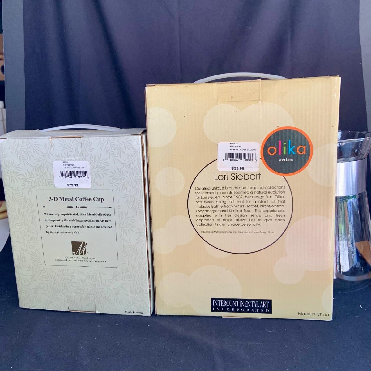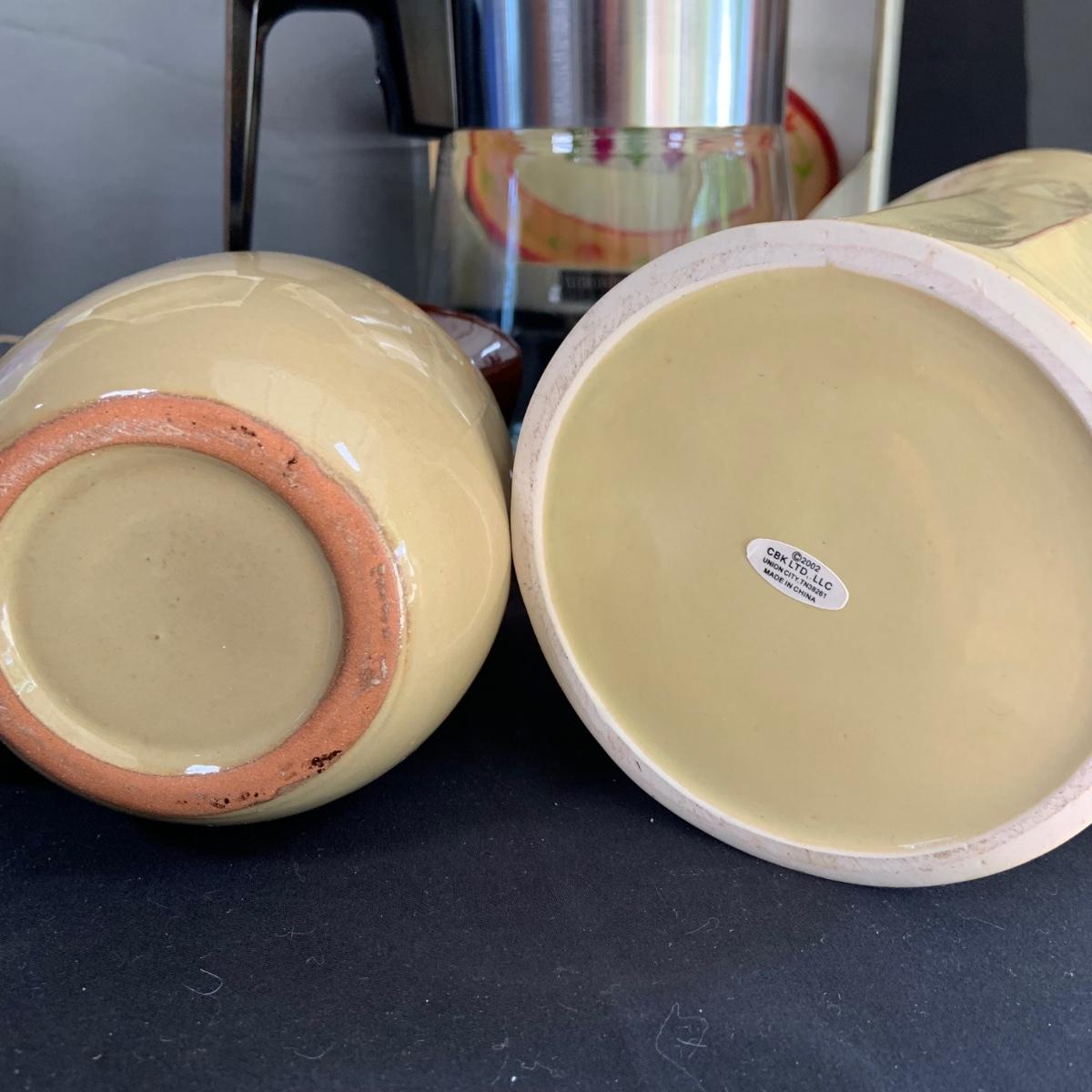 LOT:9: Have a Warm Cup Collection Featuring a Vintage Pyrex Ware Coffee Decanter, Teapot, Currier & Ives Mugs, Vintage Grinder Ceramic Canister, Wall Decor & More