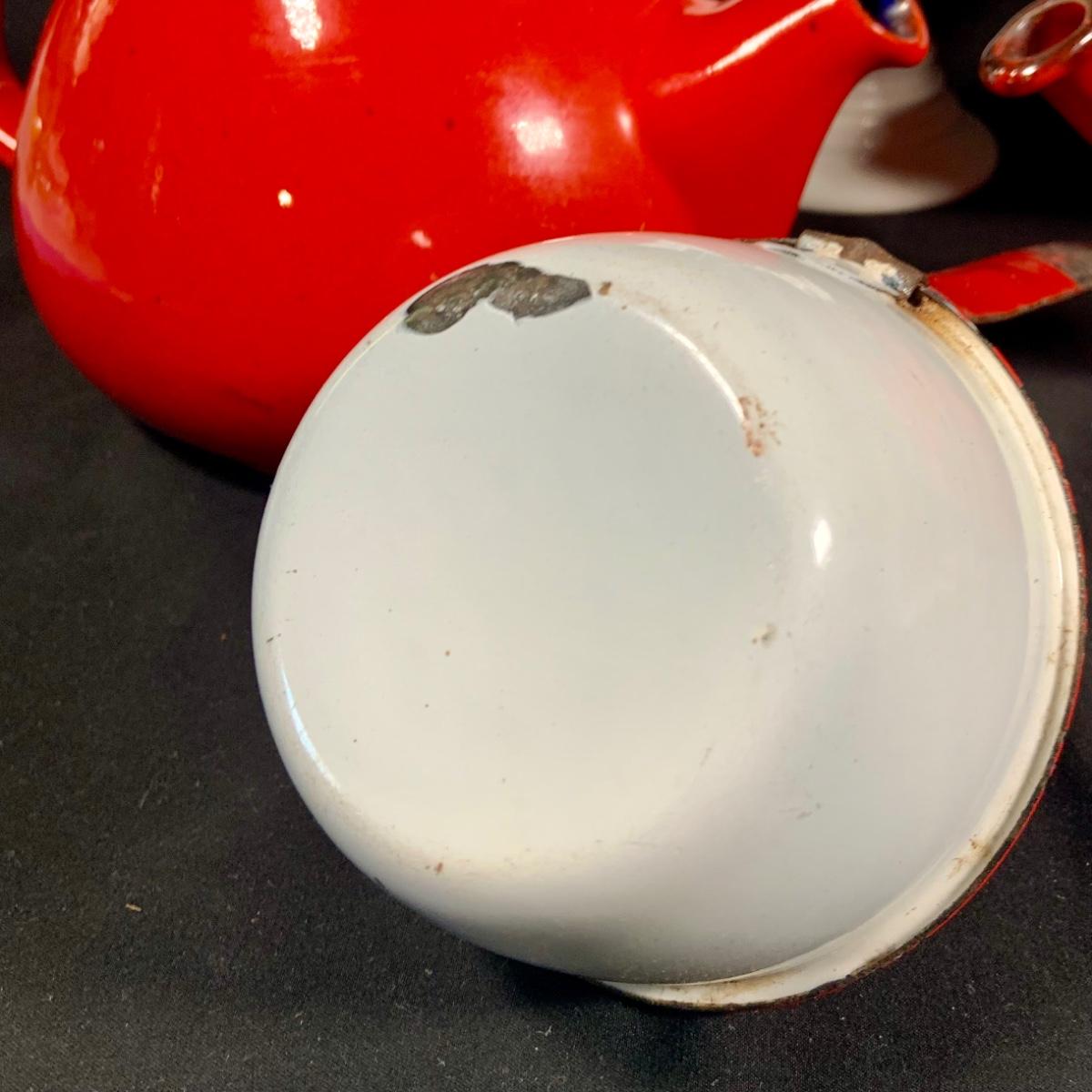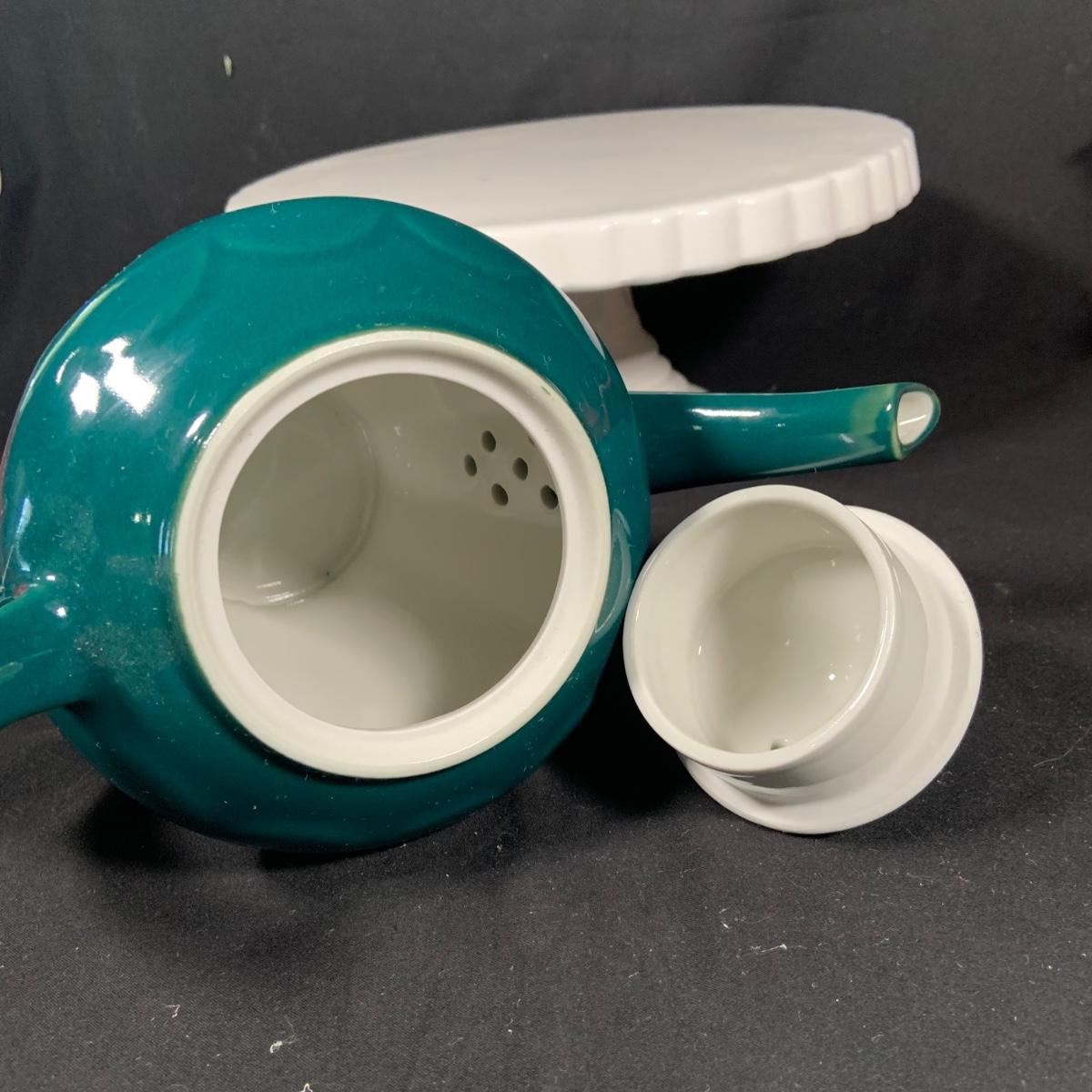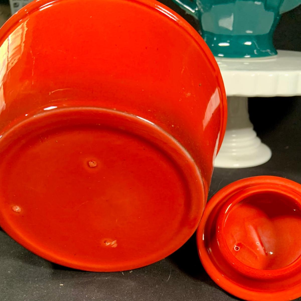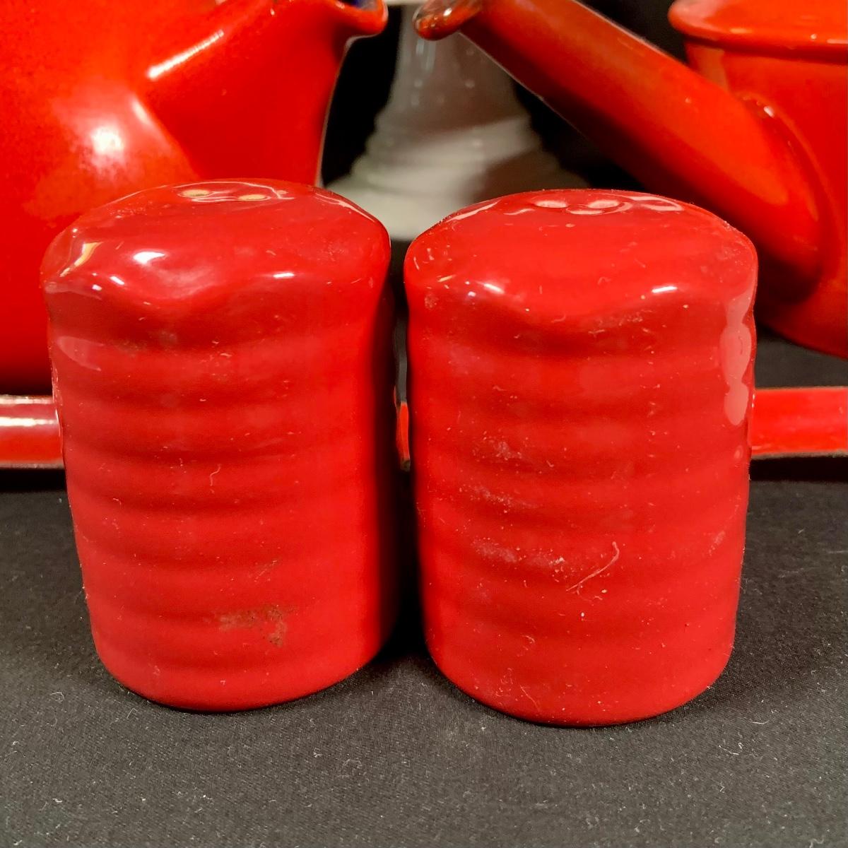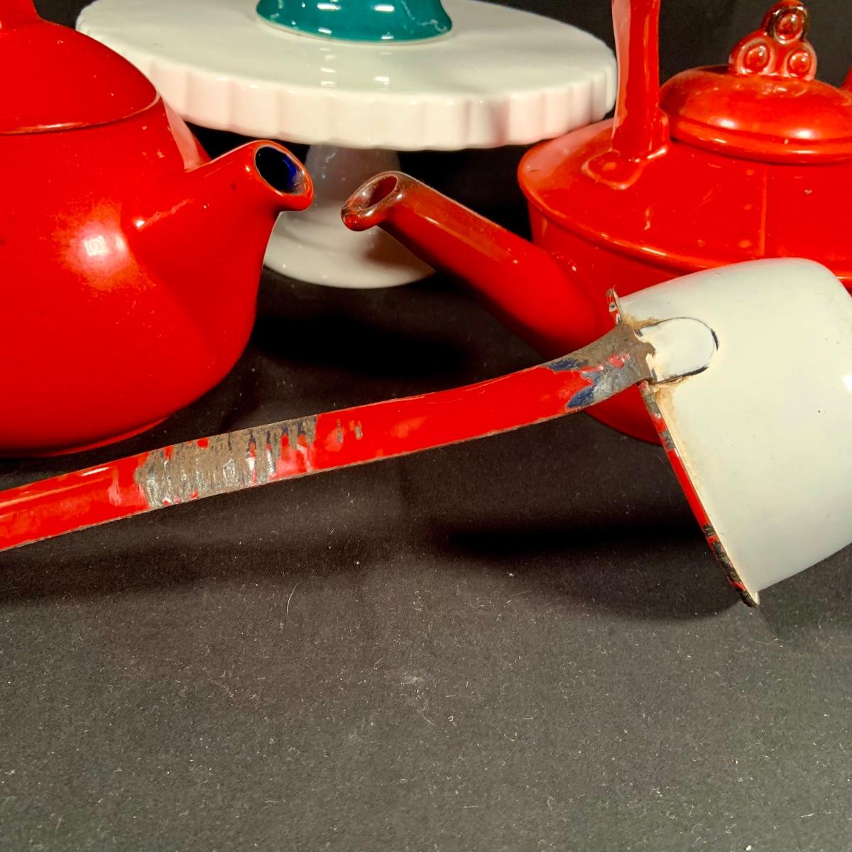 LOT:27: Vintage Teapots Featuring Hall and Others, a Metal Ladle, Salt and Pepper Shakers and Cake Plate