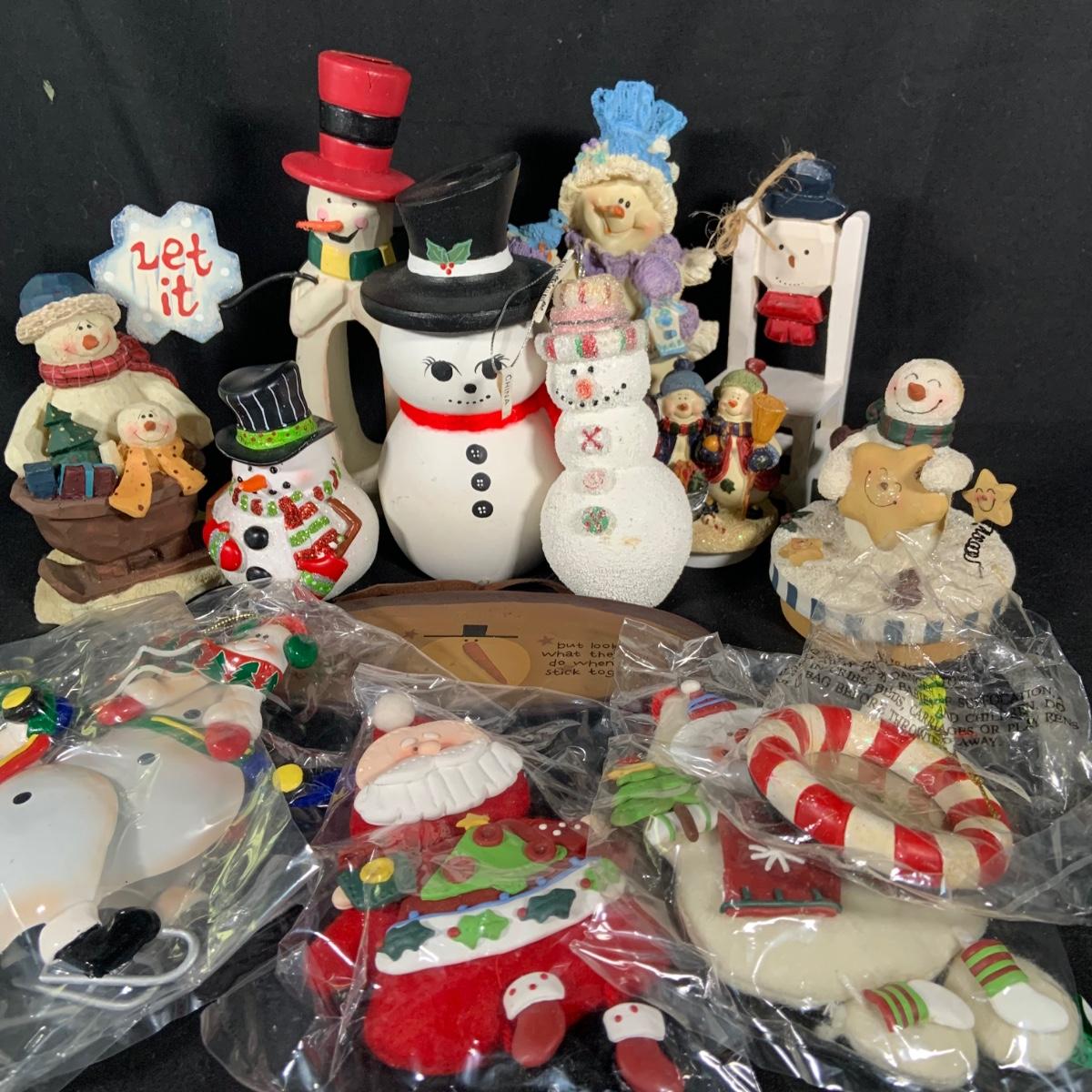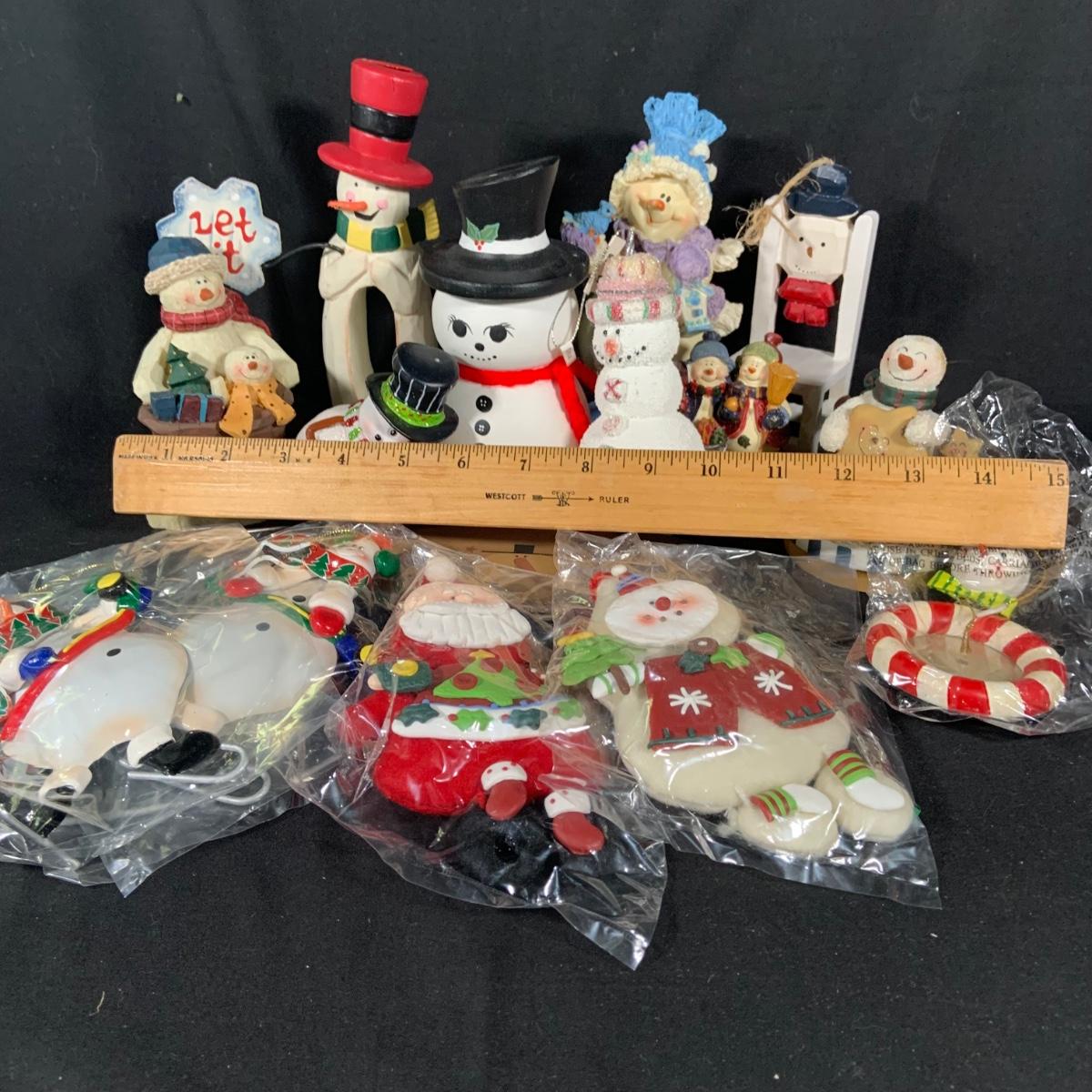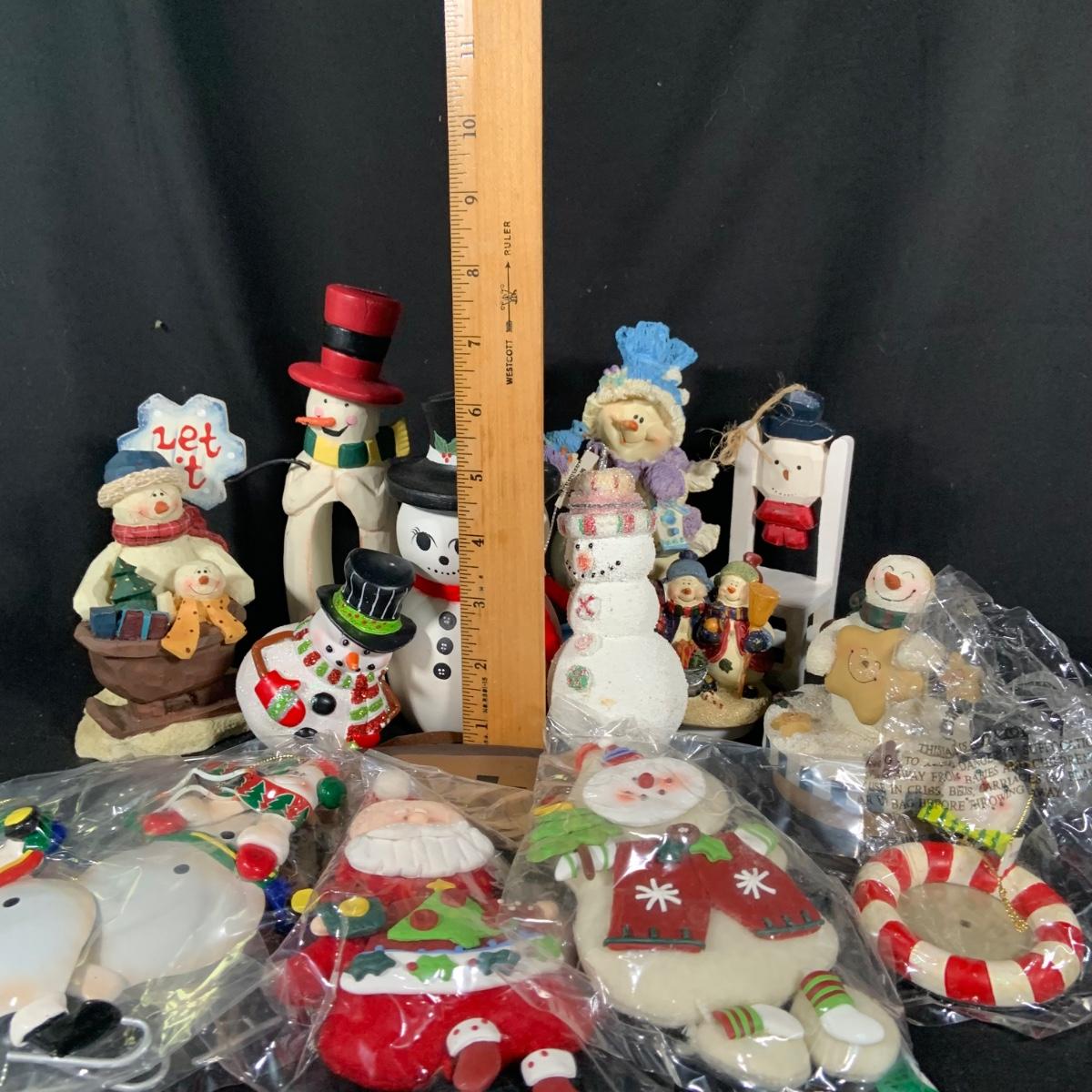LOT:29: Snowman Seasonal Decor Including Candle Toppers and More