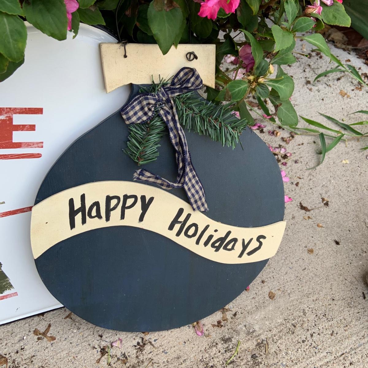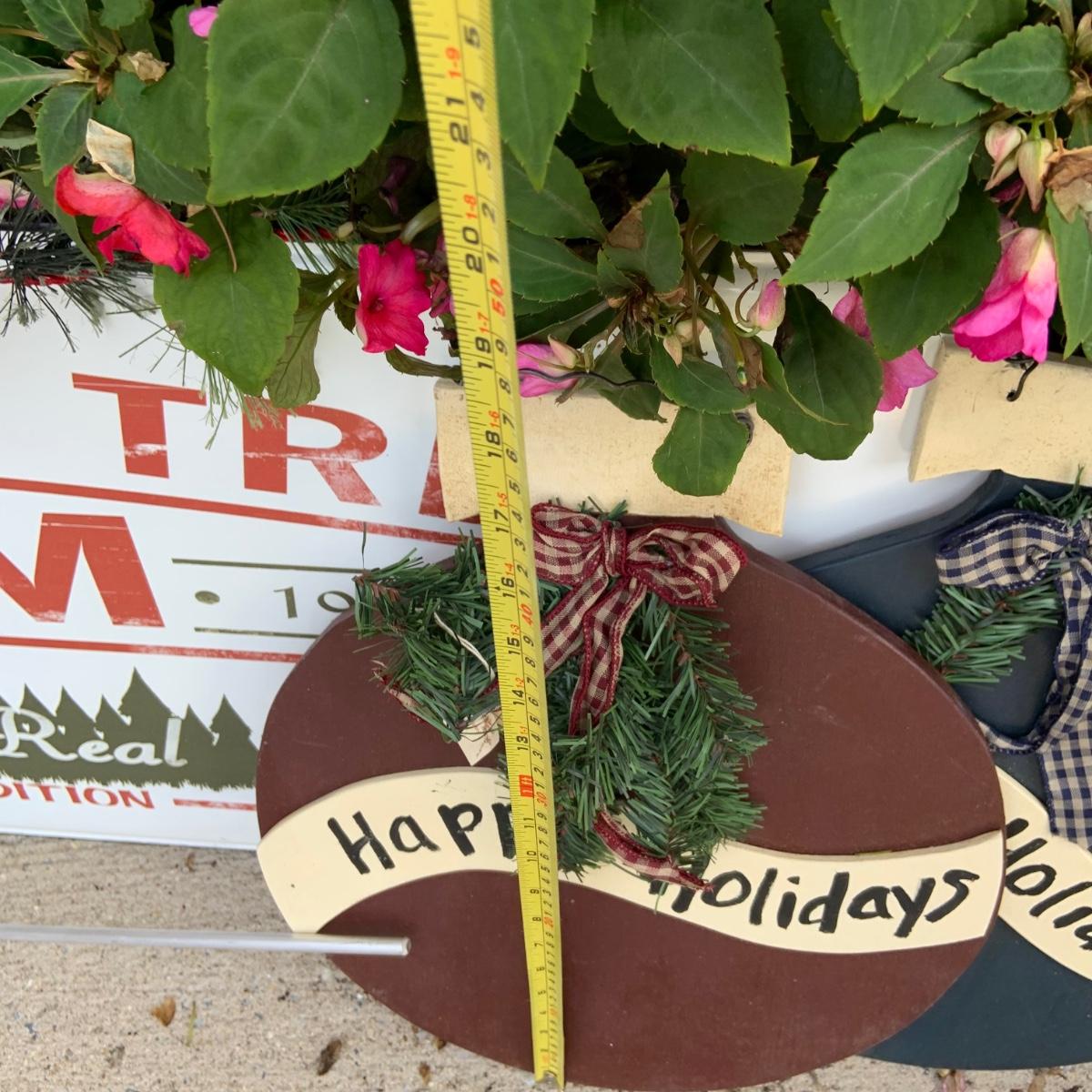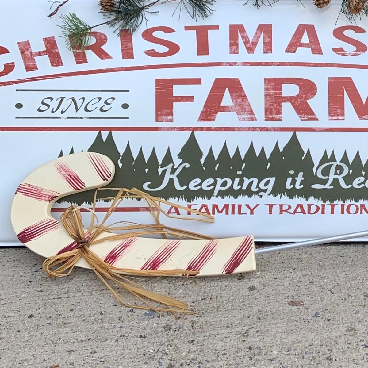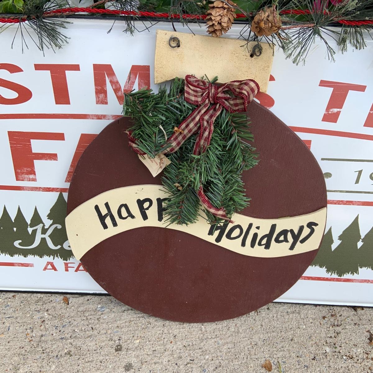 LOT:36: Large Christmas Tree Farm Metal Sign and Large Wood Holiday Decorations