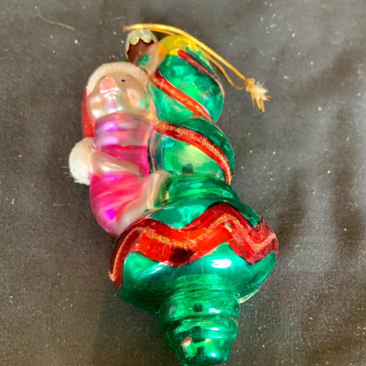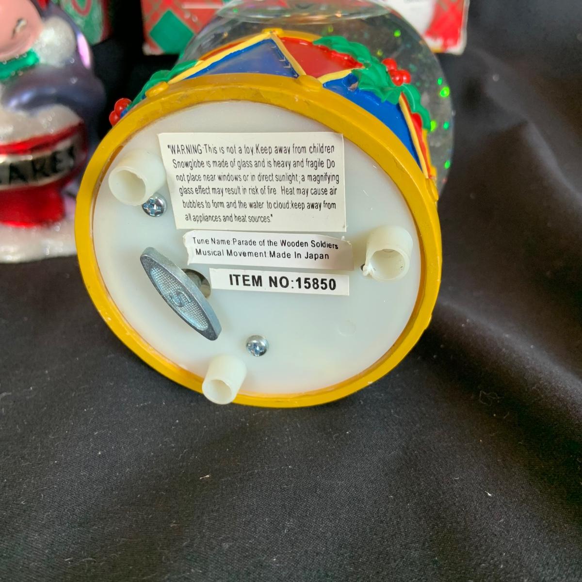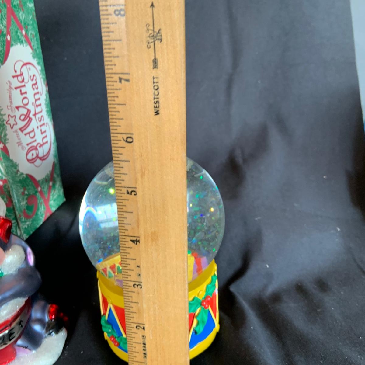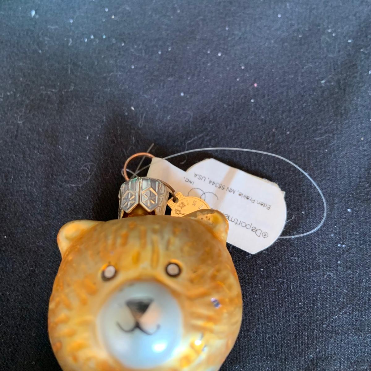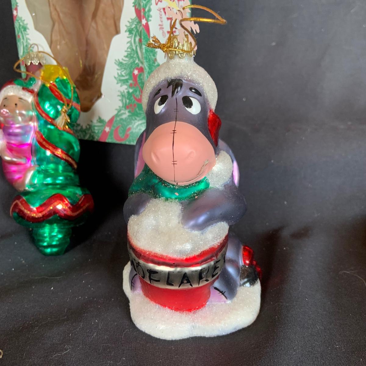 LOT:57: Disney Glass Ornaments, Mickey Mouse Holiday Snow Globe and Dept 56 Glass Bear Head