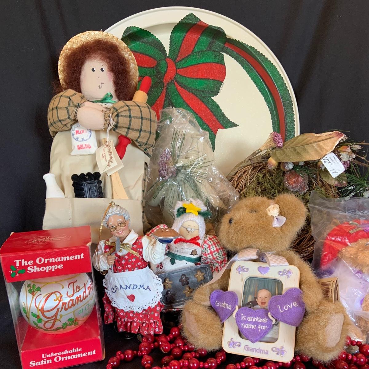 LOT:59: Grandma's Lot- a Collection of Ornaments, Dolls, Bears to Show How Much You Love Grandma