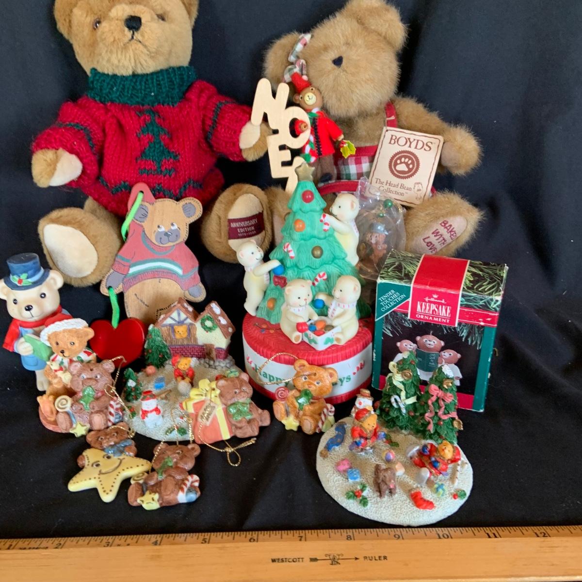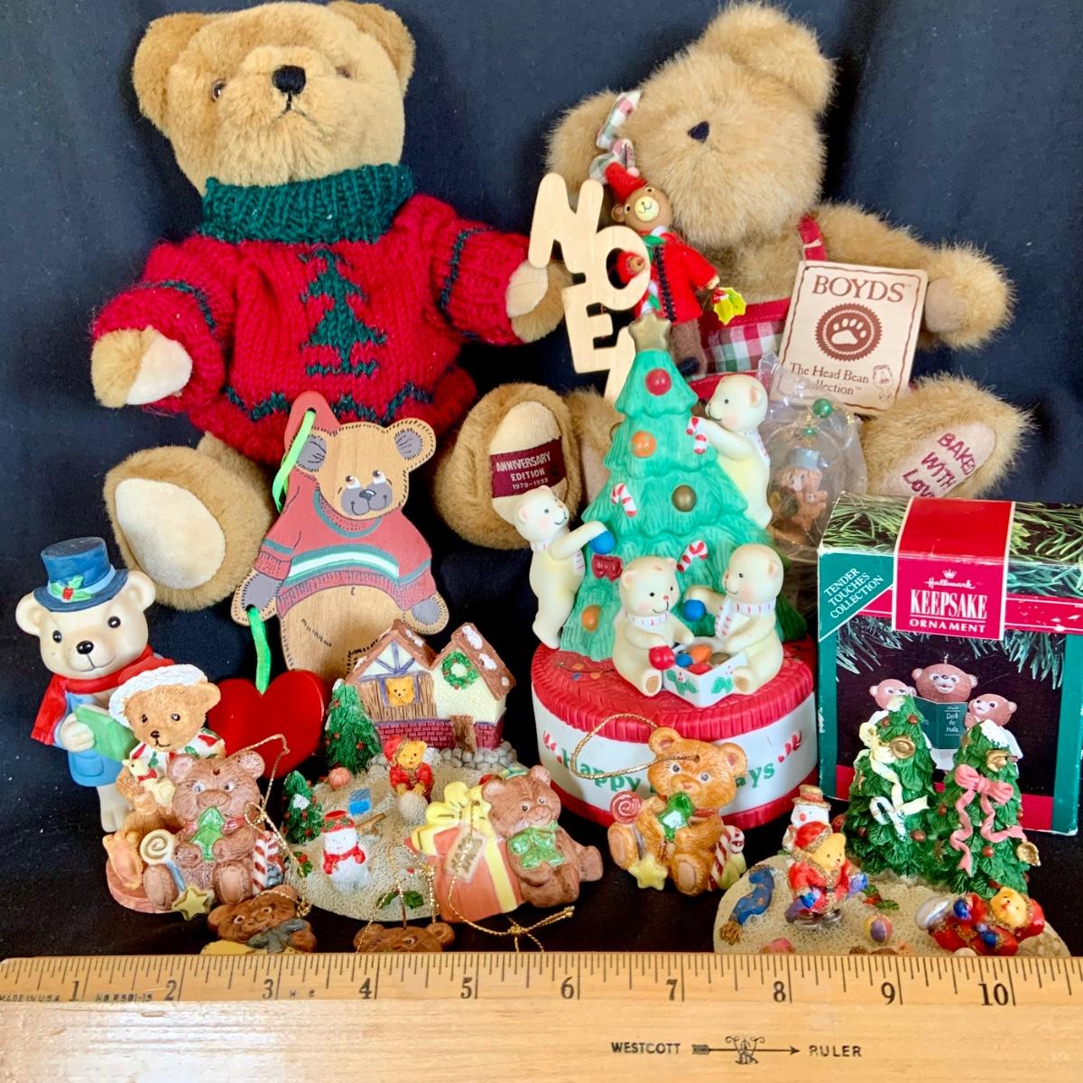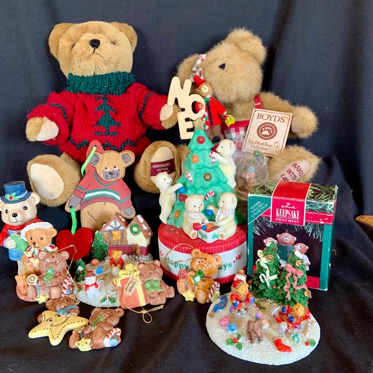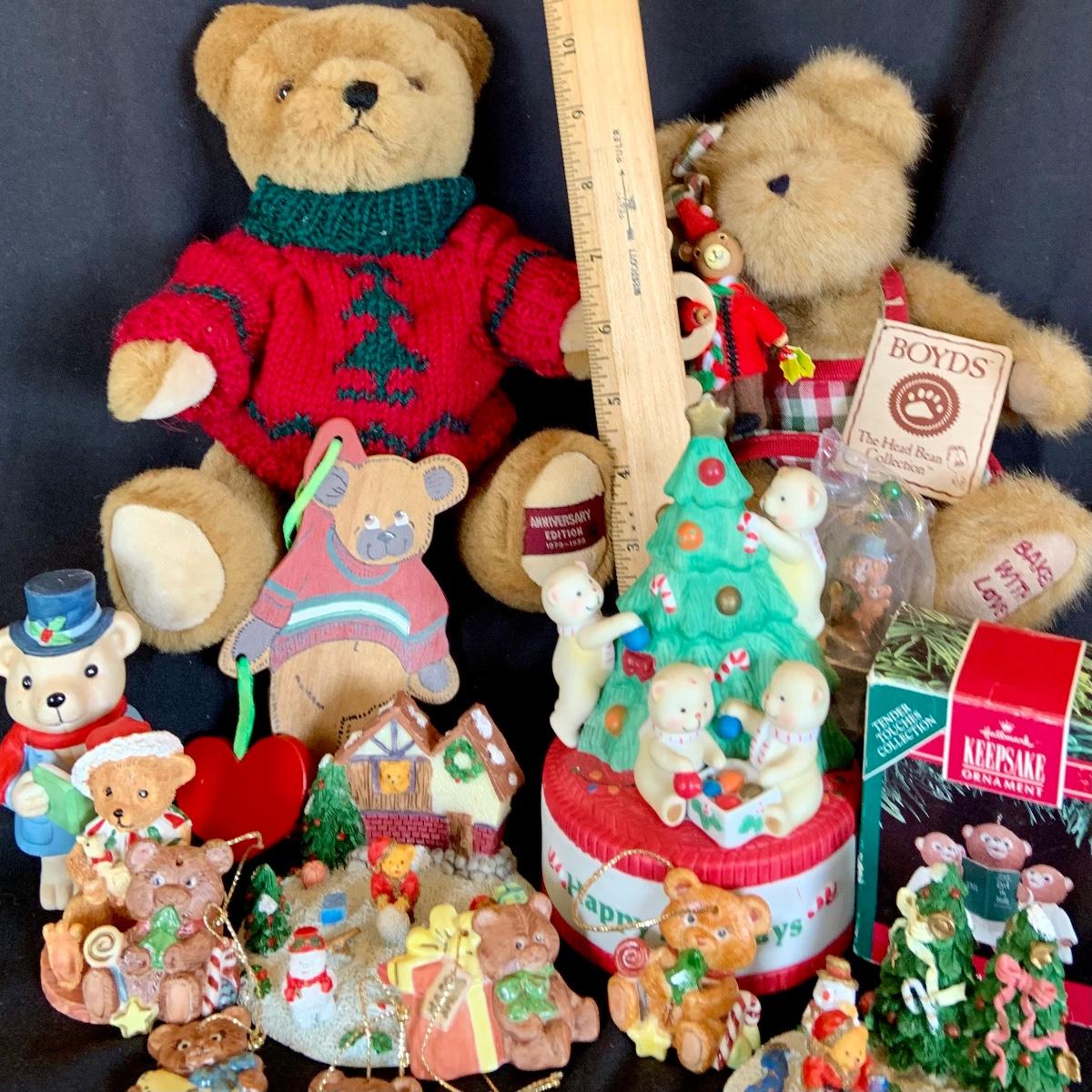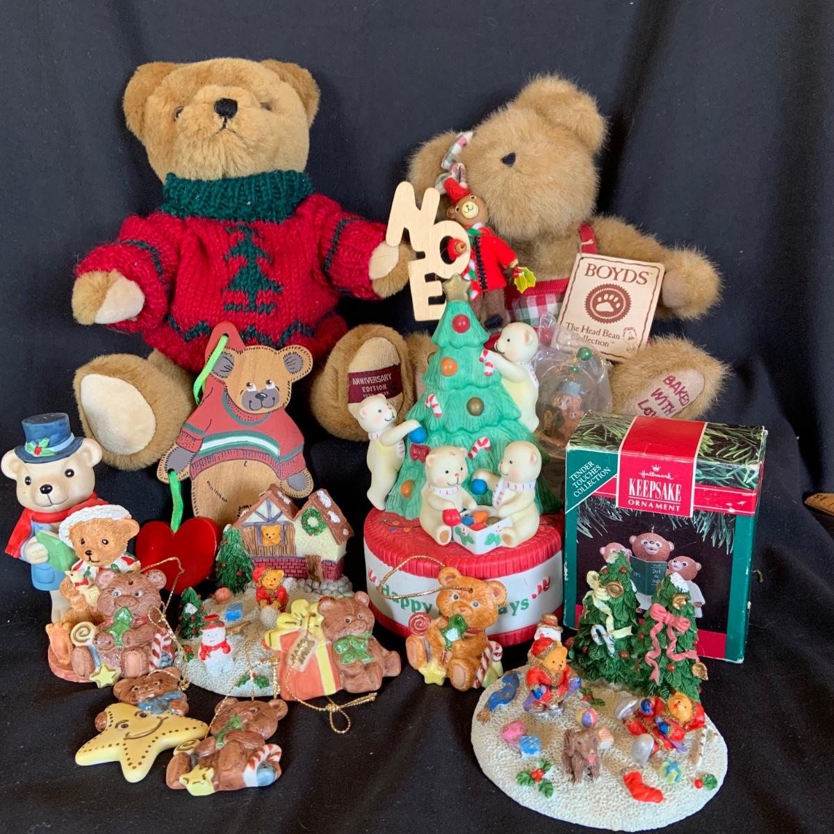 LOT:61: Can Bearly Wait - Collection of Christmas Bears-Boyds Plushes, Ornaments Figurines and More
