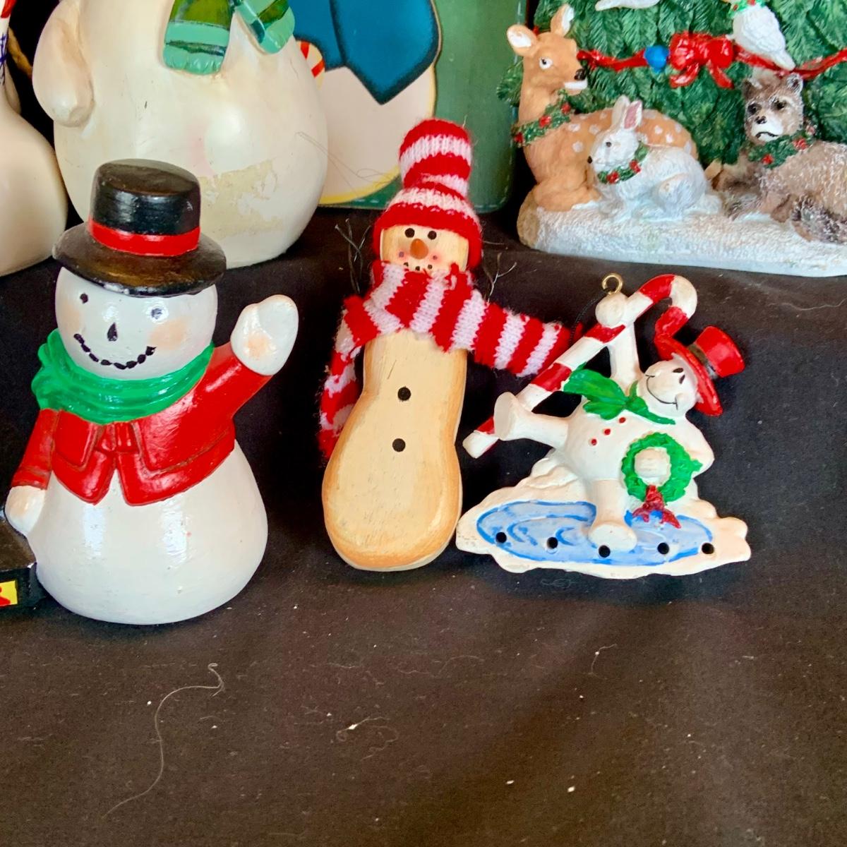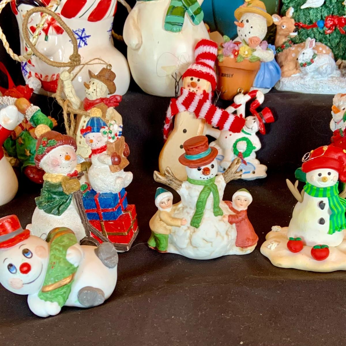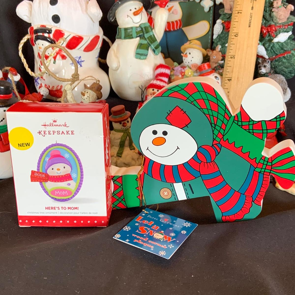 LOT:65: Seasonal Holiday Snowmen Decorations, Ornaments from Hallmark and Dept 56 and More