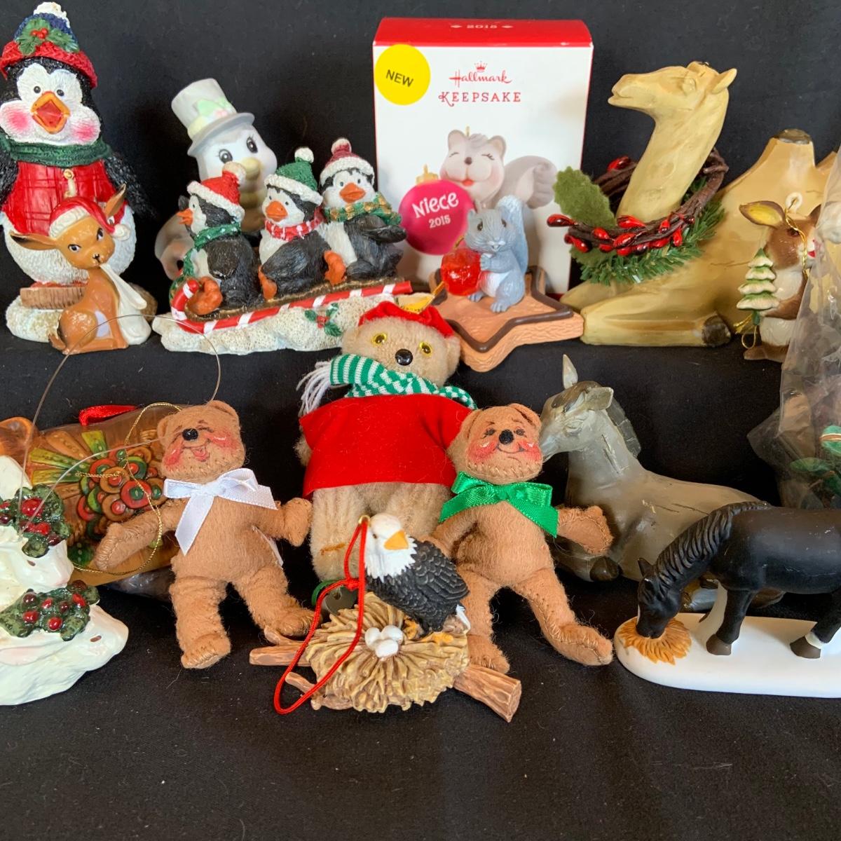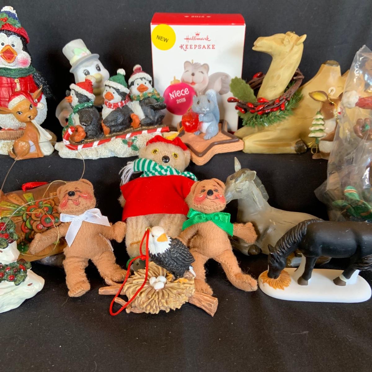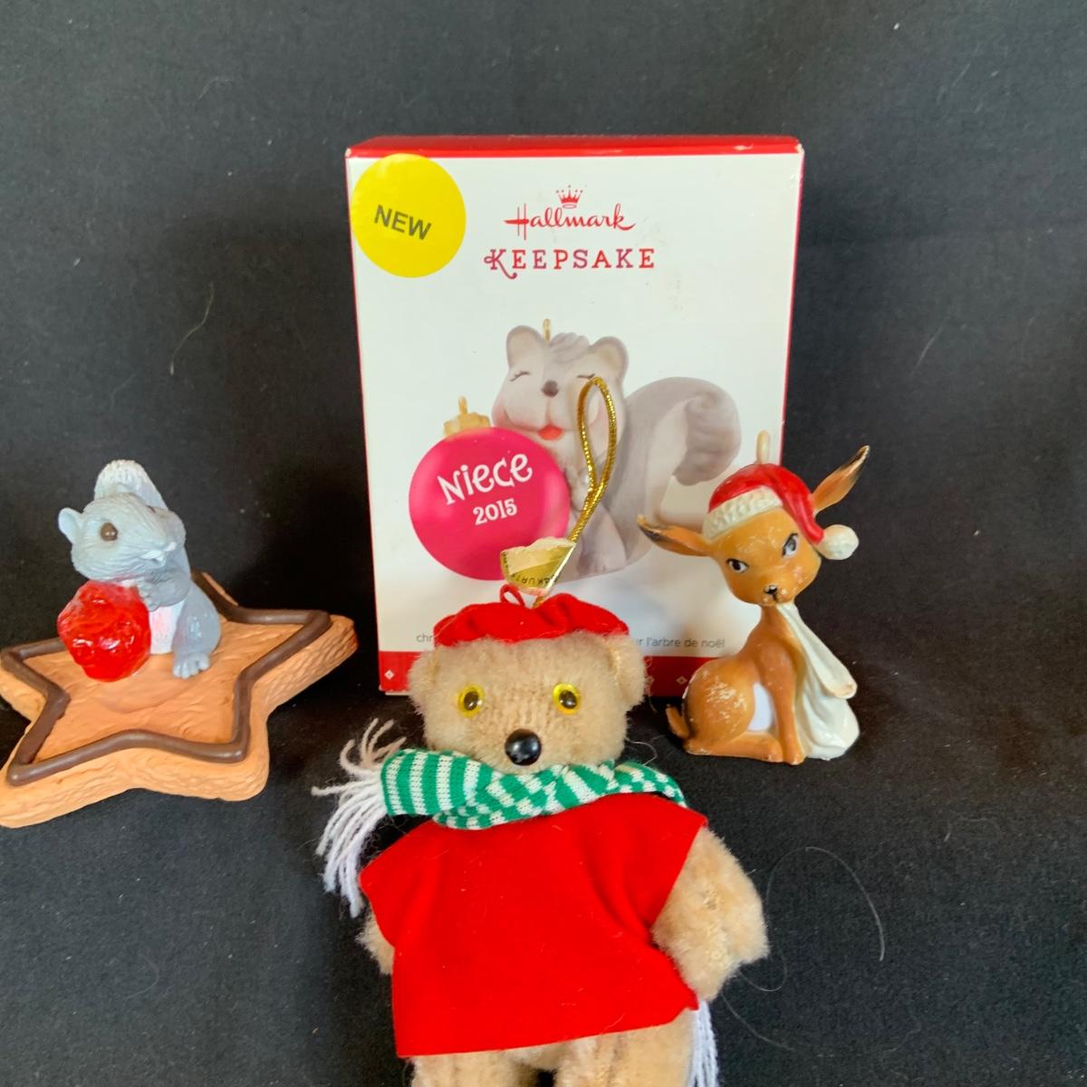 LOT:68: Christmas Decorations Featurine 2 Annalee Mini Bears, Halmark Ornament and More