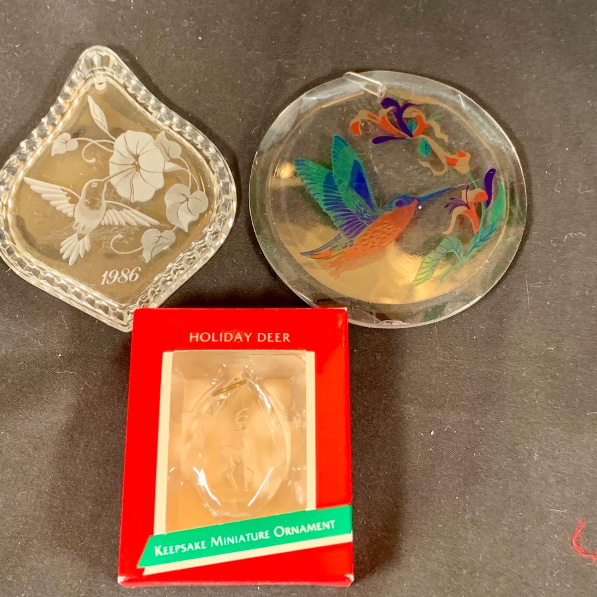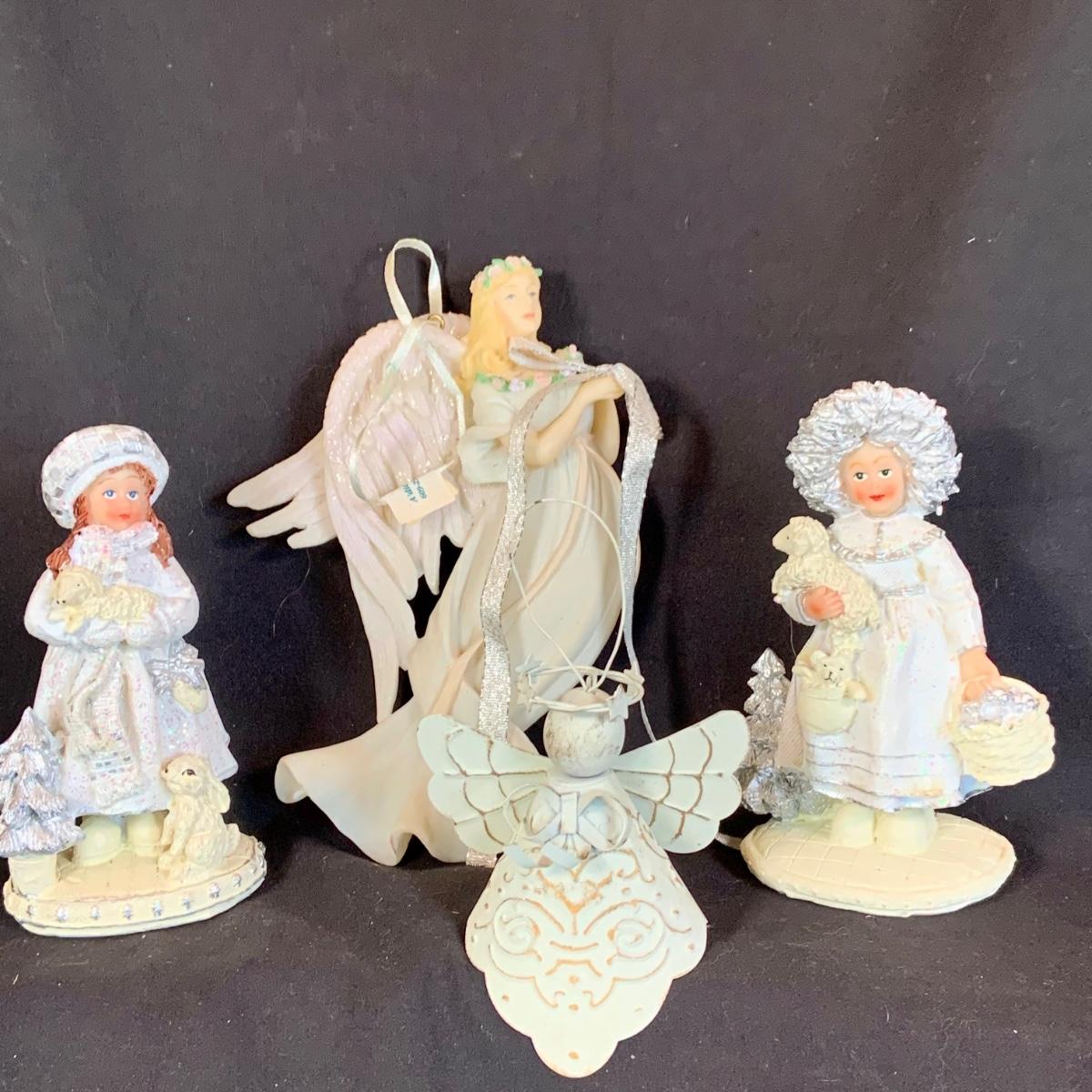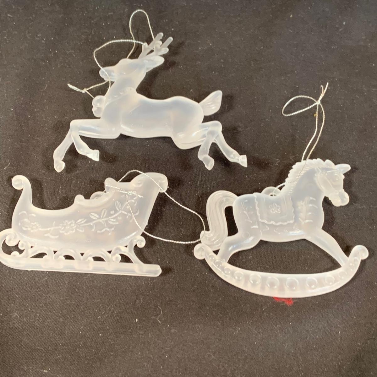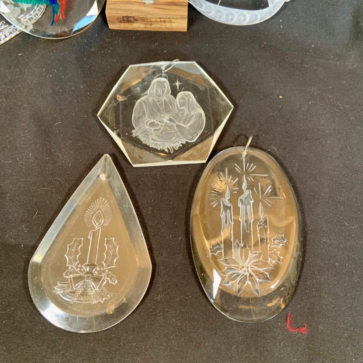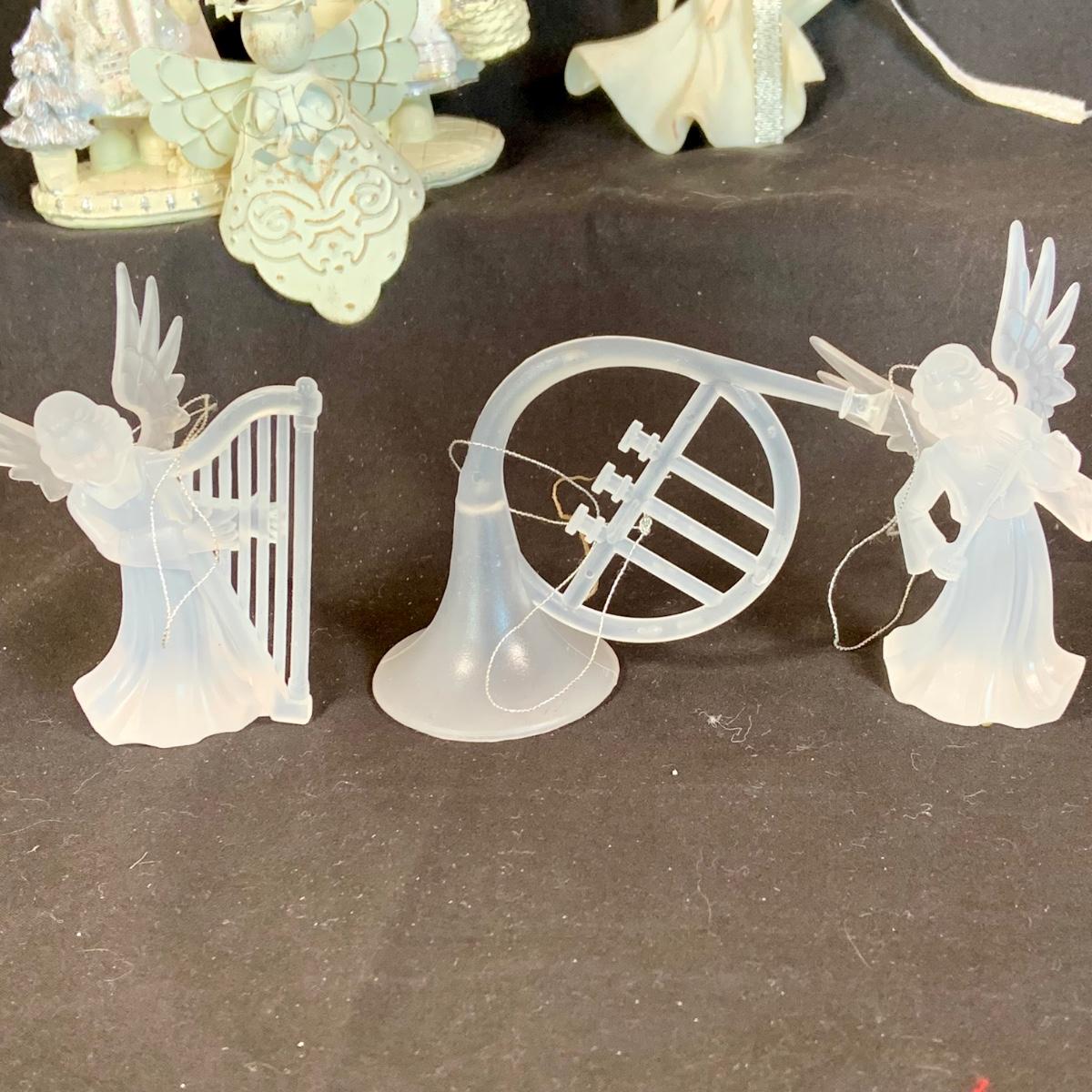 LOT:69: Acrylic Etched Ornaments, Plastic Frosted, Painted Glass Ornaments, Angel Figurines and More
