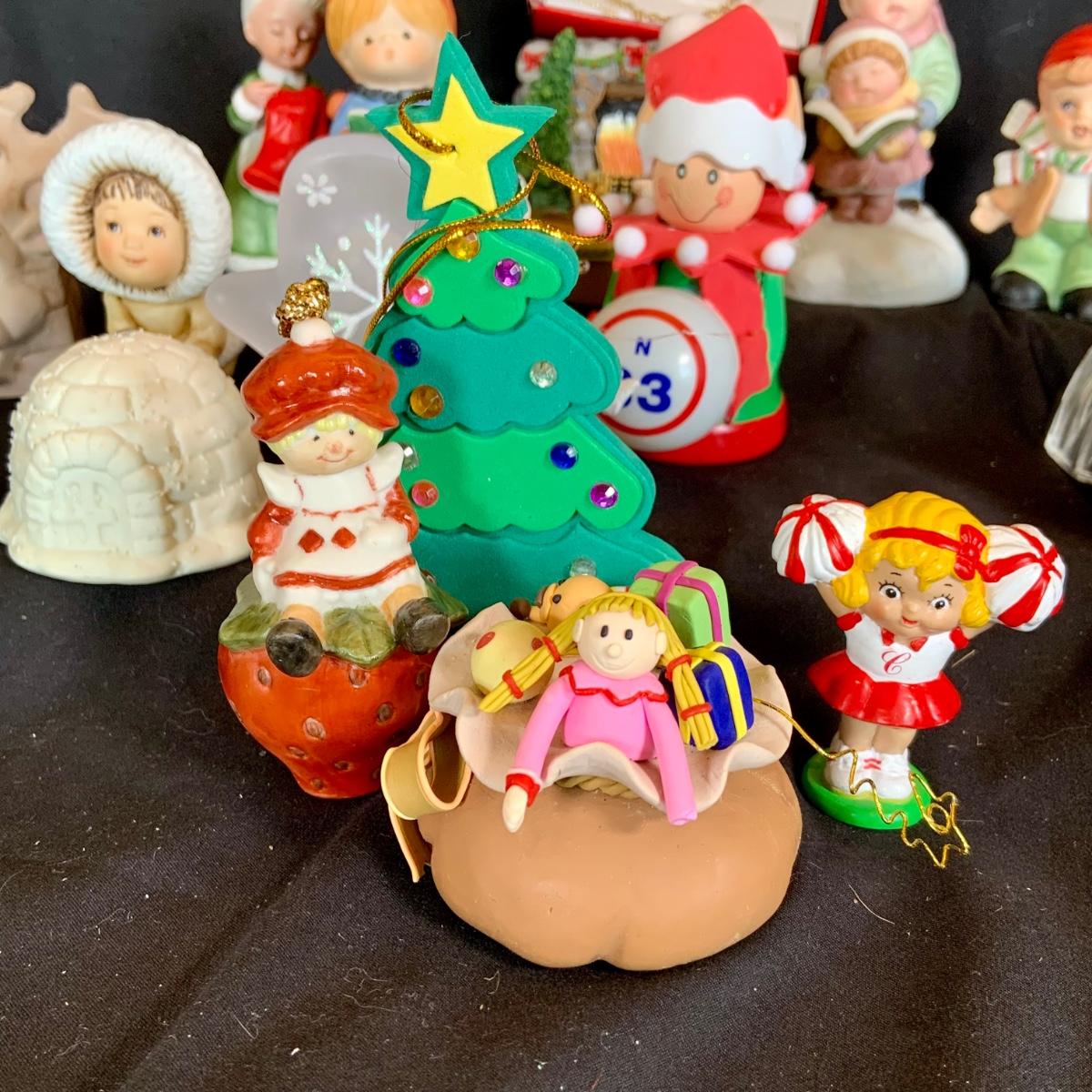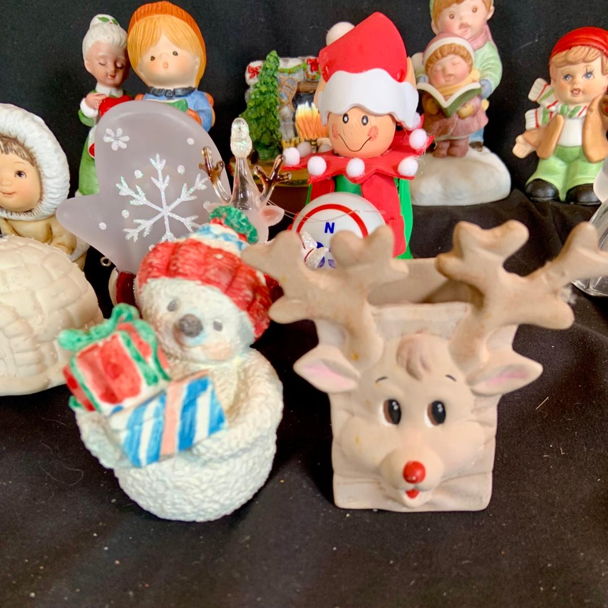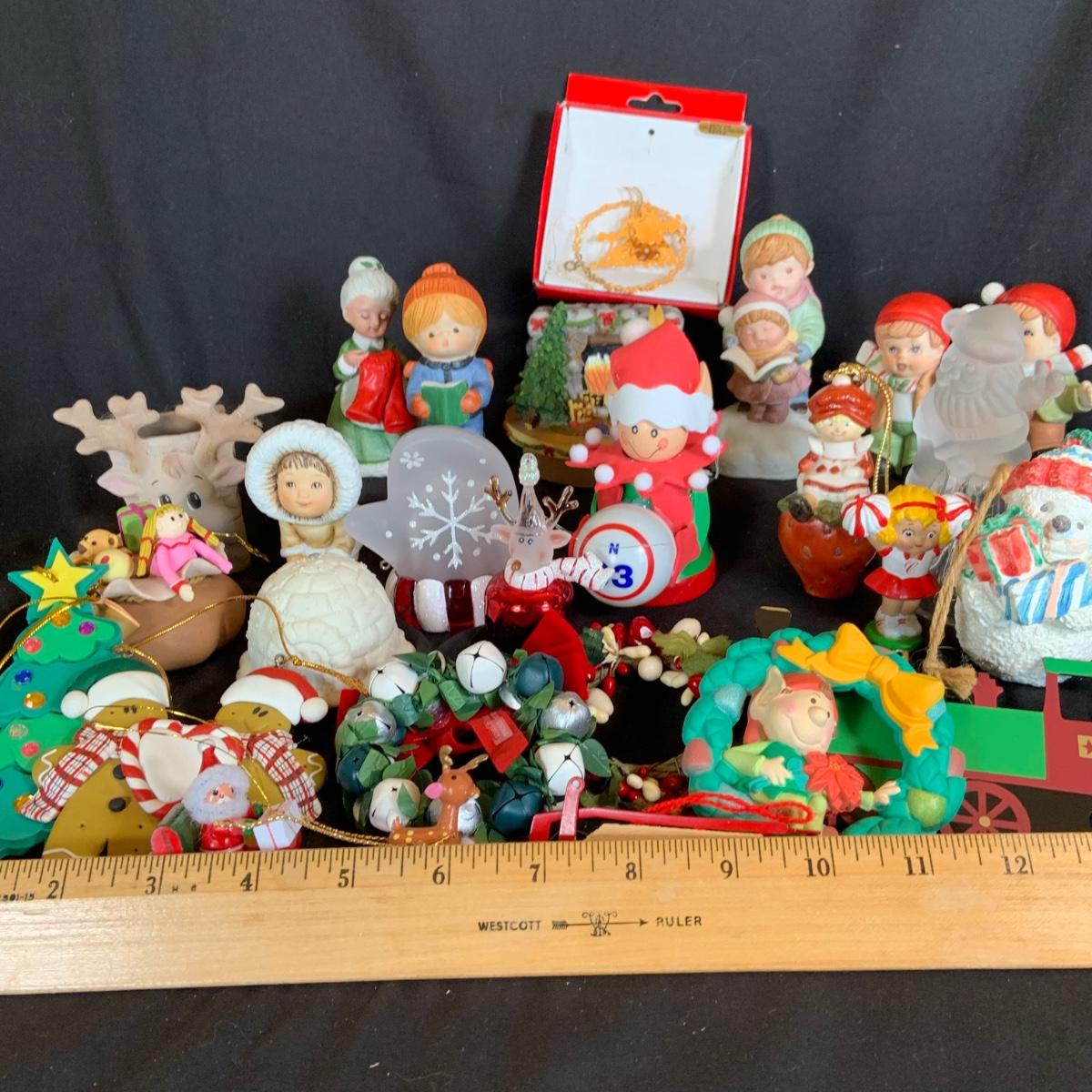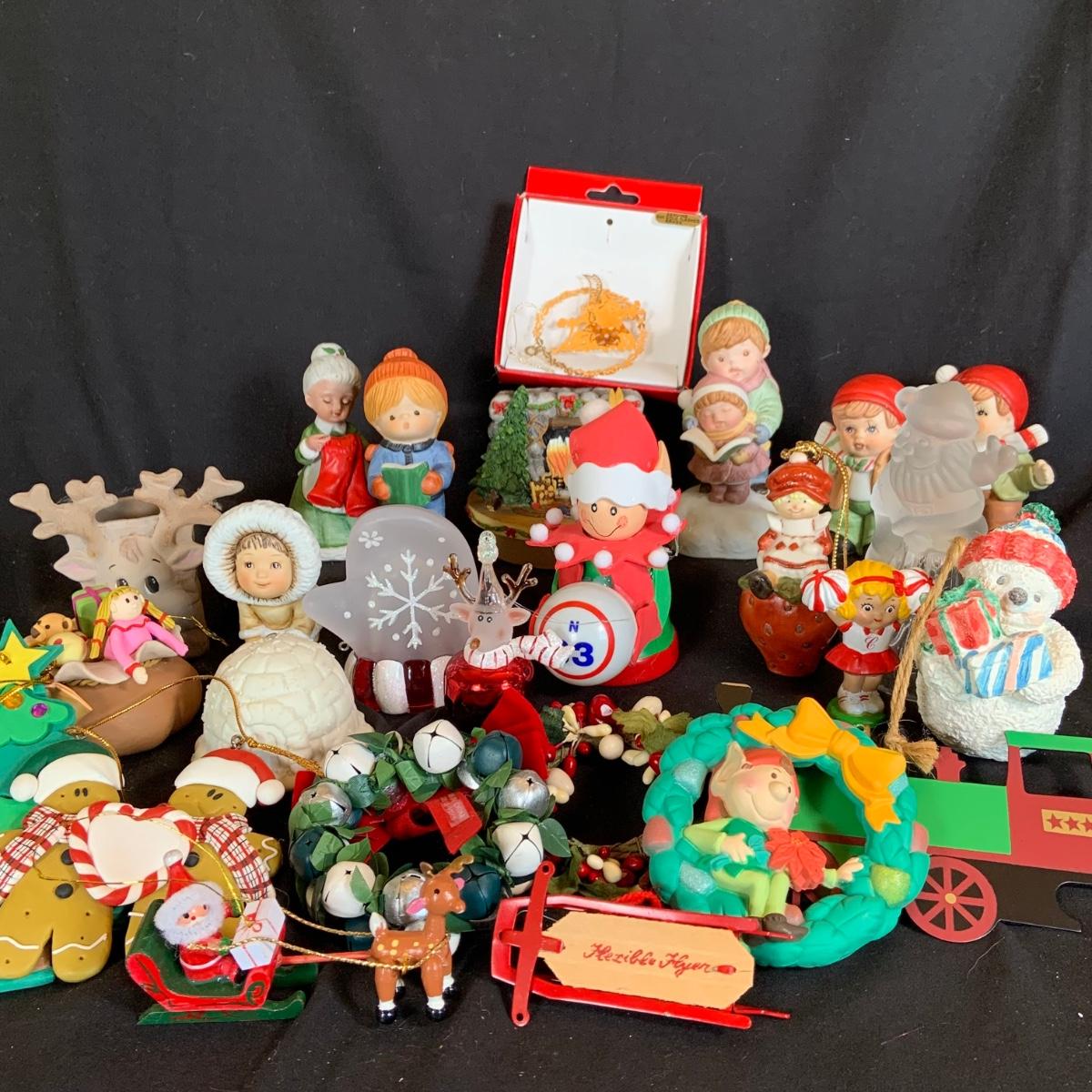 LOT:90: Vintage Holiday Ornaments, Music Box, Candle Topper and More Festive Decor