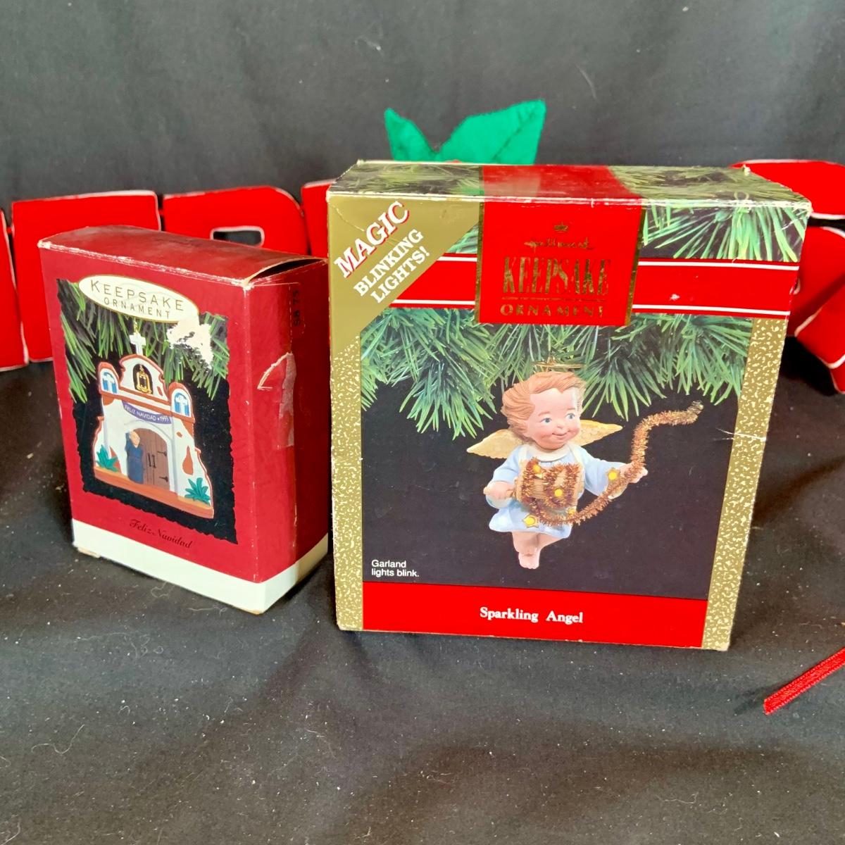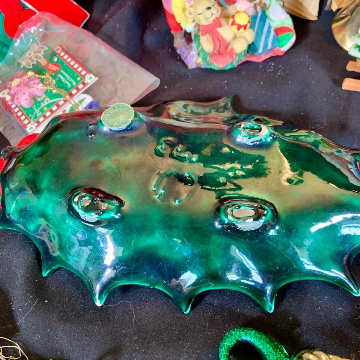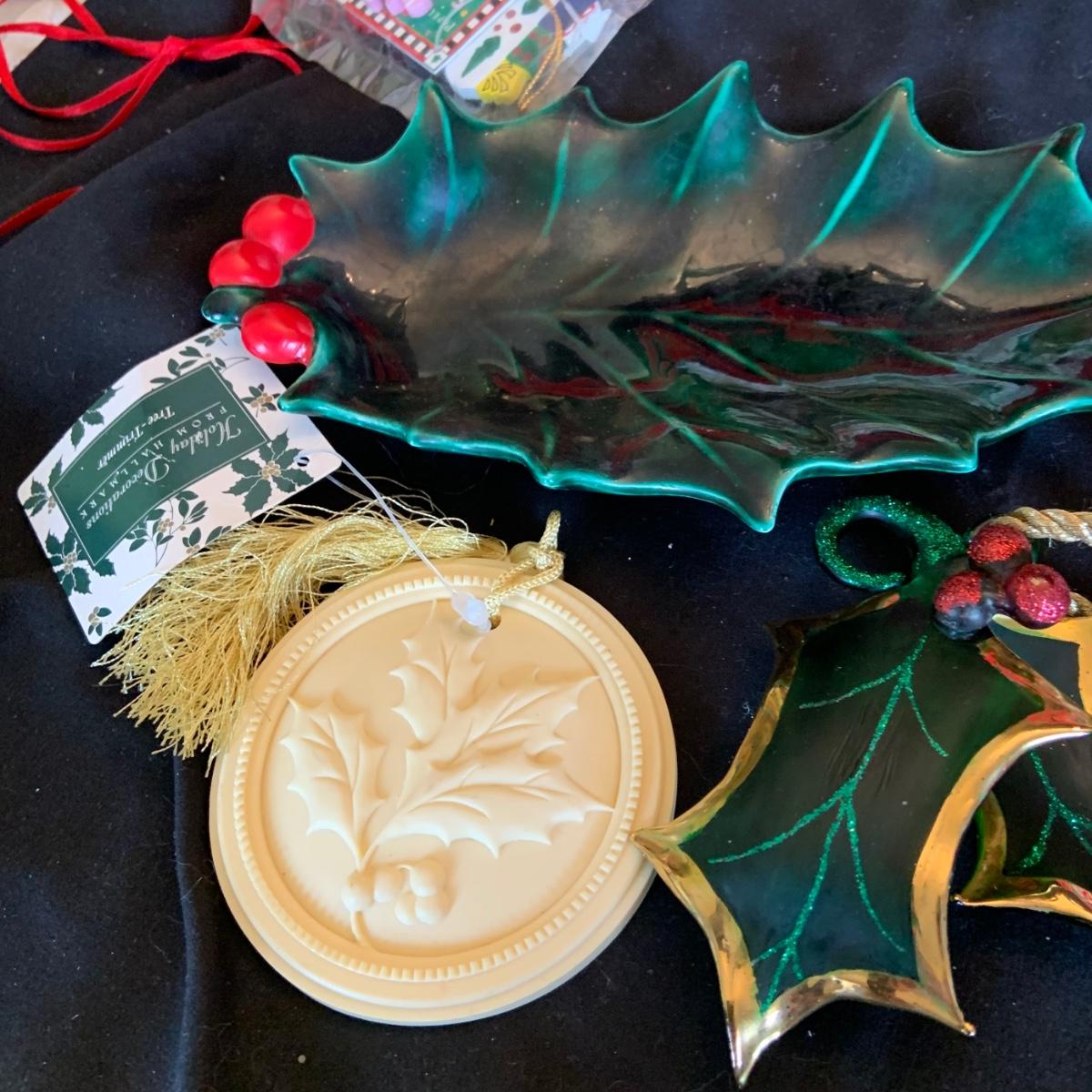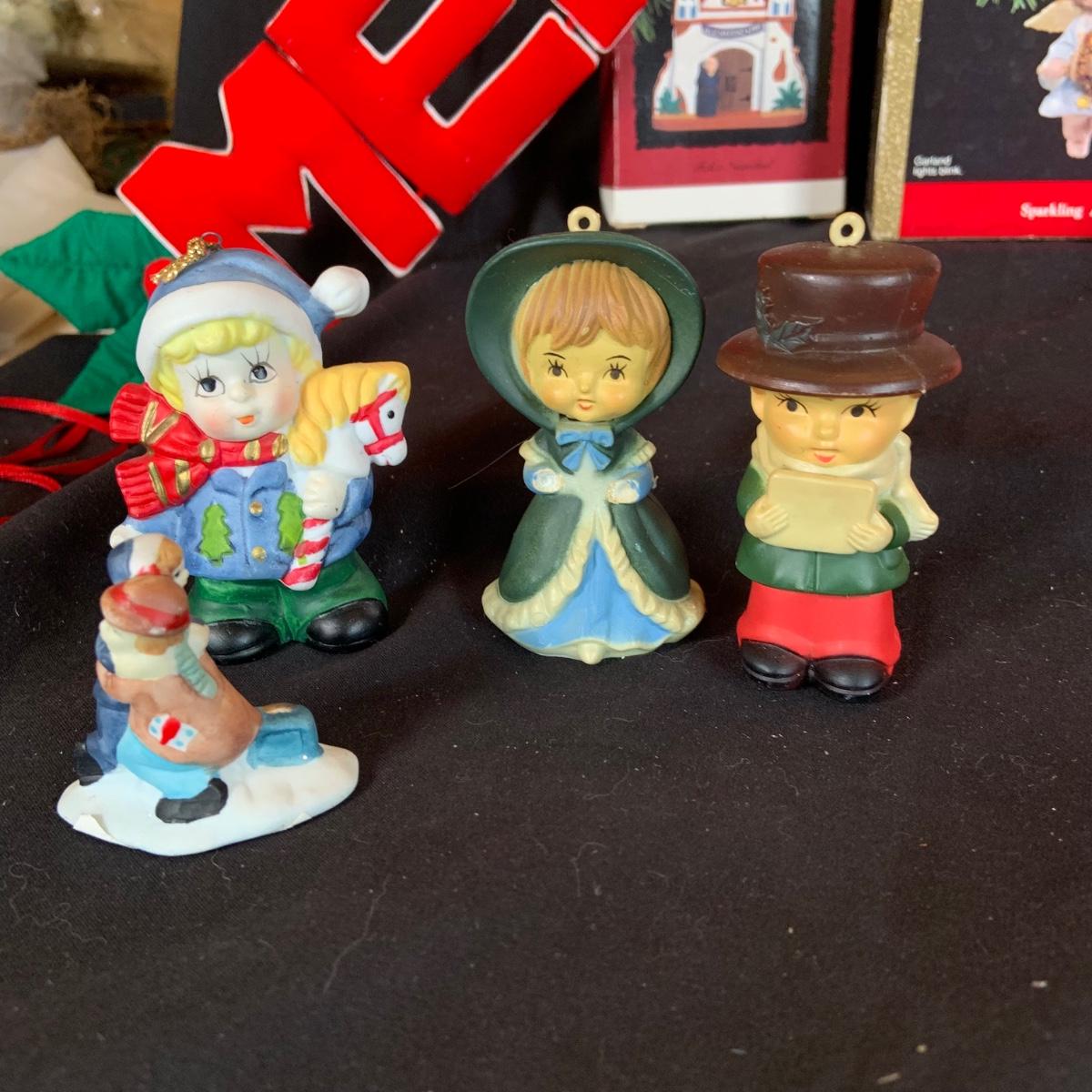 LOT:91: Vintage Holiday Decorations Including a Hallmark Ornament, Handmade Noel Plastic Canvas Sign, and More
