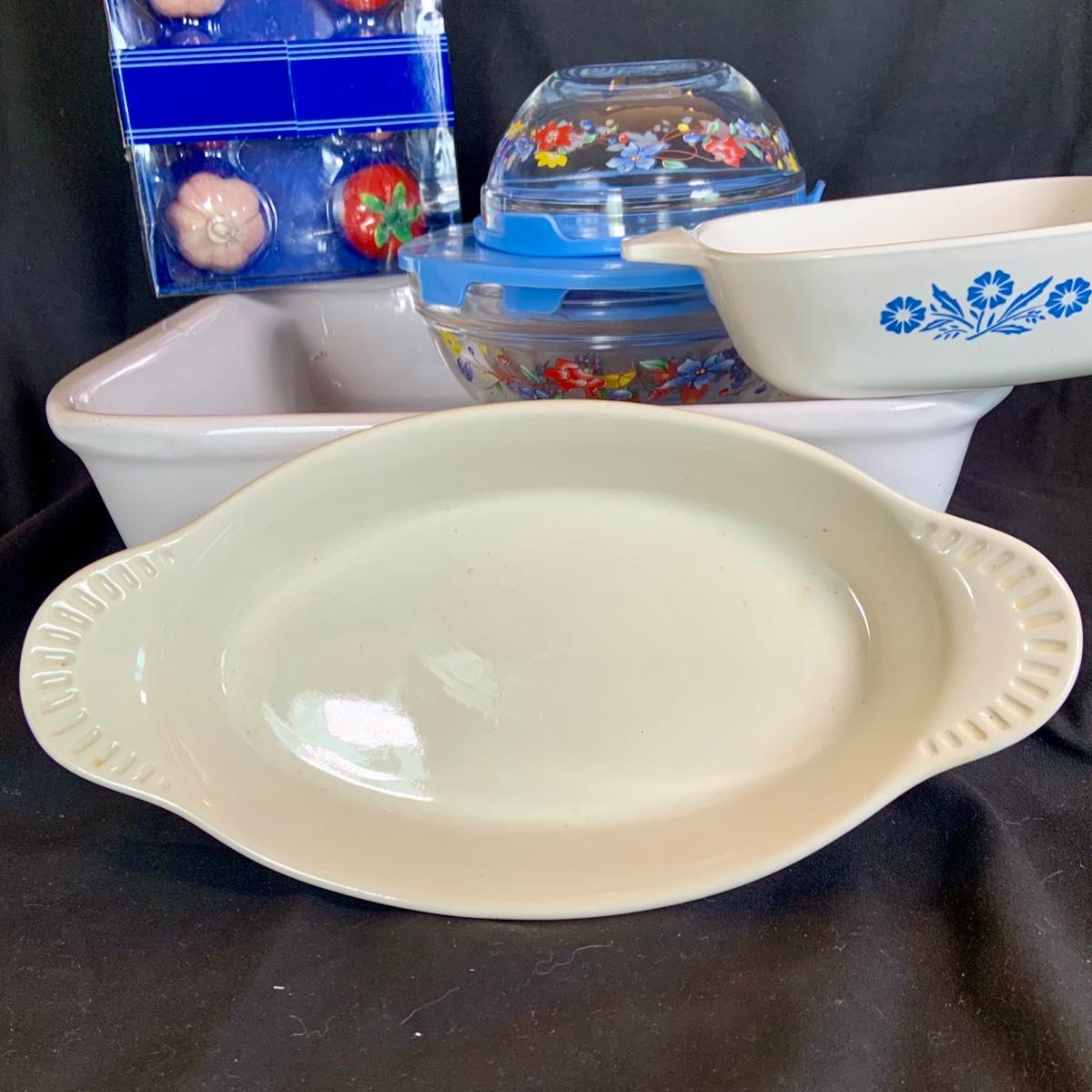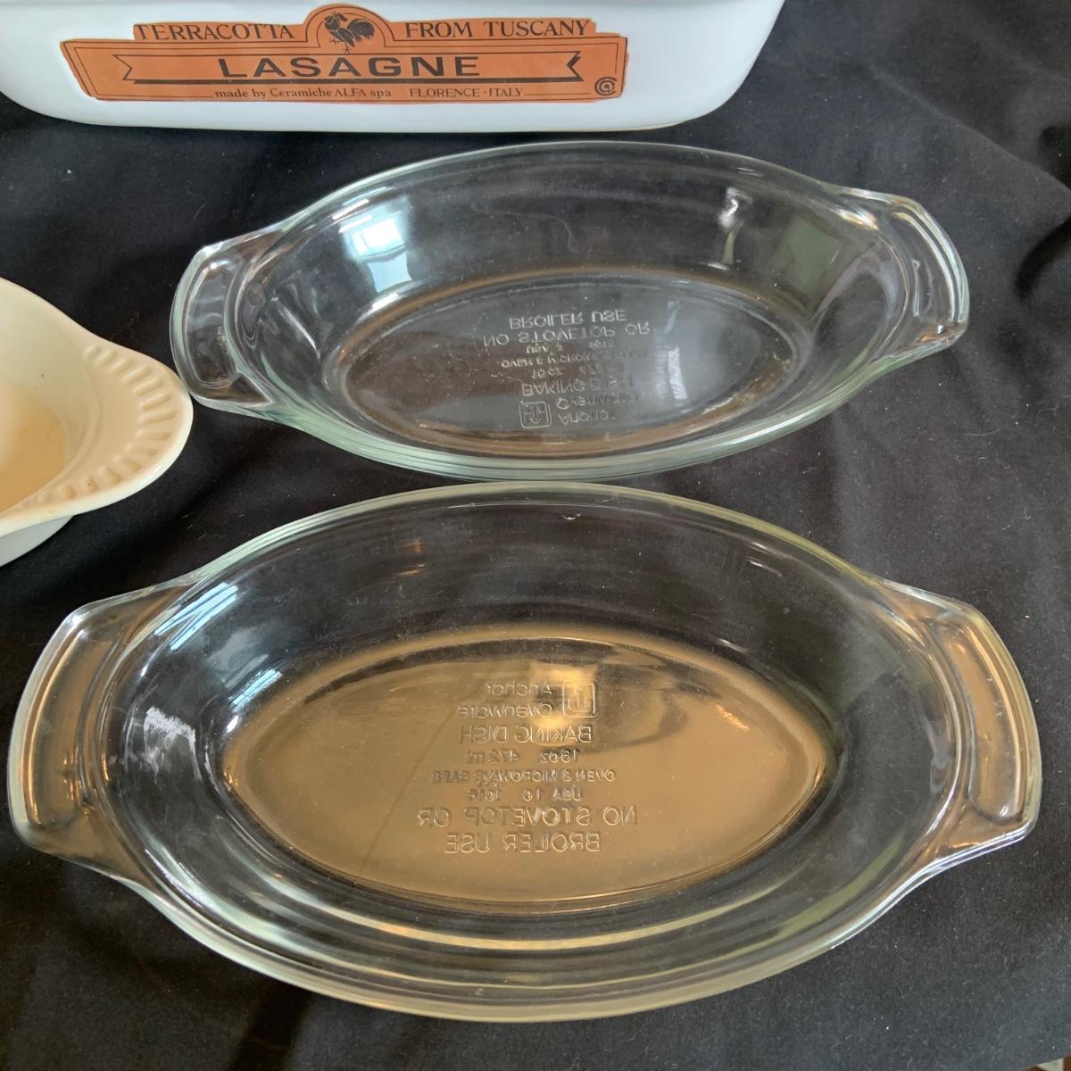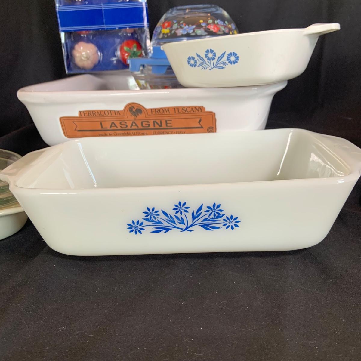 Lot:95: Kitchen Collection of Baking Dishing and More Featuring Corningware, Anchor Hocking, Tarracotta Lasagne Dish and More