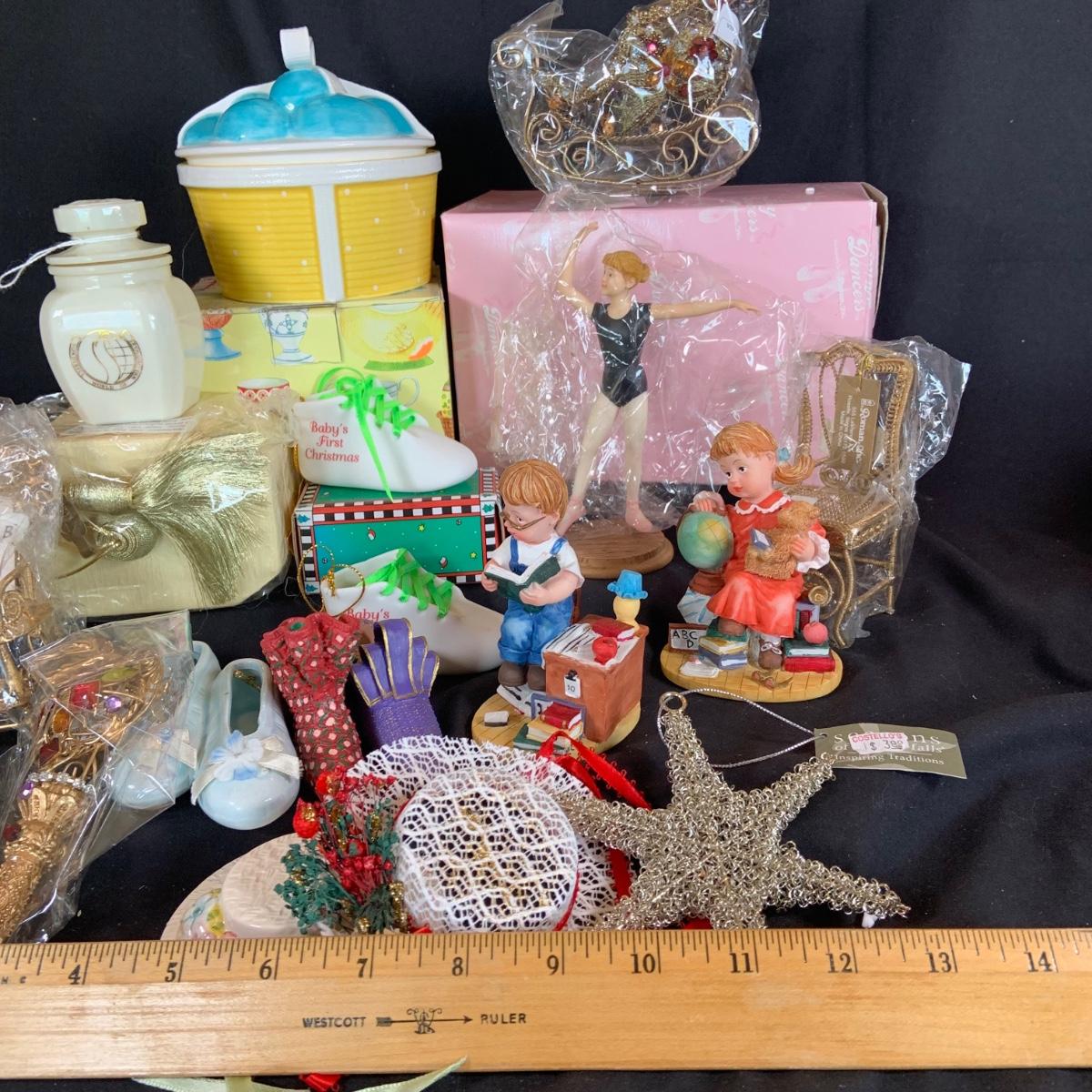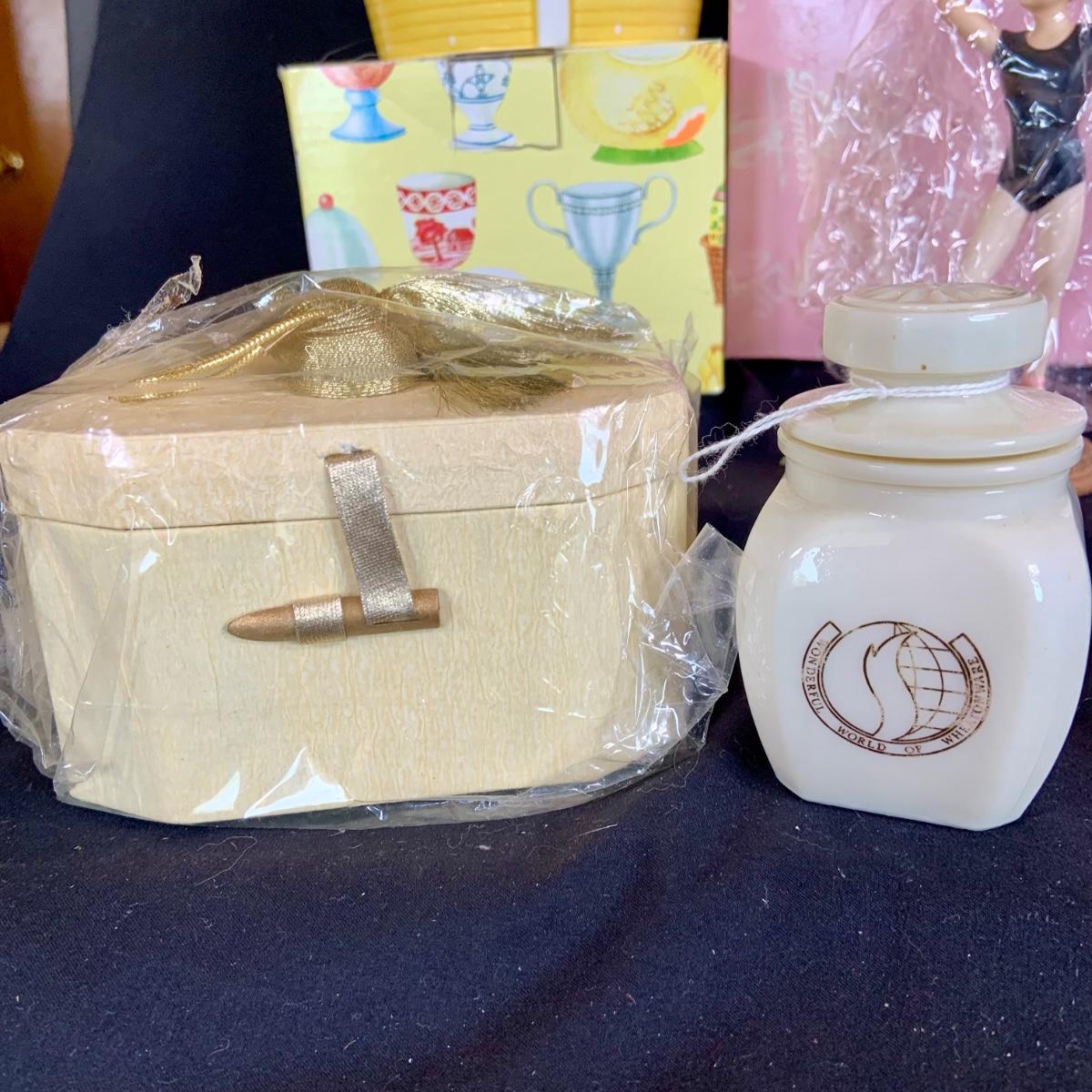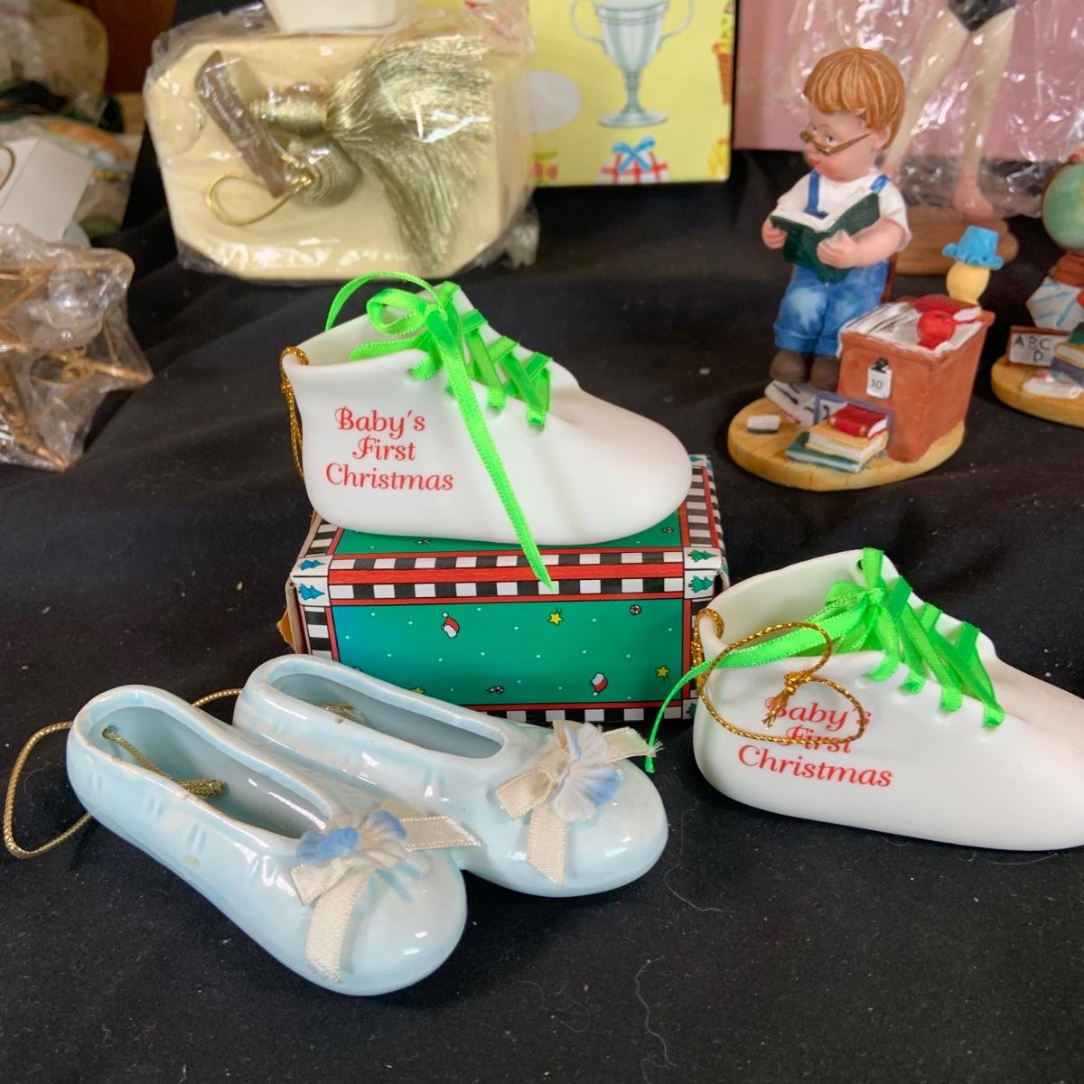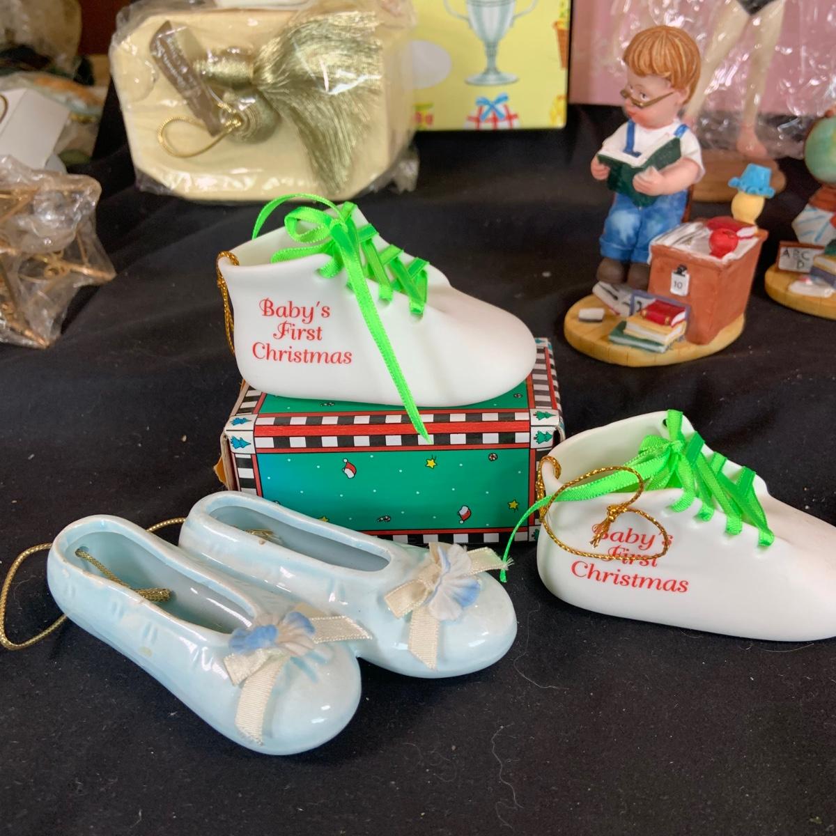 LOT:93: Weatonwear Ginger Jar, Dept 56 Covered Dish Decorative Shoes and Hats, Doll Chairs,Figurines and More