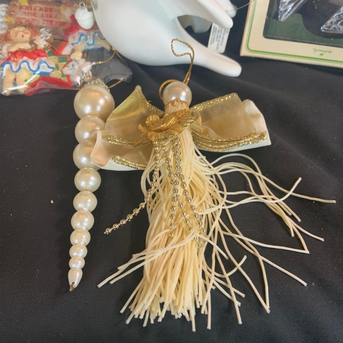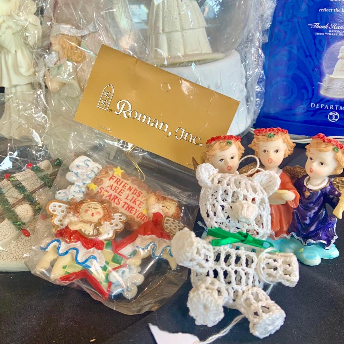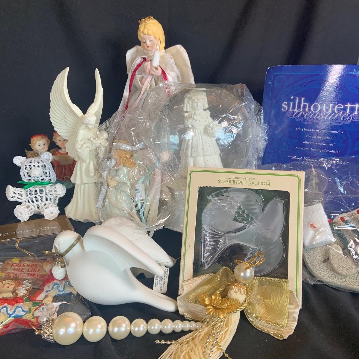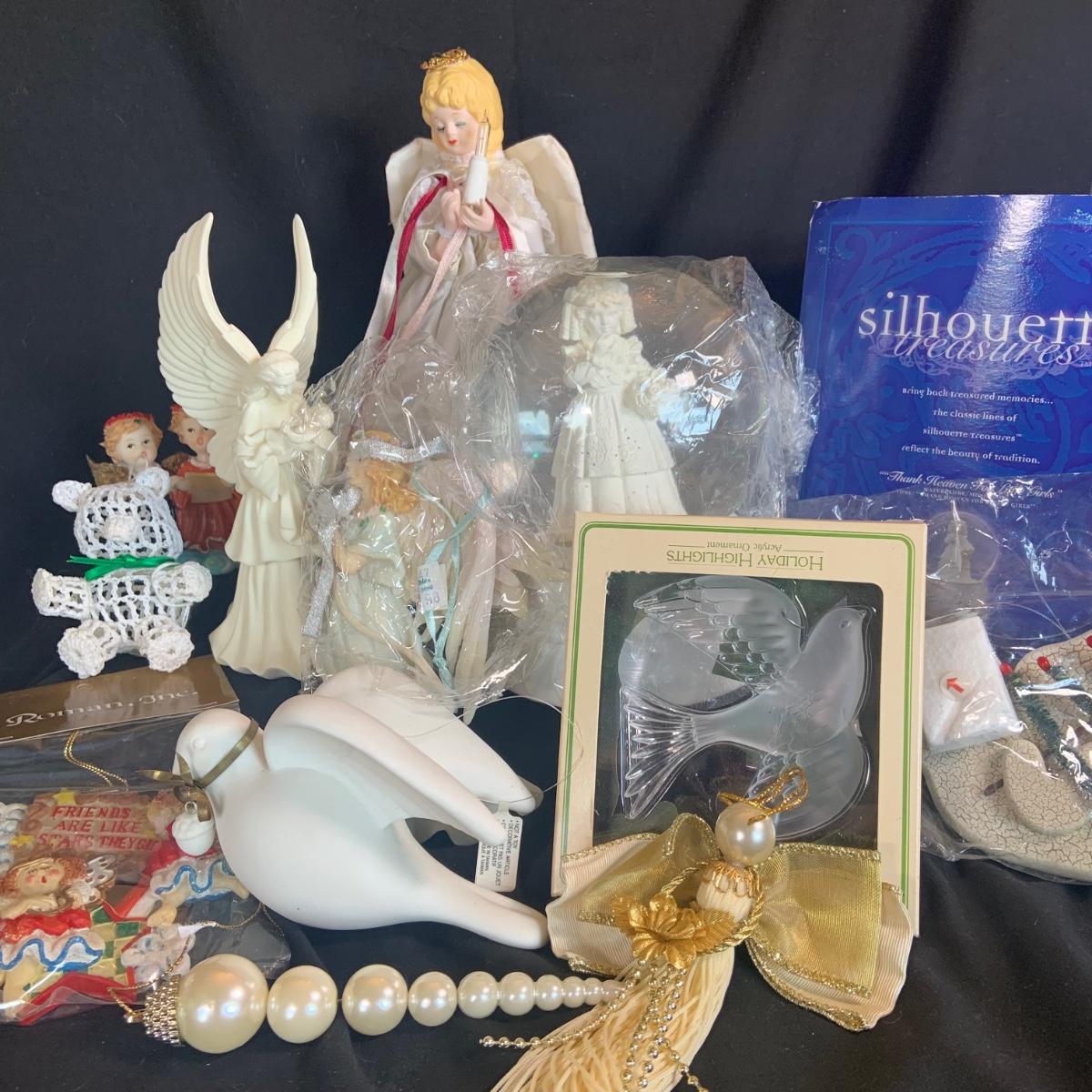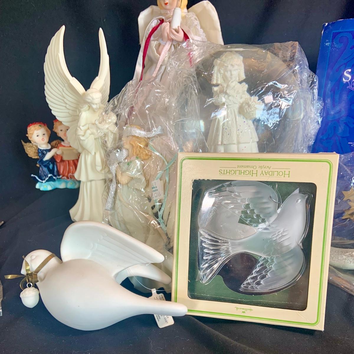 LOT:98: Angels Doves and More Christmas Decoration and Ornaments Including Snow Globe and Hallmark Ornament
