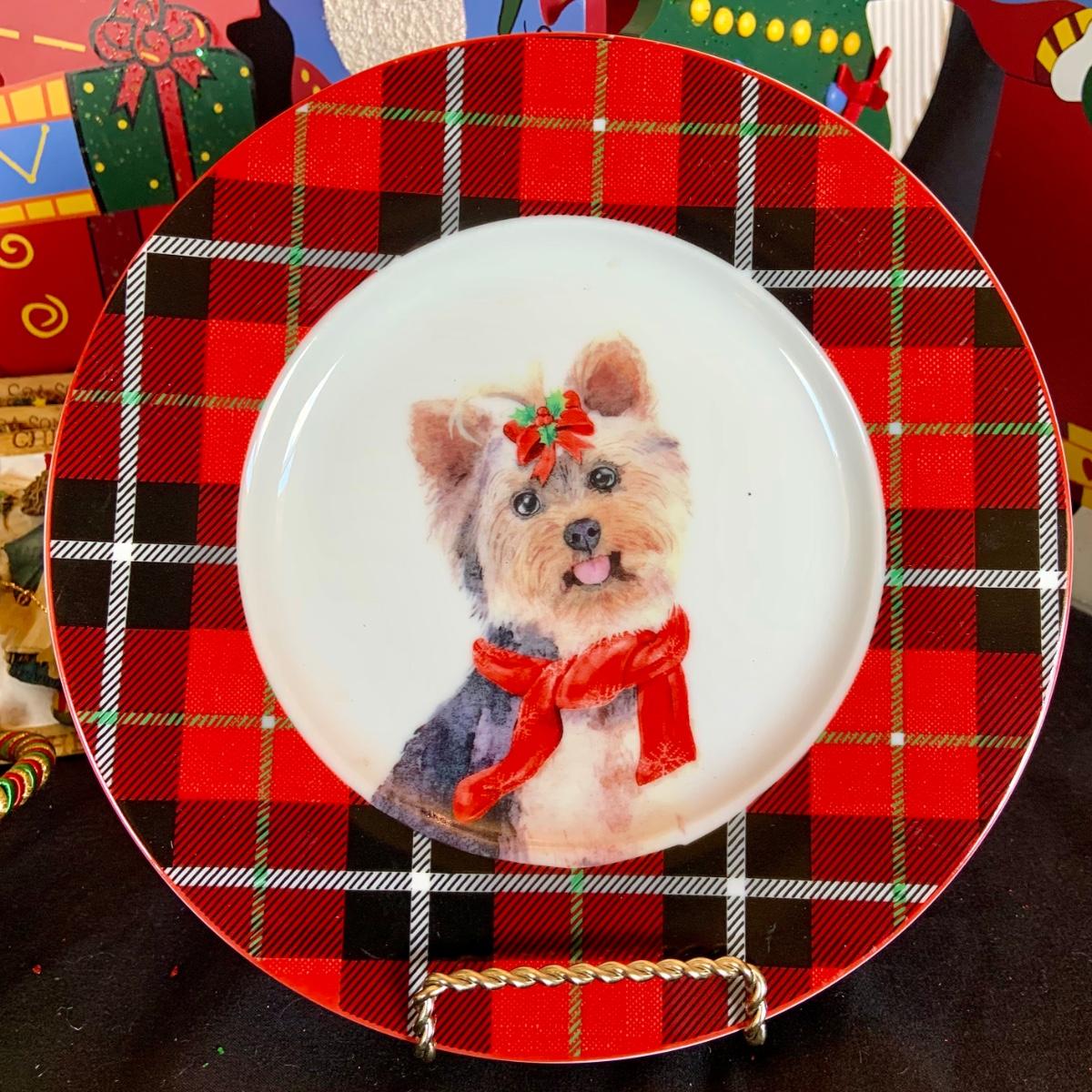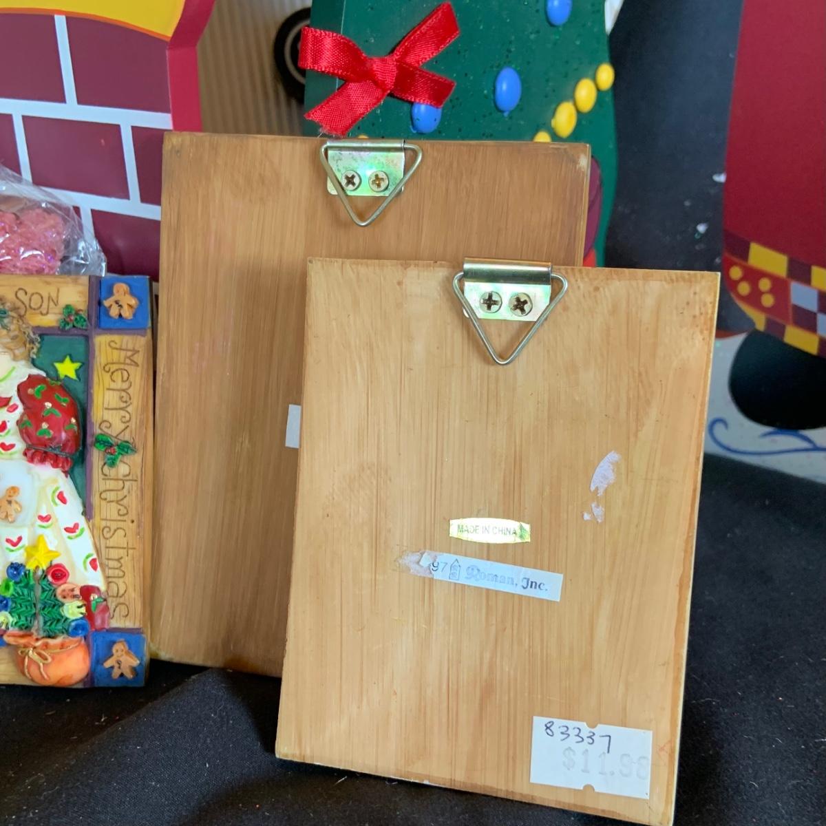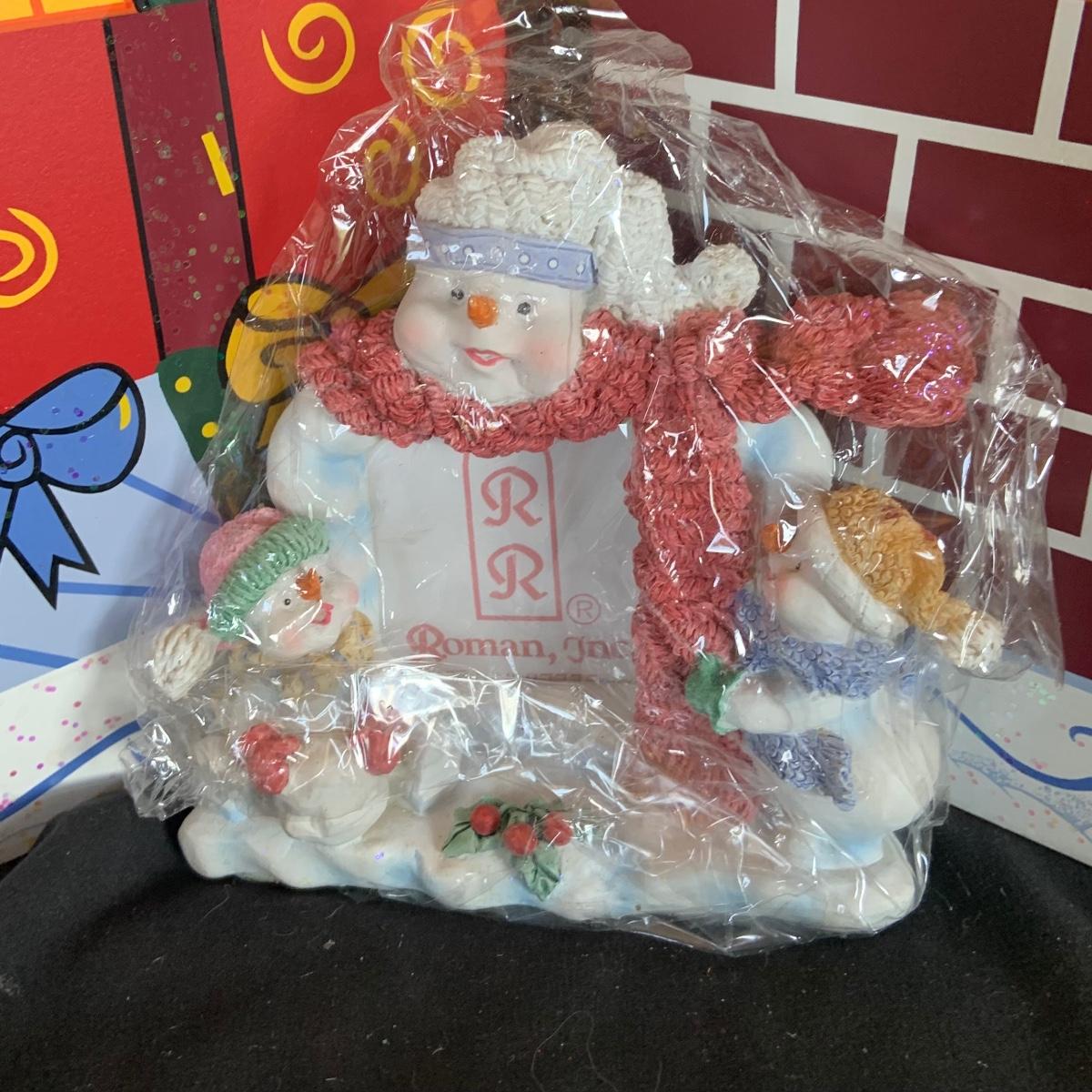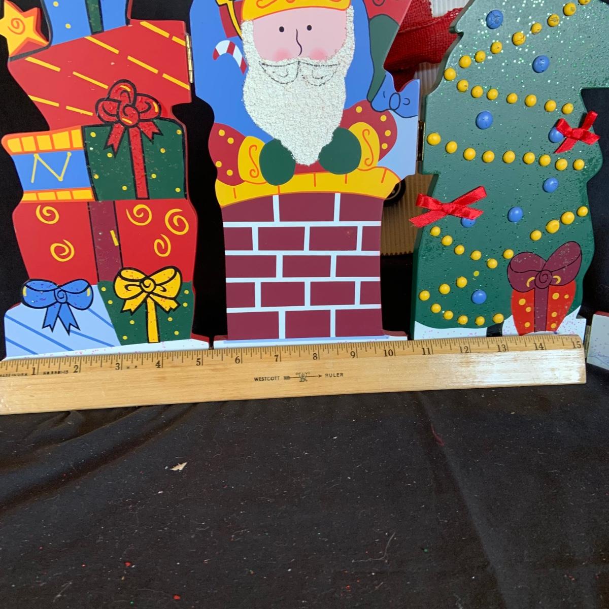 LOT:102: Adorable Christmas Dog Plate, Wooden Folding Santa Decoration, Large Snowmen and Other Holiday Decor