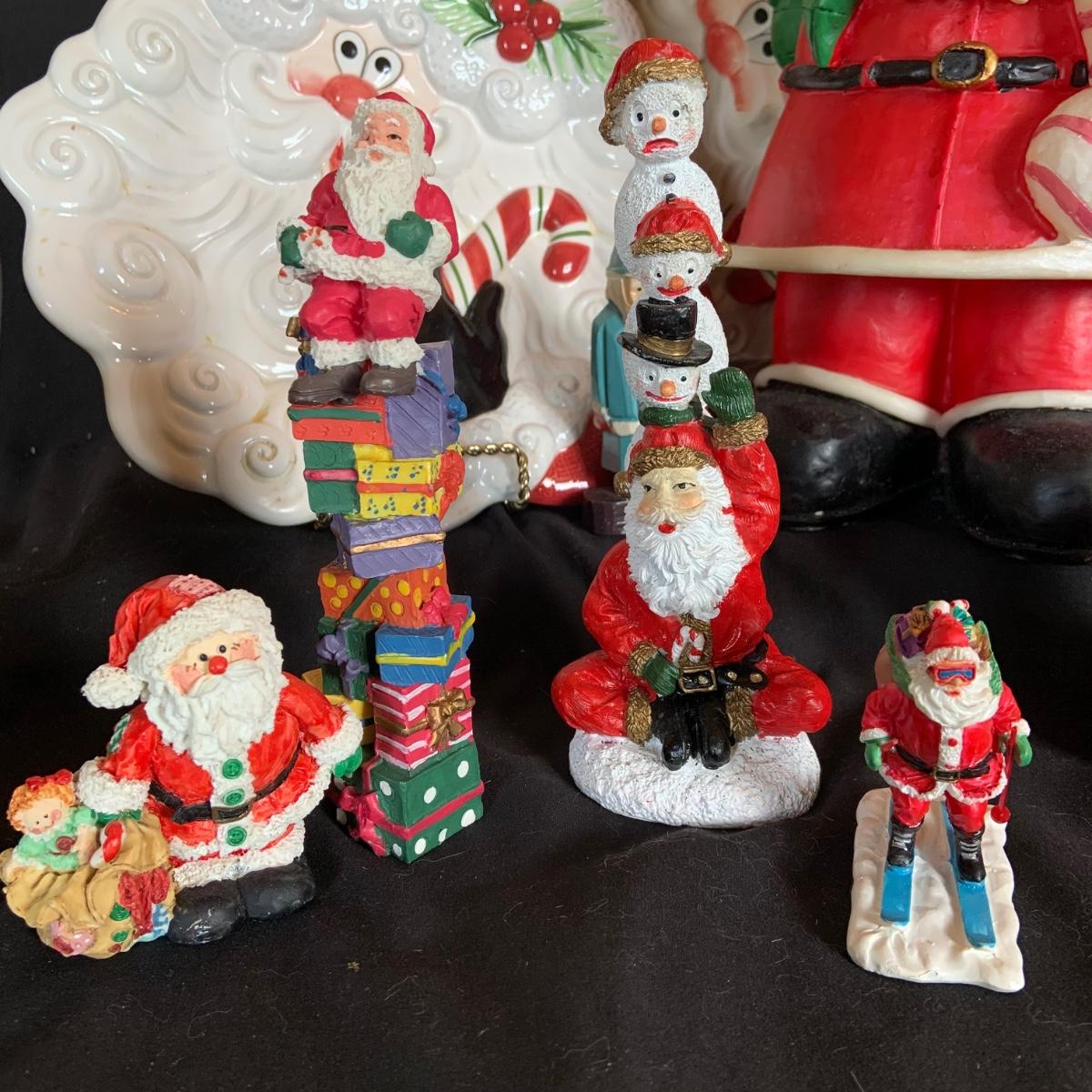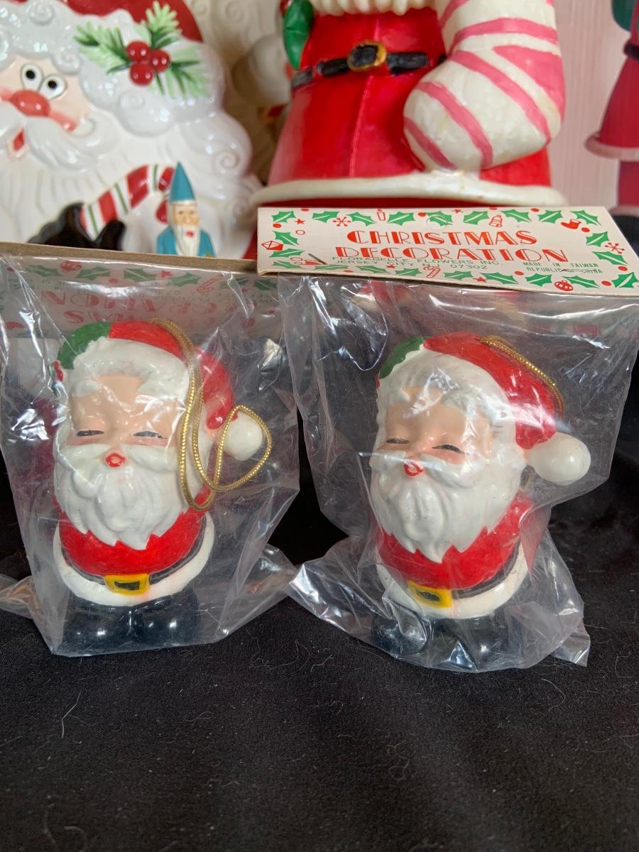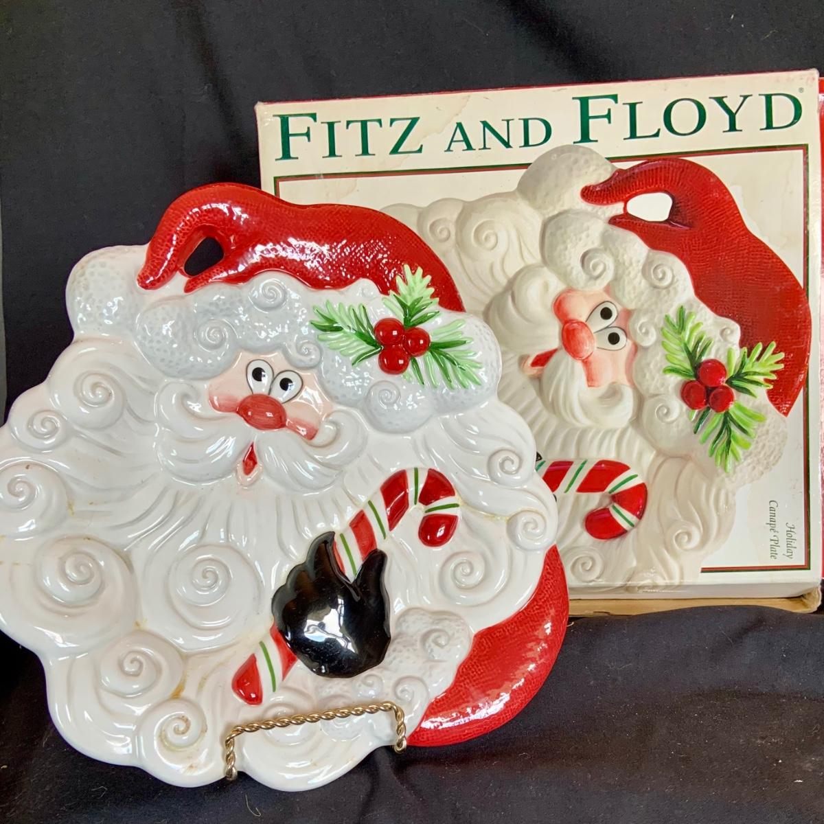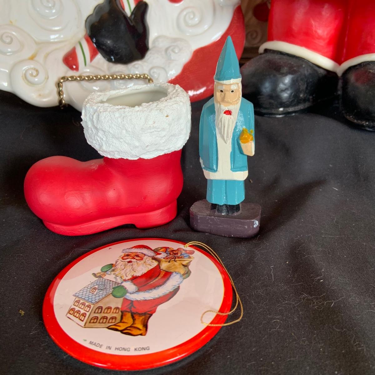 LOT:106: Fitz & Floyd, Santa Plate and Other Santa Holiday Decorations and Vintage Ornaments, Large Dough Santa Figurine and More