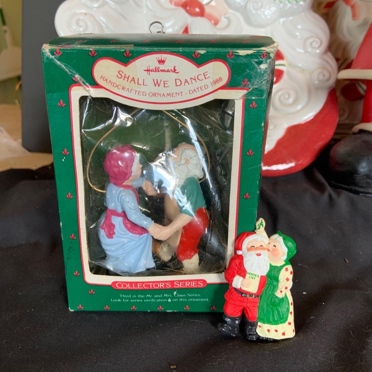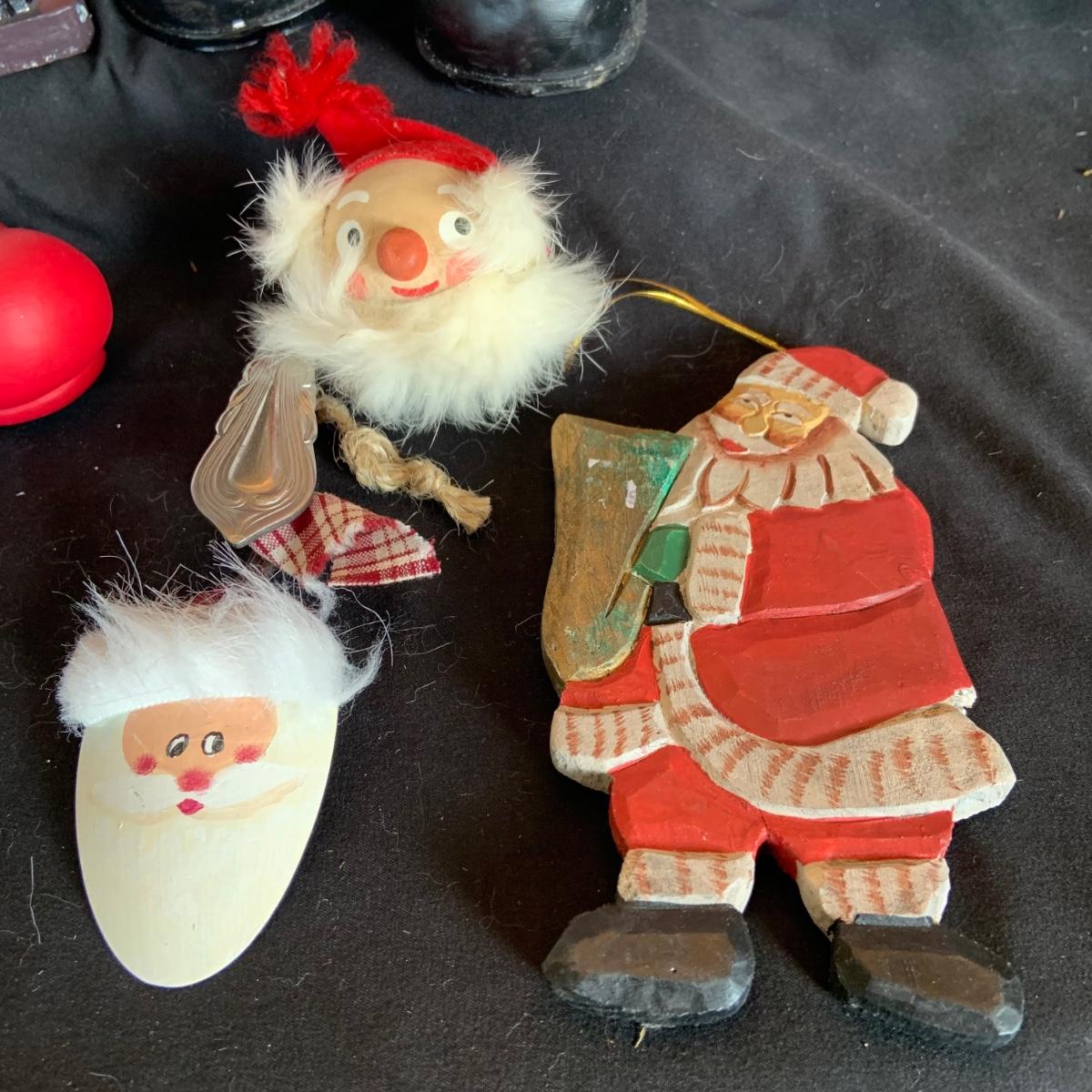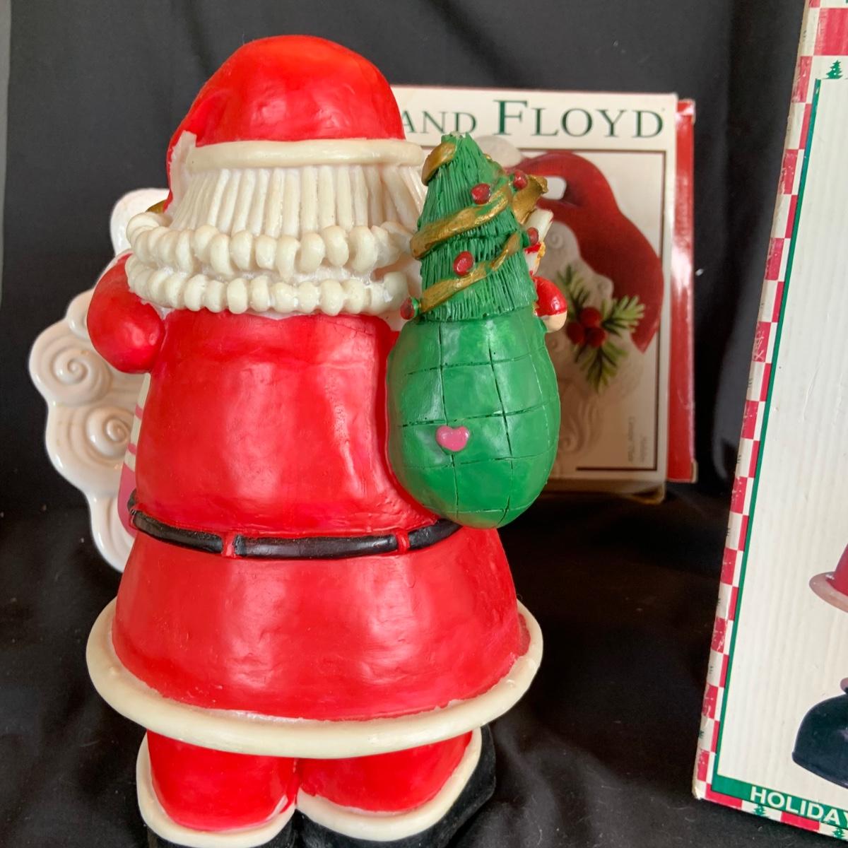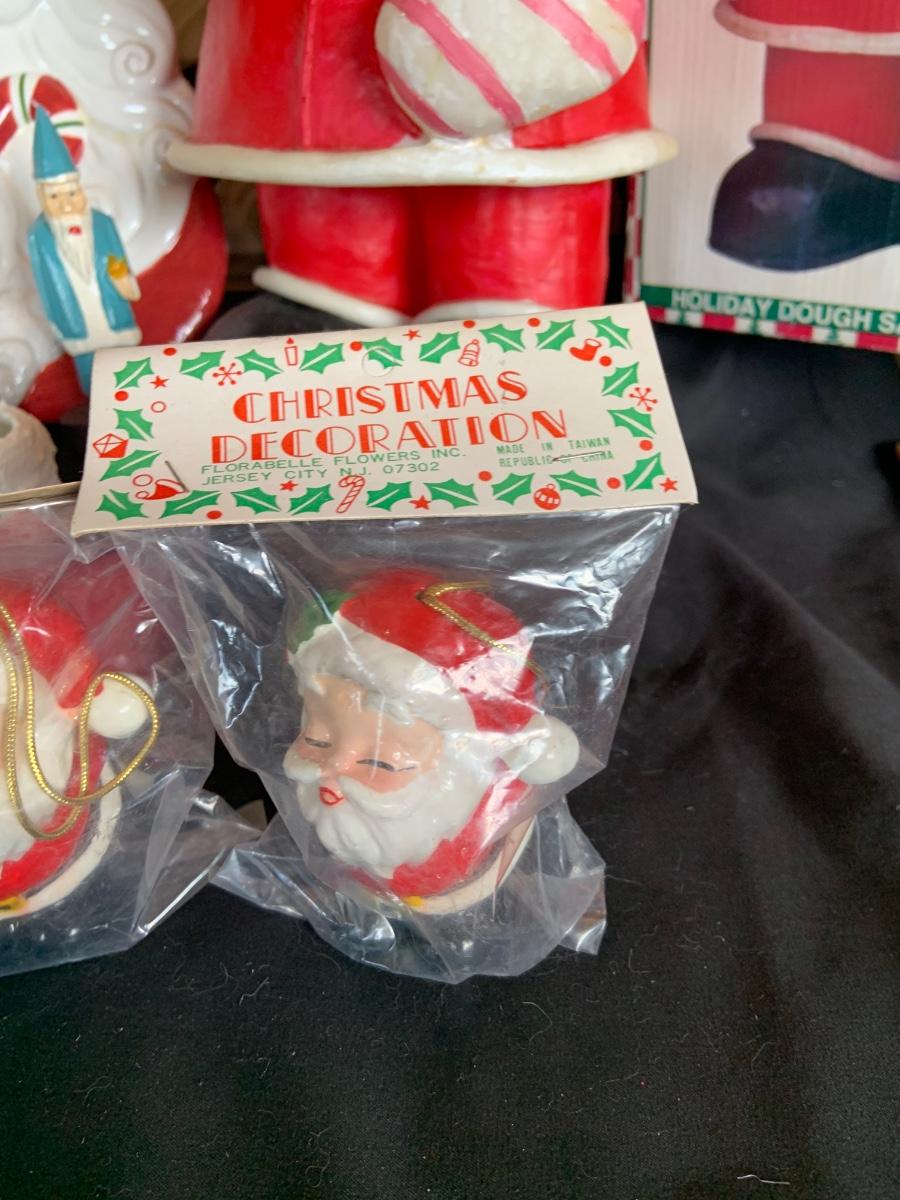 LOT:106: Fitz & Floyd, Santa Plate and Other Santa Holiday Decorations and Vintage Ornaments, Large Dough Santa Figurine and More