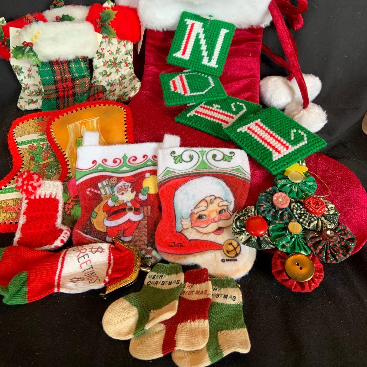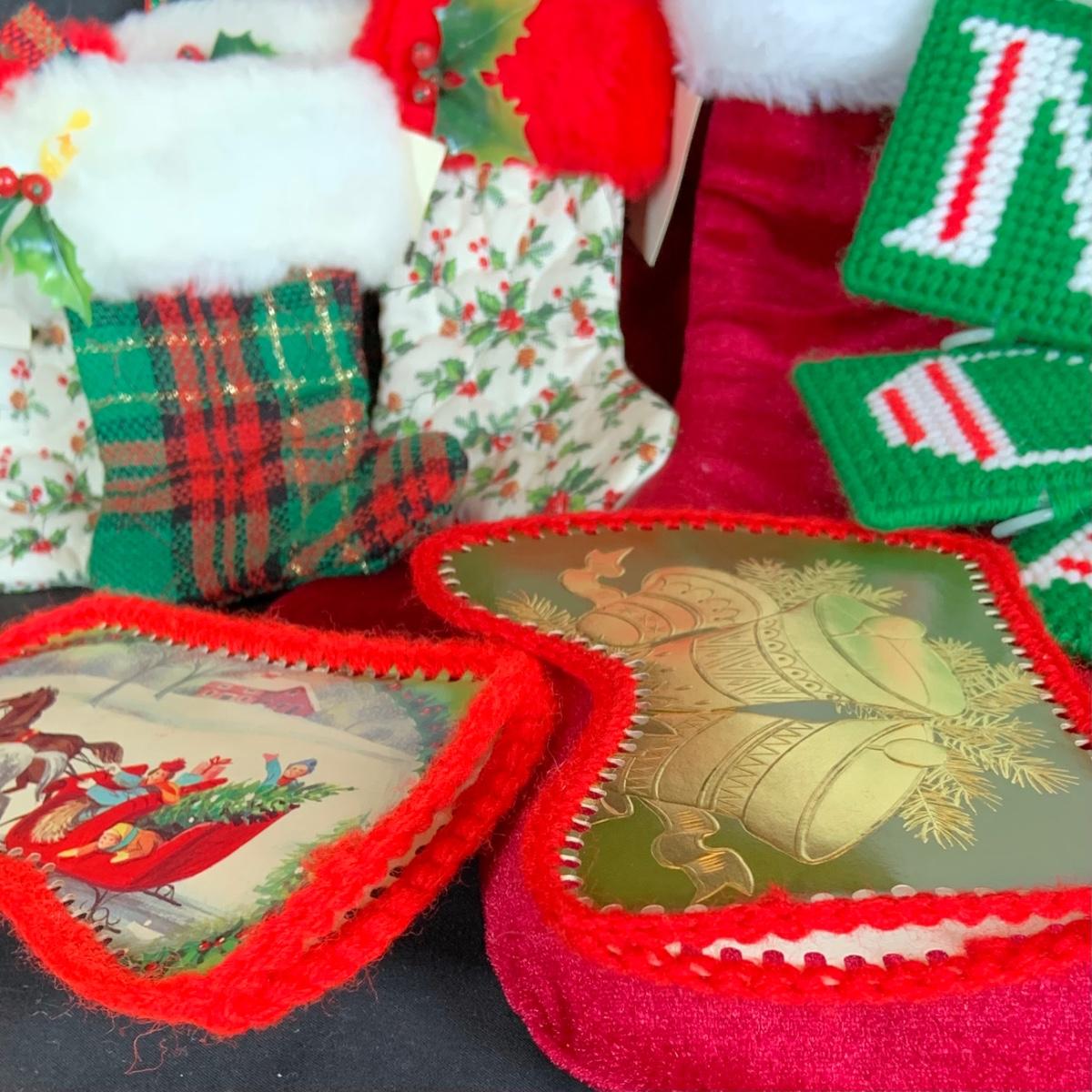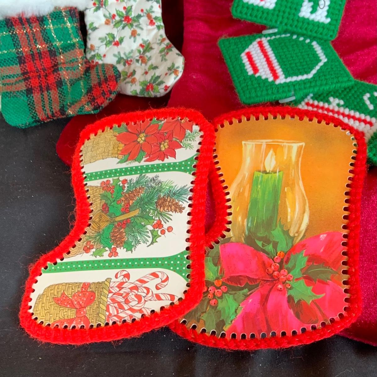 LOT108:: Hung by the Chimney with Care - A Collection of Vintage Christmas Stocking Some Made with Greeting Cards and More